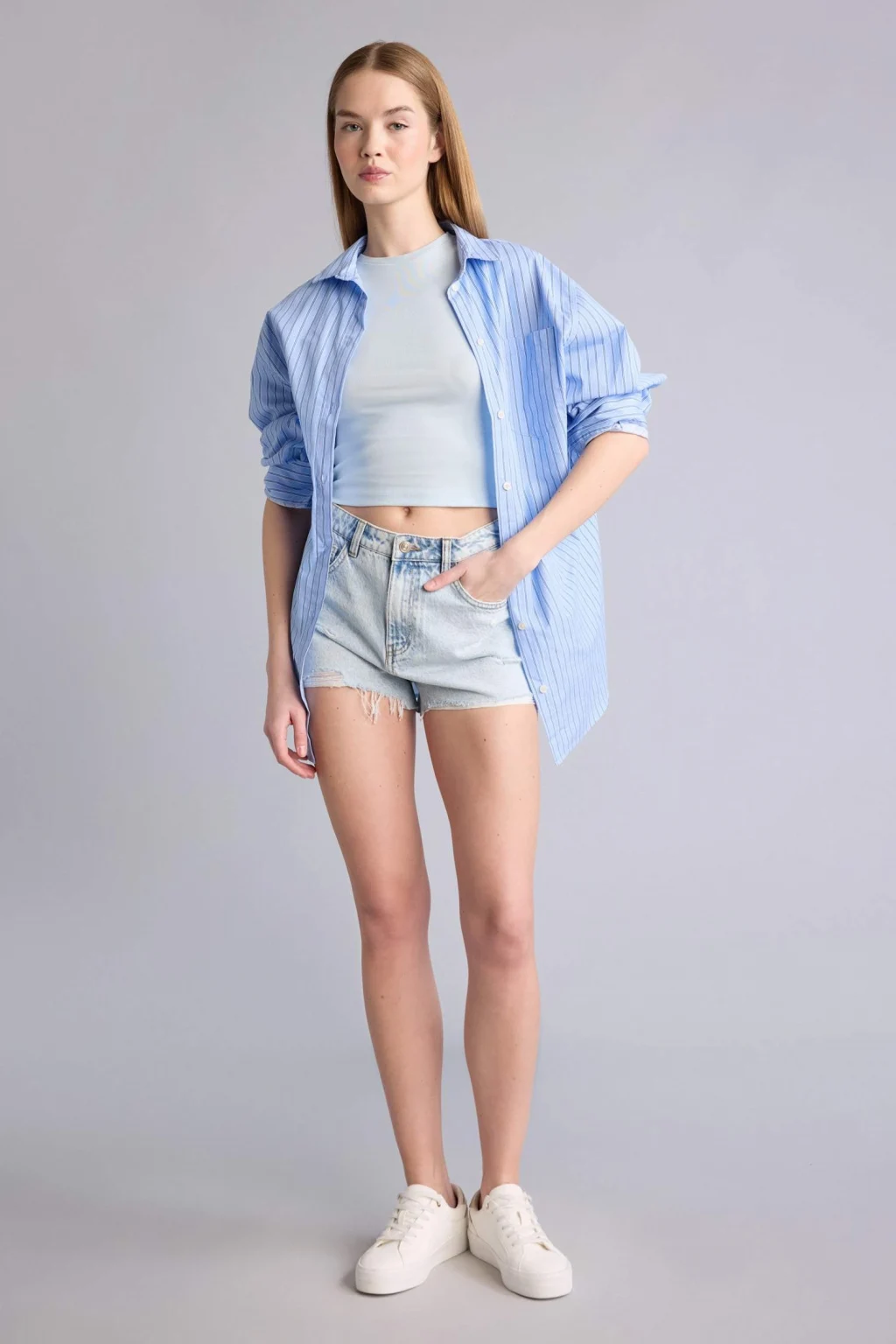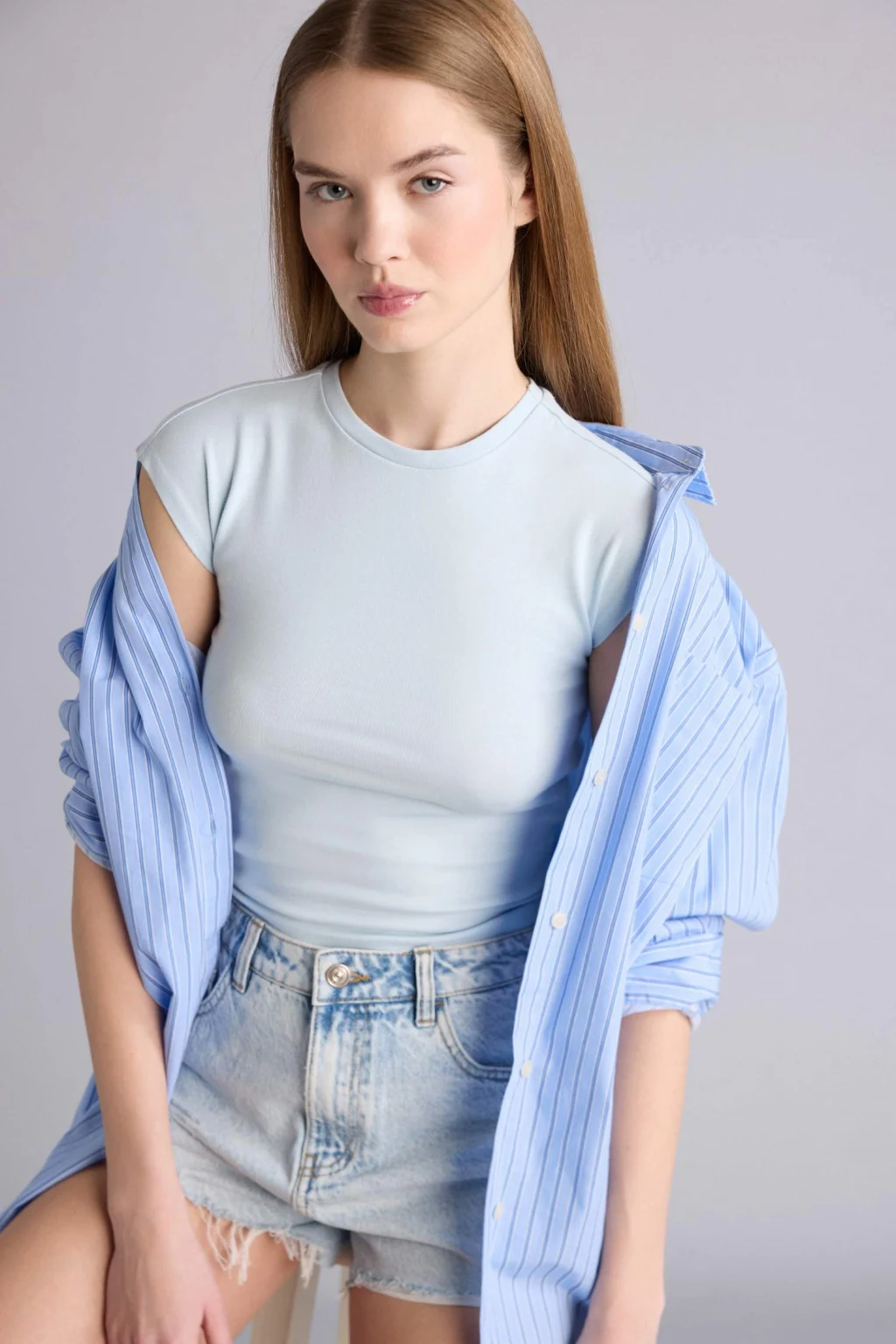 Fitted Ribana Tişört, vücuda oturan kesimiyle modern ve şık bir siluet sunar. Esnek ribana kumaşı sayesinde gün boyu rahatlık sağlar ve günlük kombinlerinizi tamamlar.
