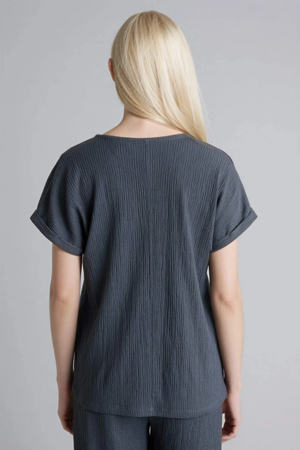 Regular Fit Bürümcük Tişört, rahat kesimi ve yumuşak dokusuyla gün boyu konfor sunar. Bürümcük detayları tasarıma hareket katarak günlük kombinlerinize şık bir dokunuş sağlar.