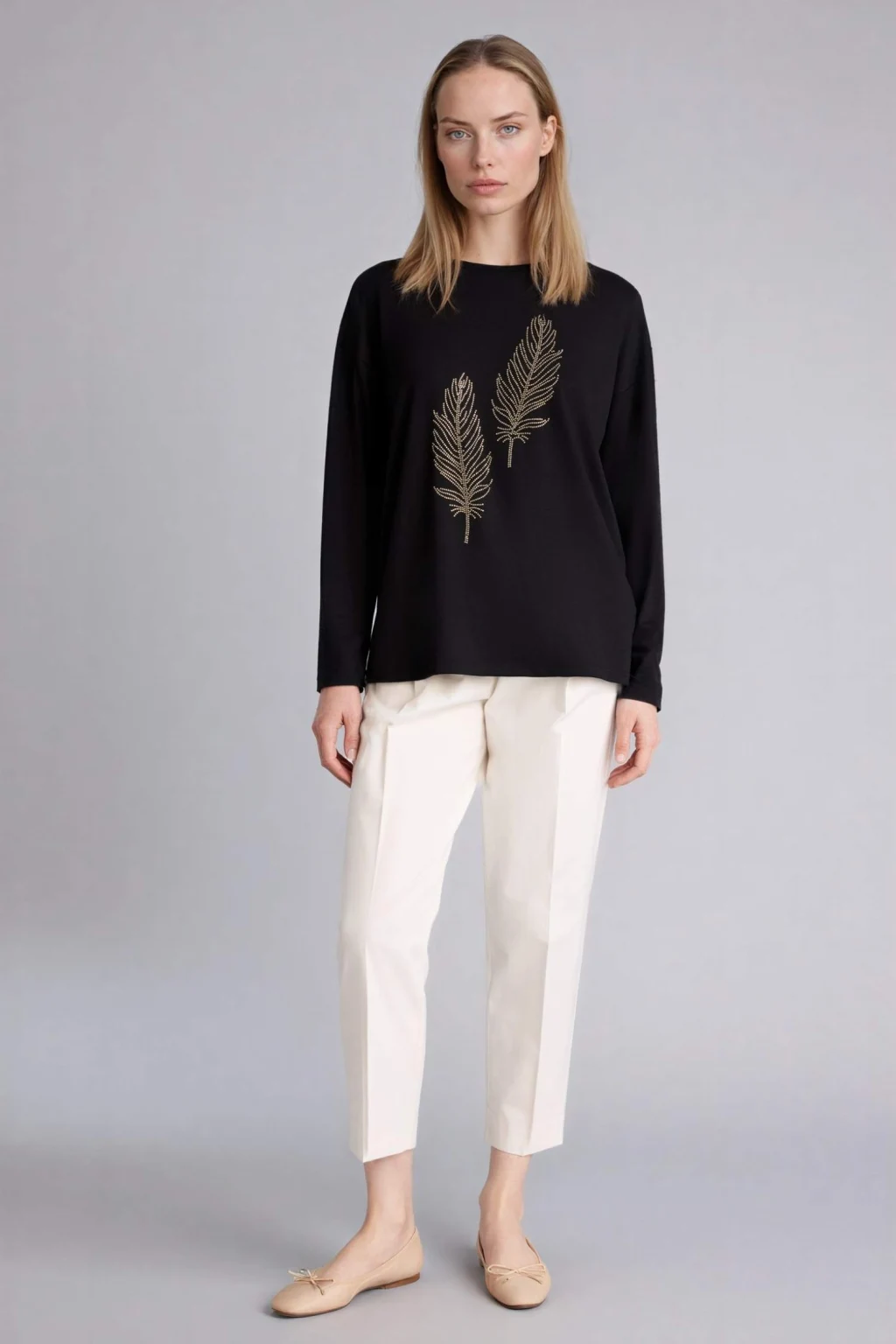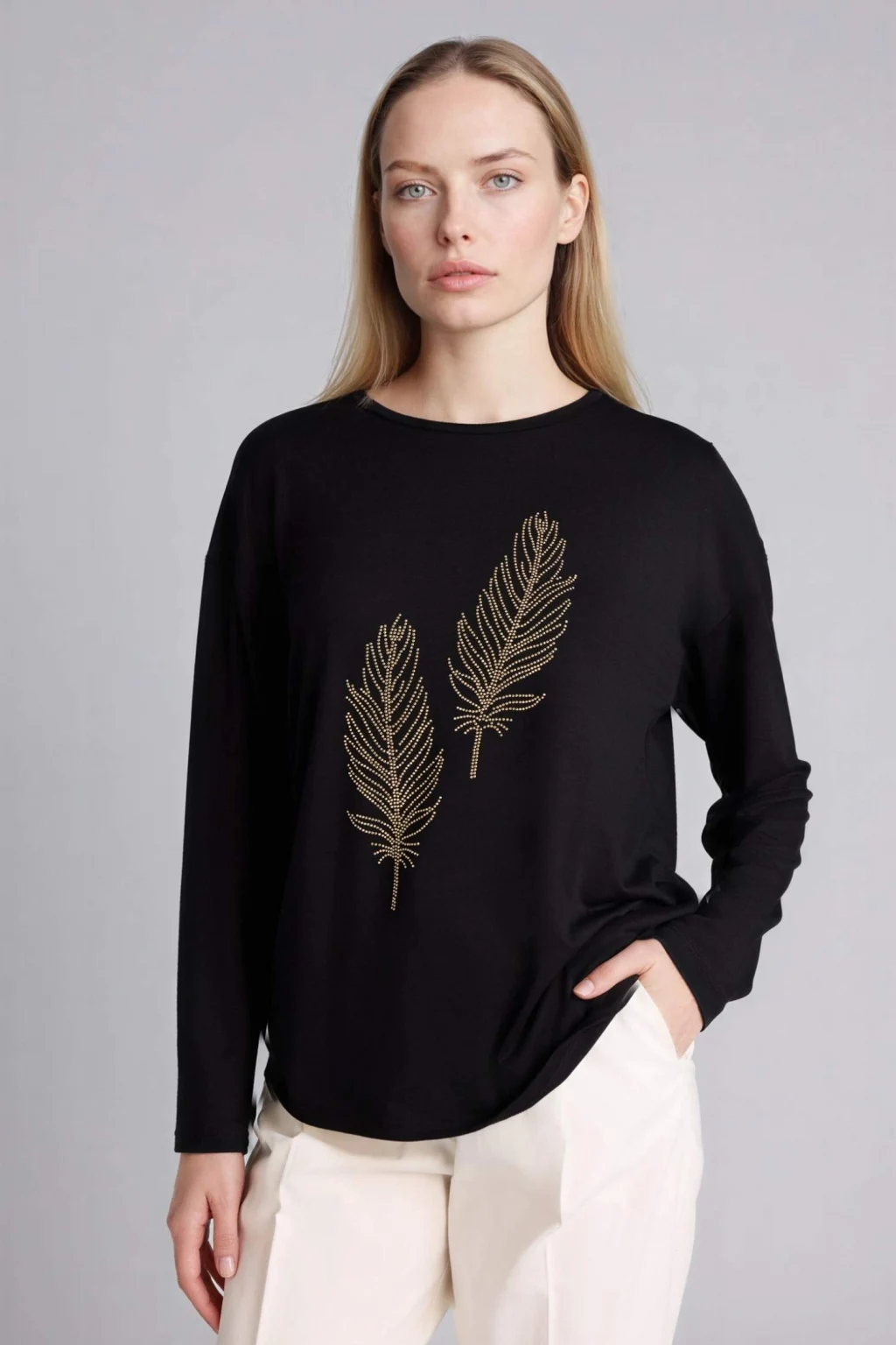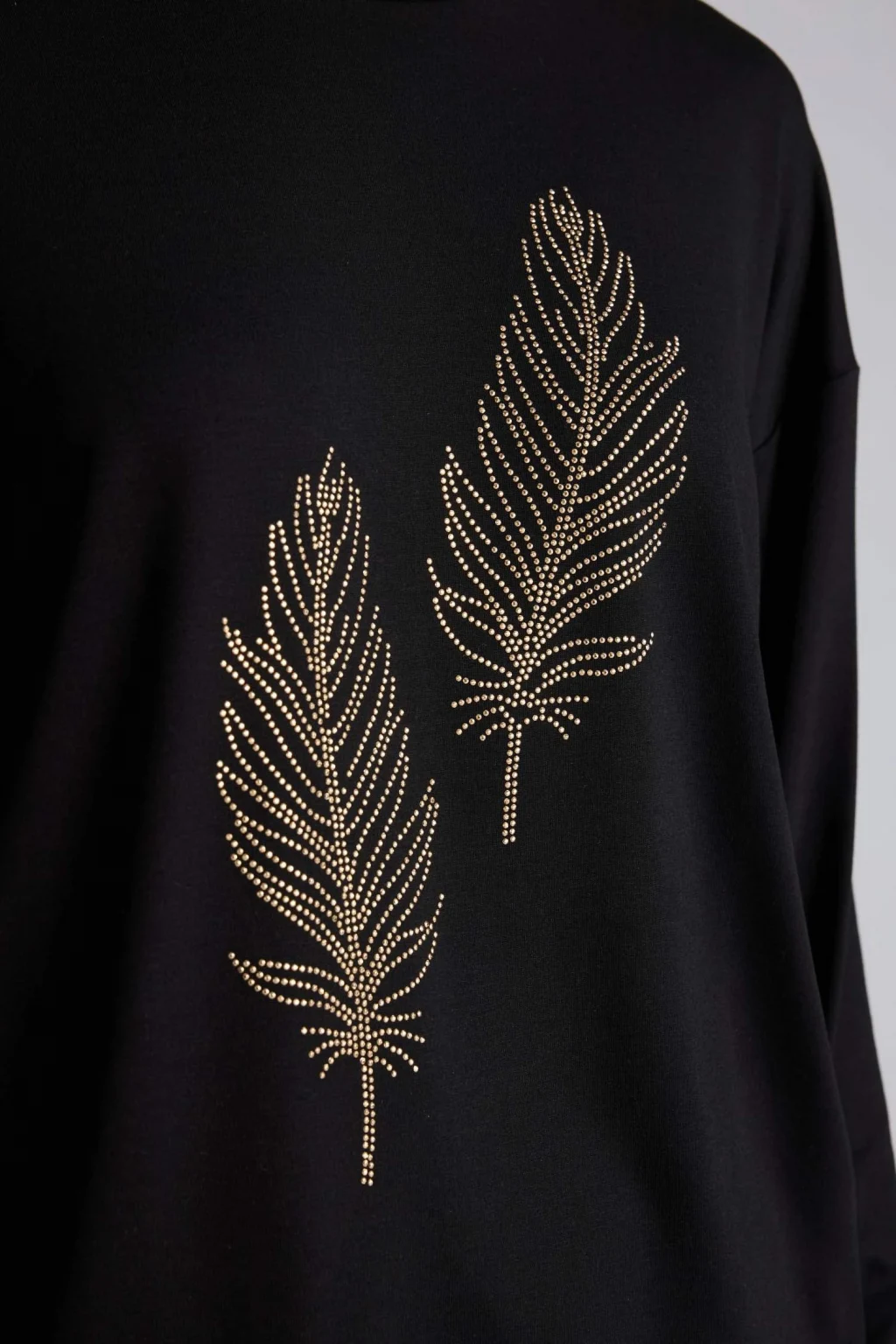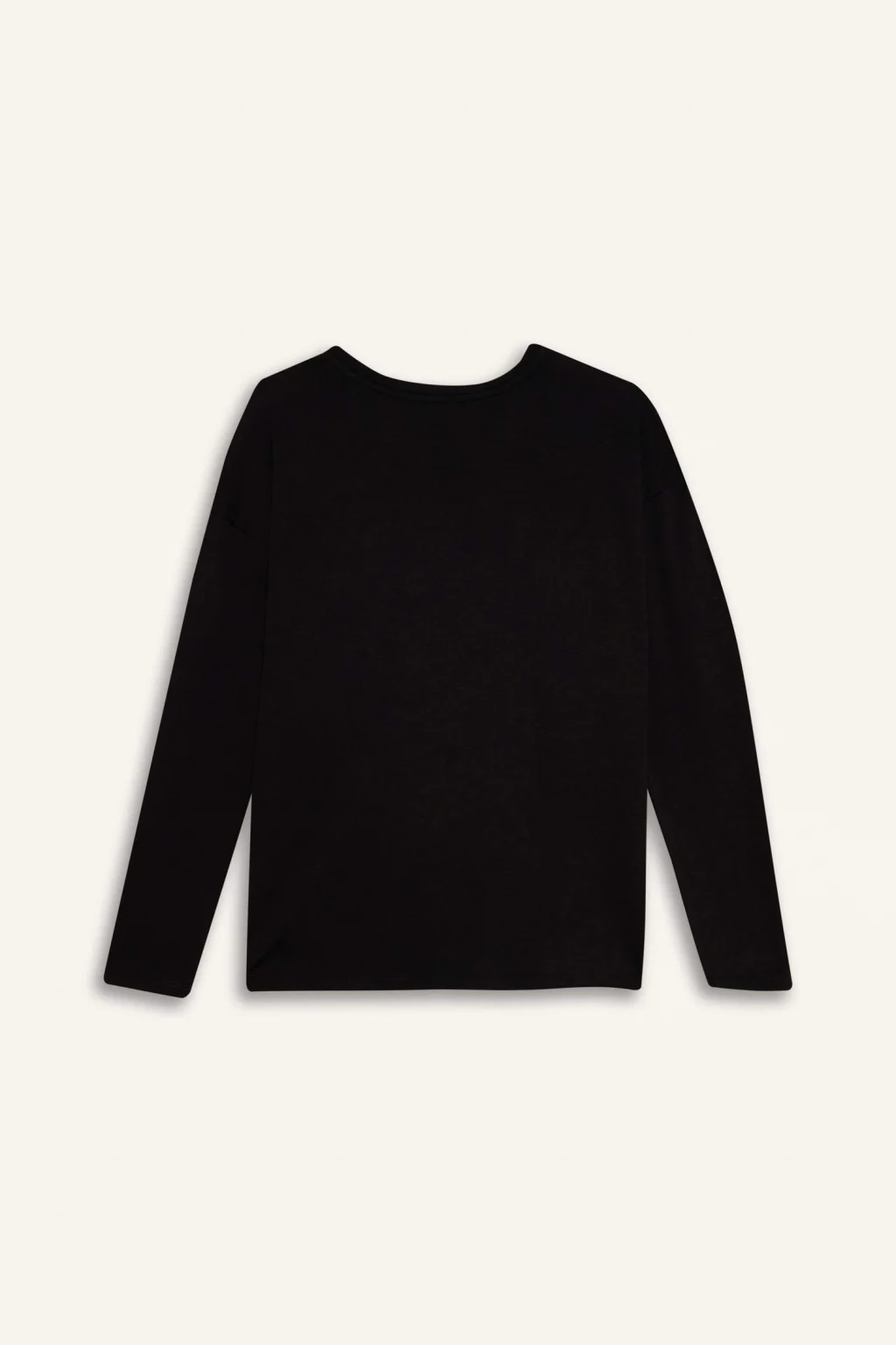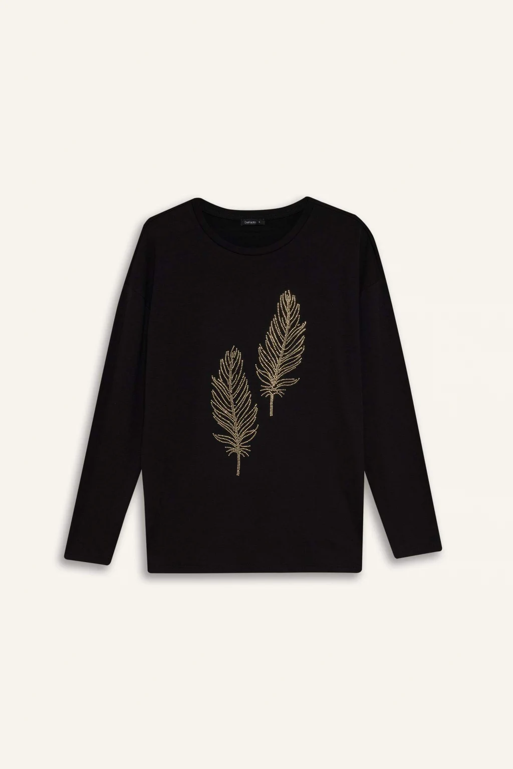 Defacto H1203AXBK81 Siyah Relax Fıt Bisiklet Yaka Taş Baskılı Uzun Kollu Tişört