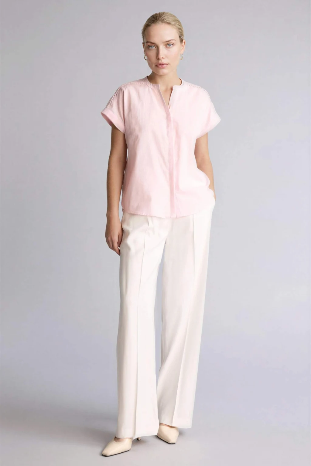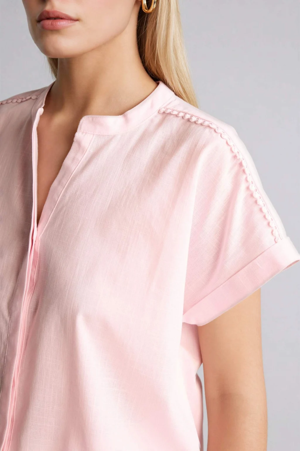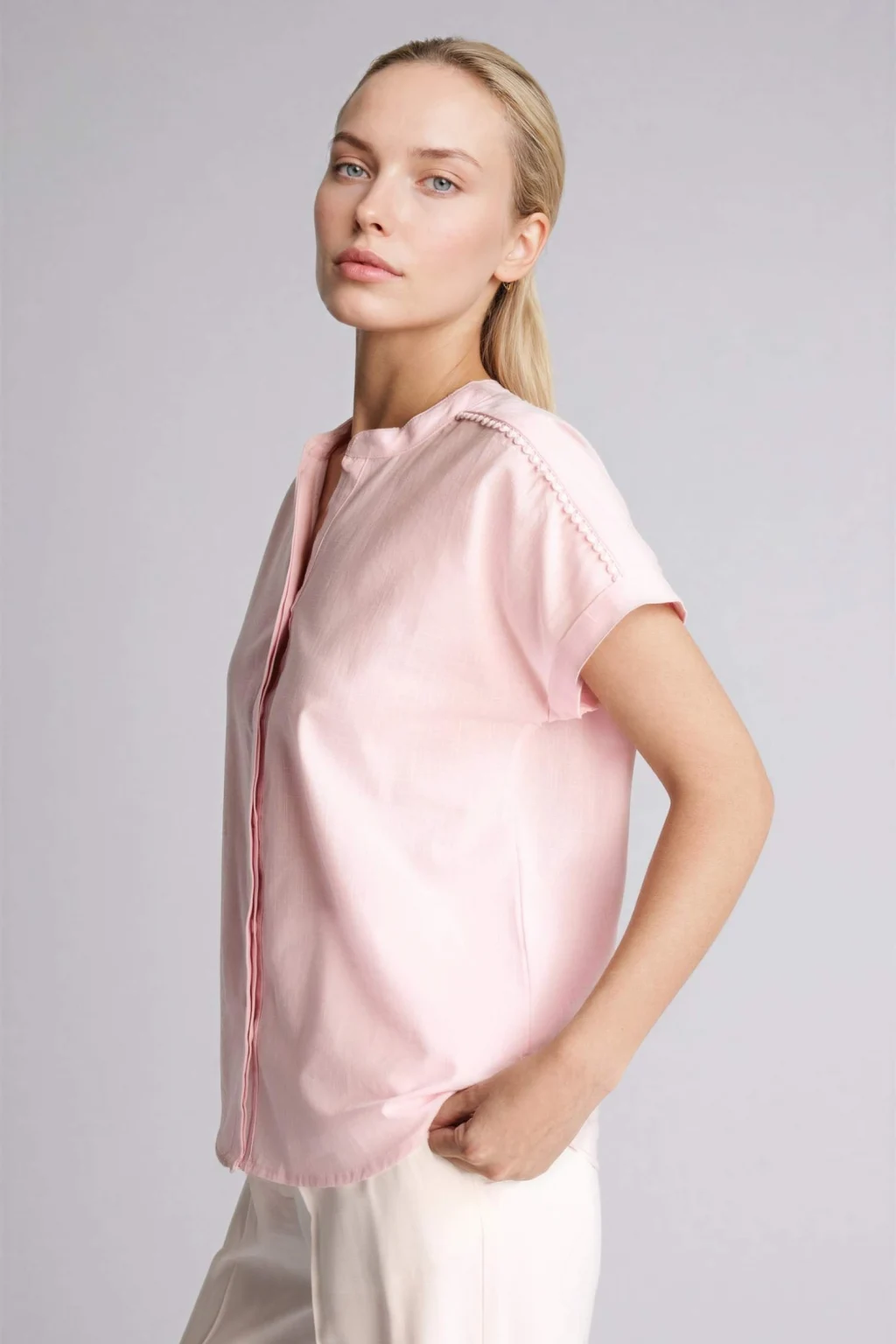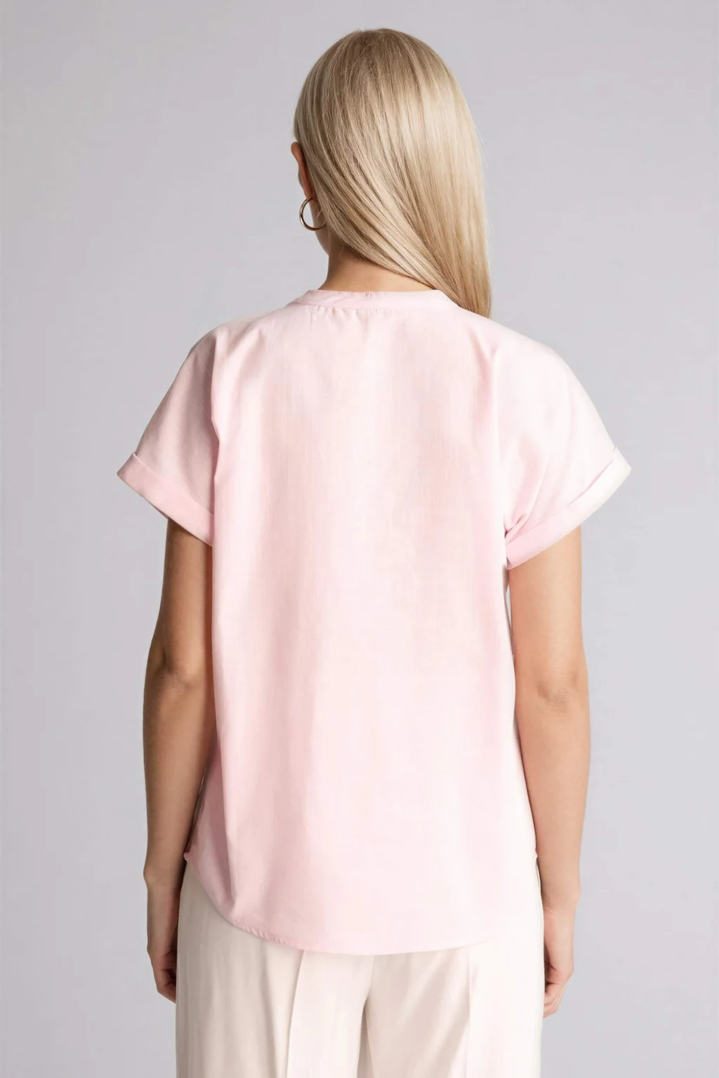 Defacto H1357AXPN74 Pembe Regular Fıt Bisiklet Yaka Flamlı Pamuk Kısa Kollu Gömlek