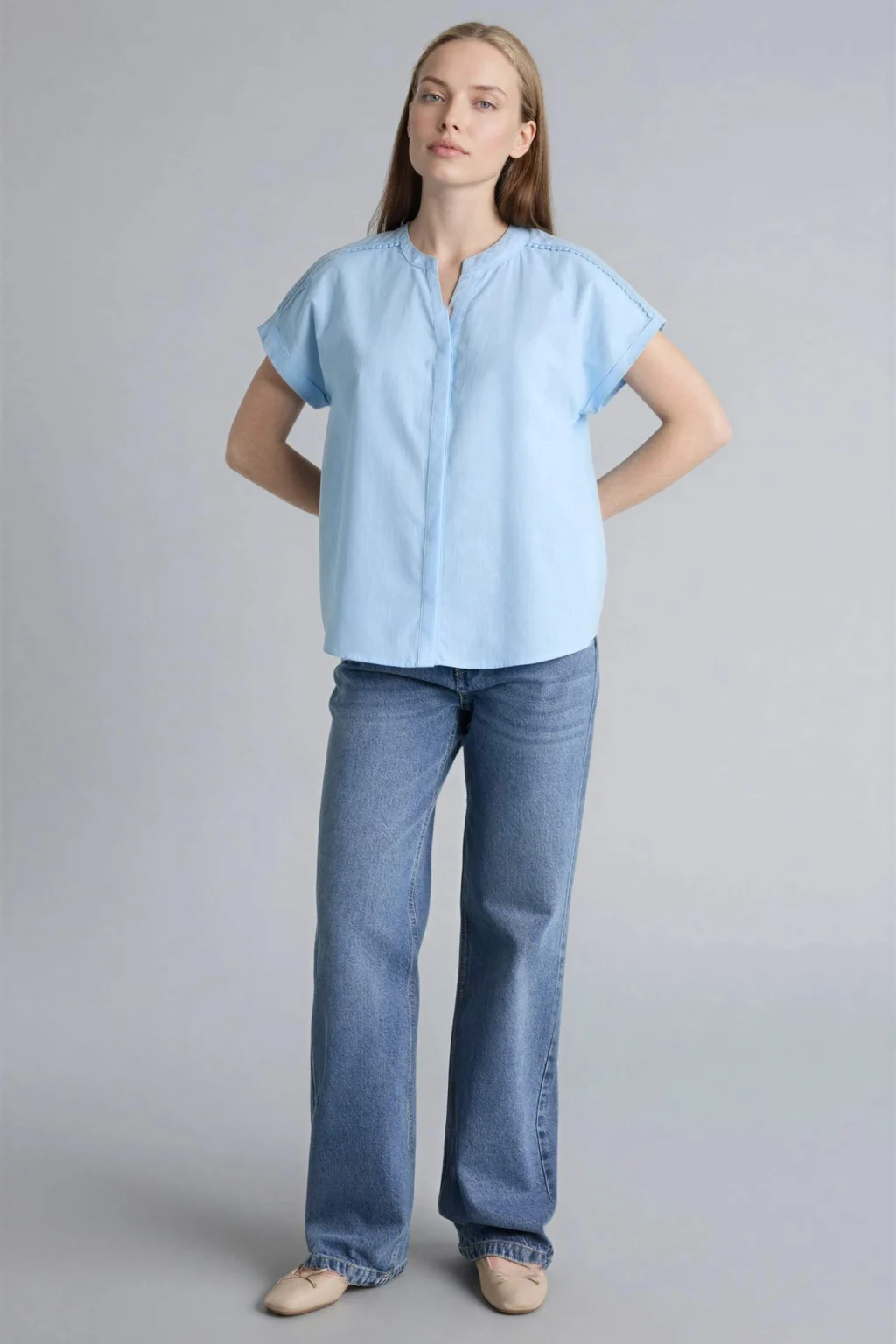 Defacto G8610AXBE744 Mavi Fıtted Poplin Gömlek