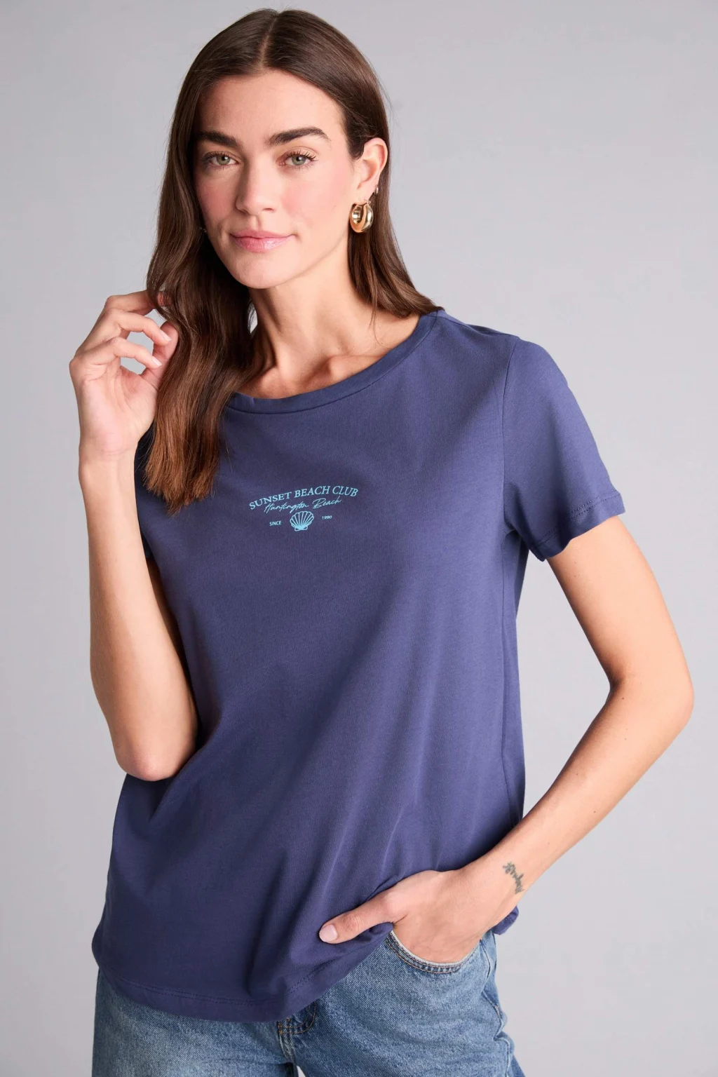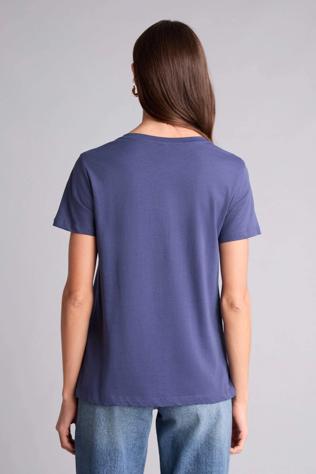 Yetişkinler için özel olarak tasarlanmış slogan desenli bisiklet yaka kısa kollu tişört. Regular fit kalıbı sayesinde rahat bir kullanım sunar. İlkbahar/Yaz sezonuna uygun ve şık indigo rengiyle dikkat çeker. Örme kumaştan üretilmiş ve kadınlar için ideal bir seçenektir.
