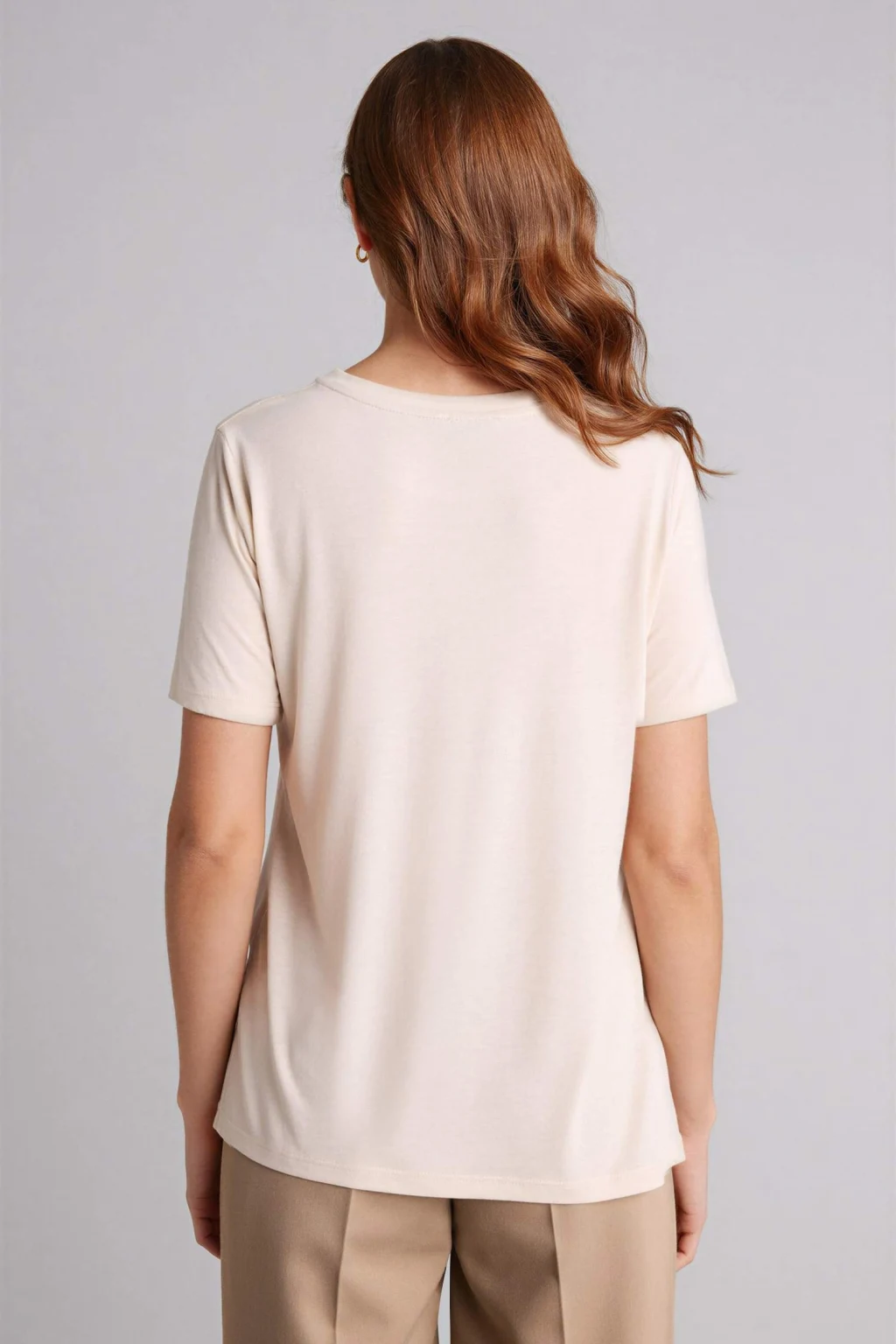 Defacto H0561AXER105 Ekru Regular Fıt V Yaka Kısa Kollu Tişört
