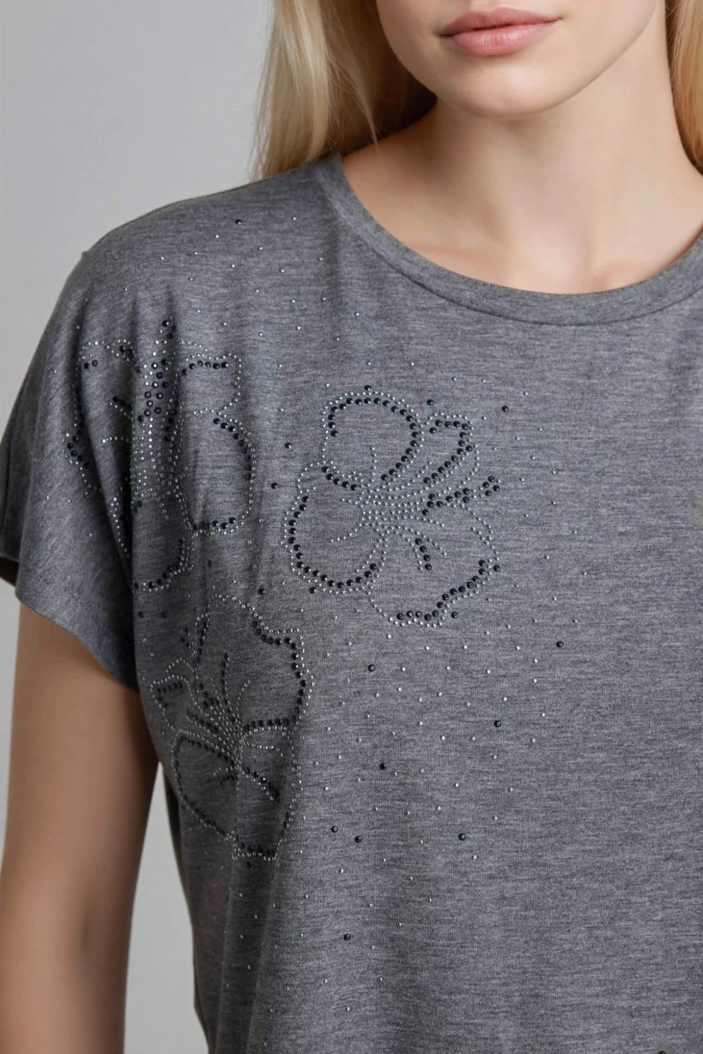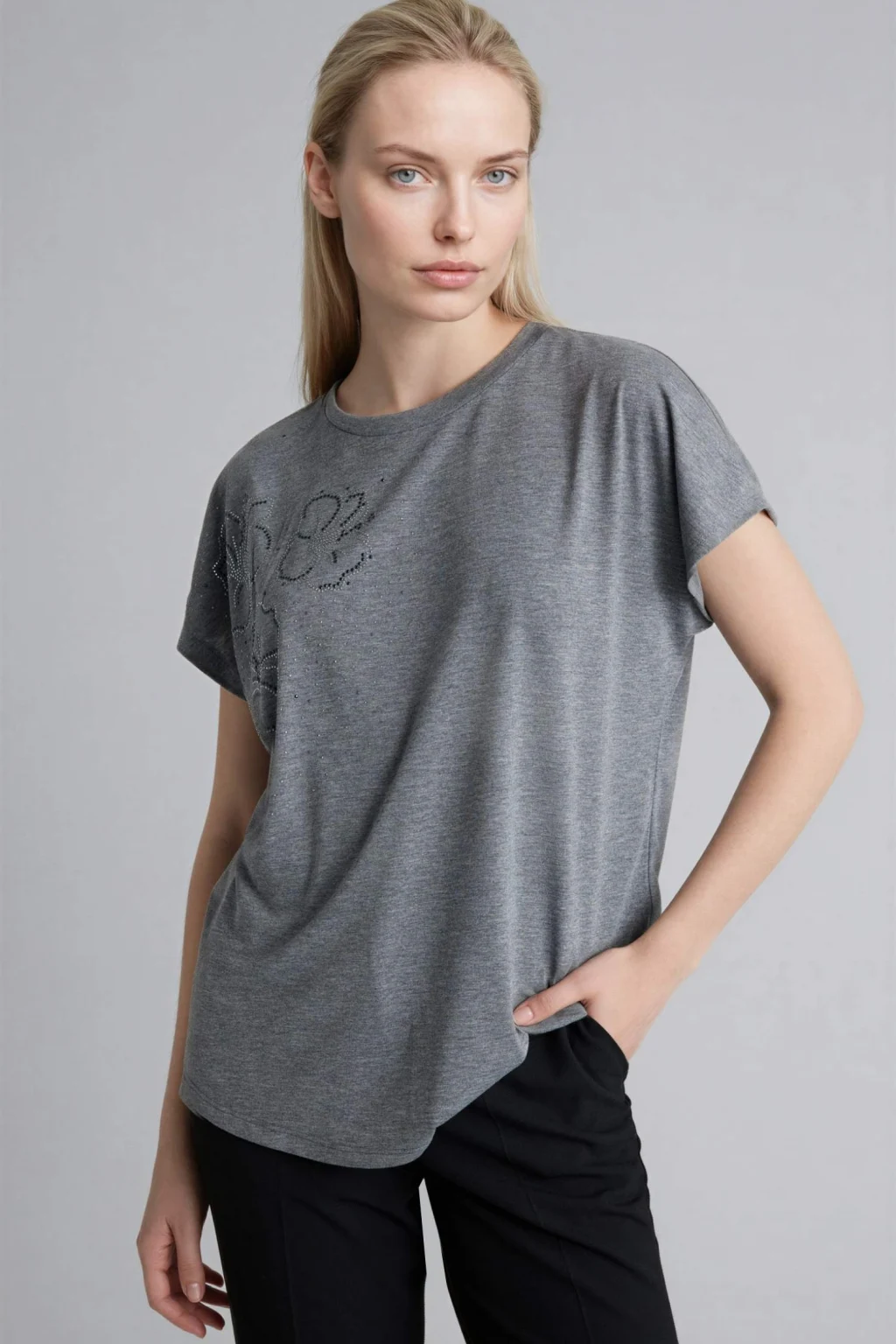 Defacto H1456AXAR166 Antrasit Bisiklet Yaka Taş Baskılı Kısa Kollu Tişört