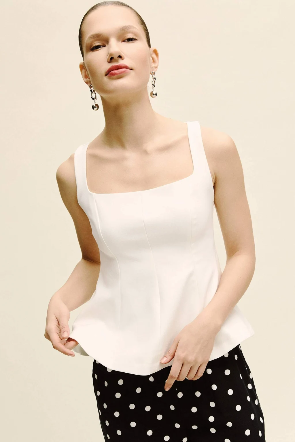 Fitted Kare Yaka Krep Askılı Bluz, vücuda oturan kesimi ve şık kare yaka detayıyla zarif bir siluet sunar. Krep kumaşı, hafif ve şık bir dokunuşla günlük ve özel kombinlerinizi tamamlar.