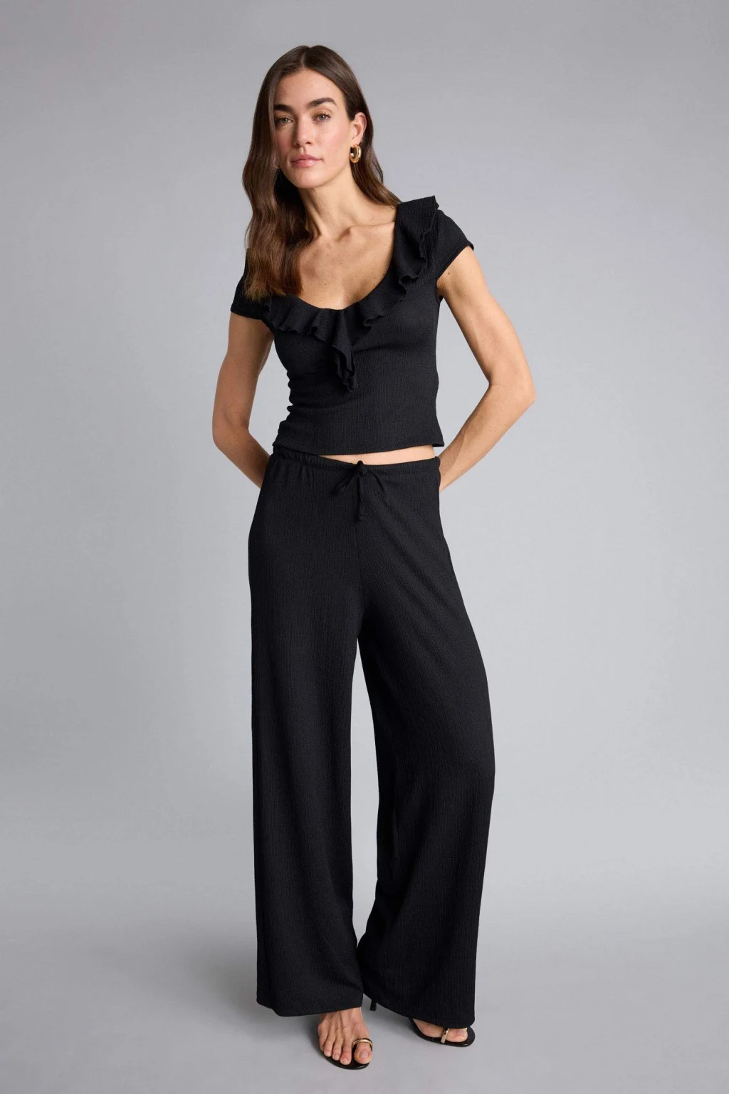 LCWAIKIKI Basic Siyah Bisiklet Yaka Pul Payetli Kısa Kollu Kadın Tişört
