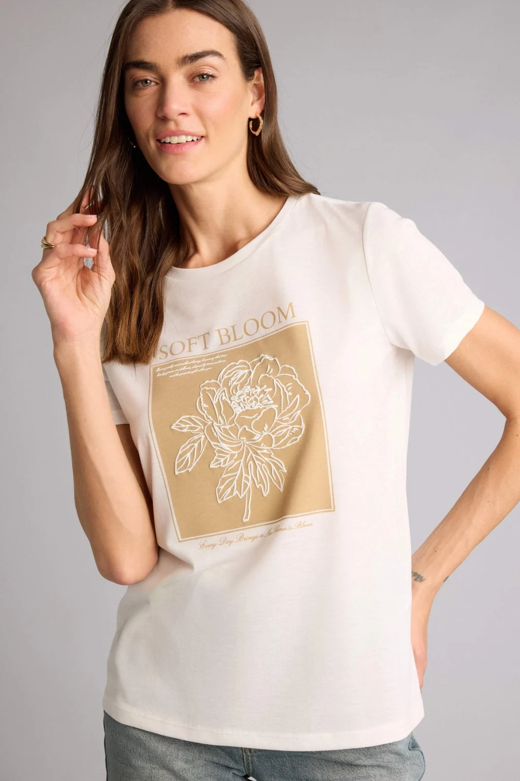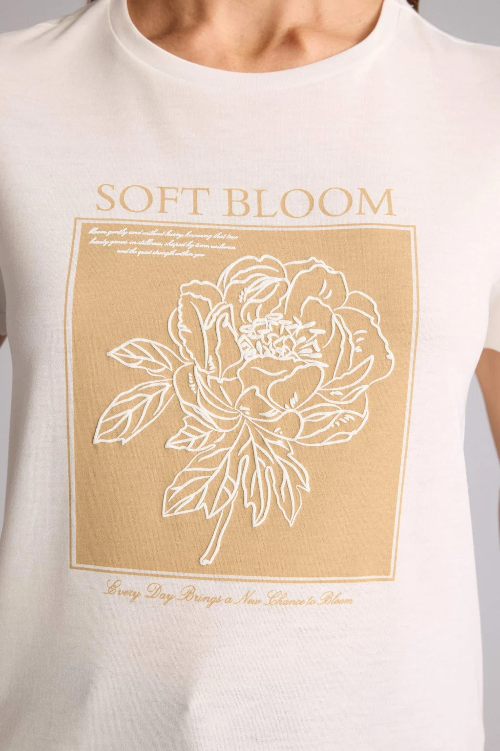 Defacto H2356AXER105 Ekru Regular Fıt Bisiklet Yaka Çiçekli Kısa Kollu Tişört