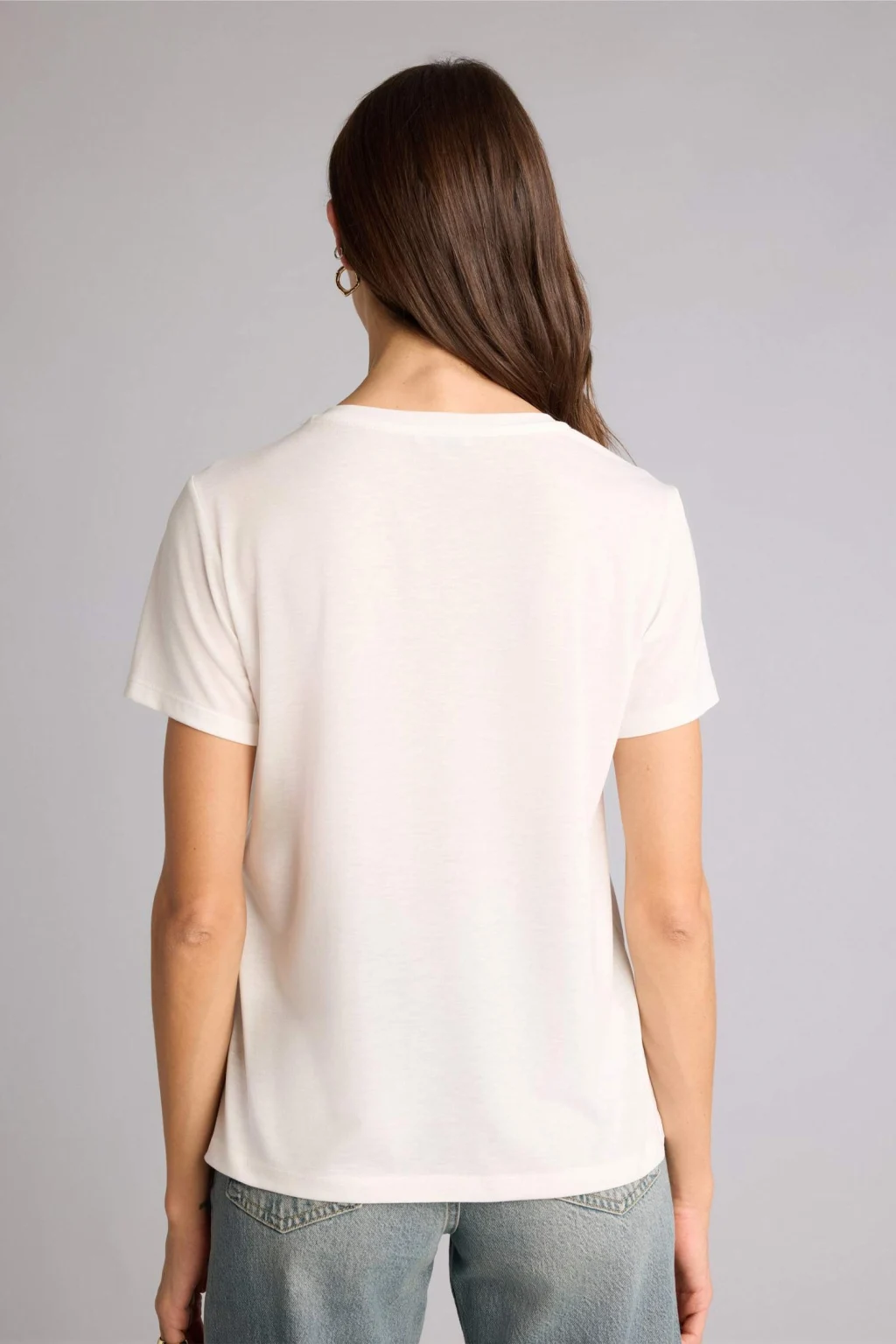 LCW Vision Beyaz V Yaka Düz Kısa Kollu Kadın Tişört