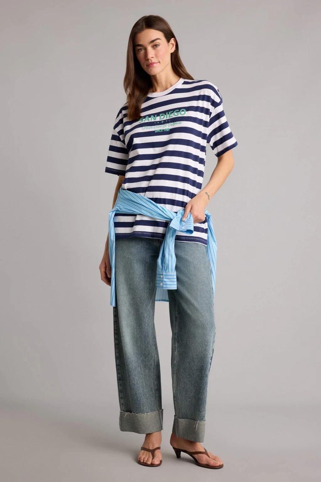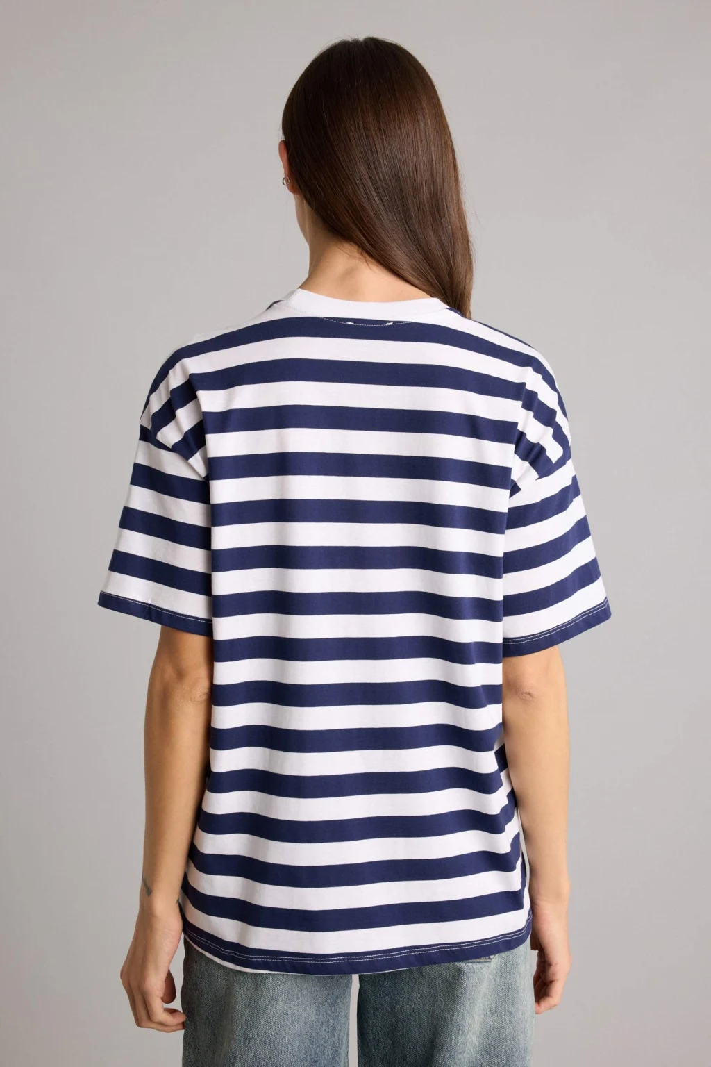 Defacto H2359AXER105 Ekru Oversıze Çizgili Tişört
