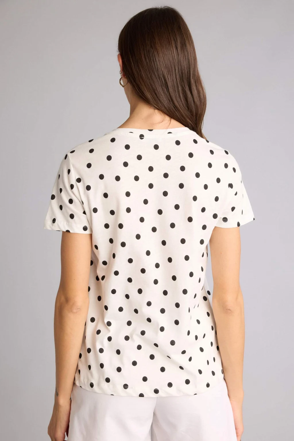 Puantiyeli Penye Kısa Kollu Tişört, yumuşak penye kumaşı ve rahat kesimiyle gün boyu konfor sunar. Puantiye deseniyle enerjik ve şık bir görünüm kazandırır, günlük kombinler için ideal bir parçadır.