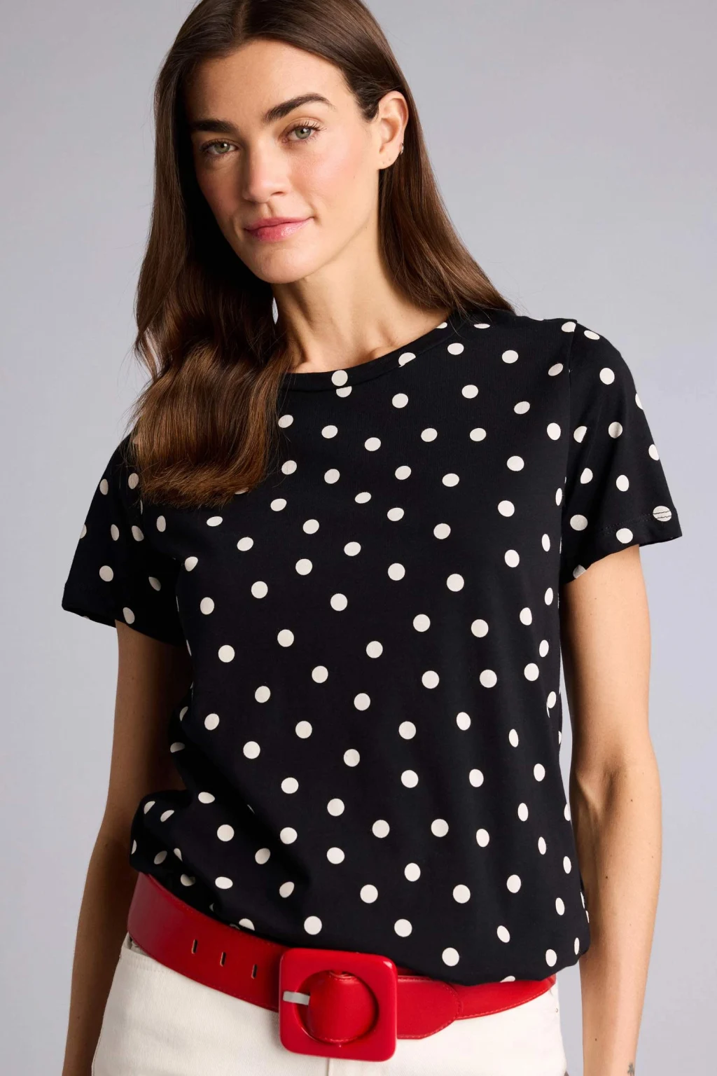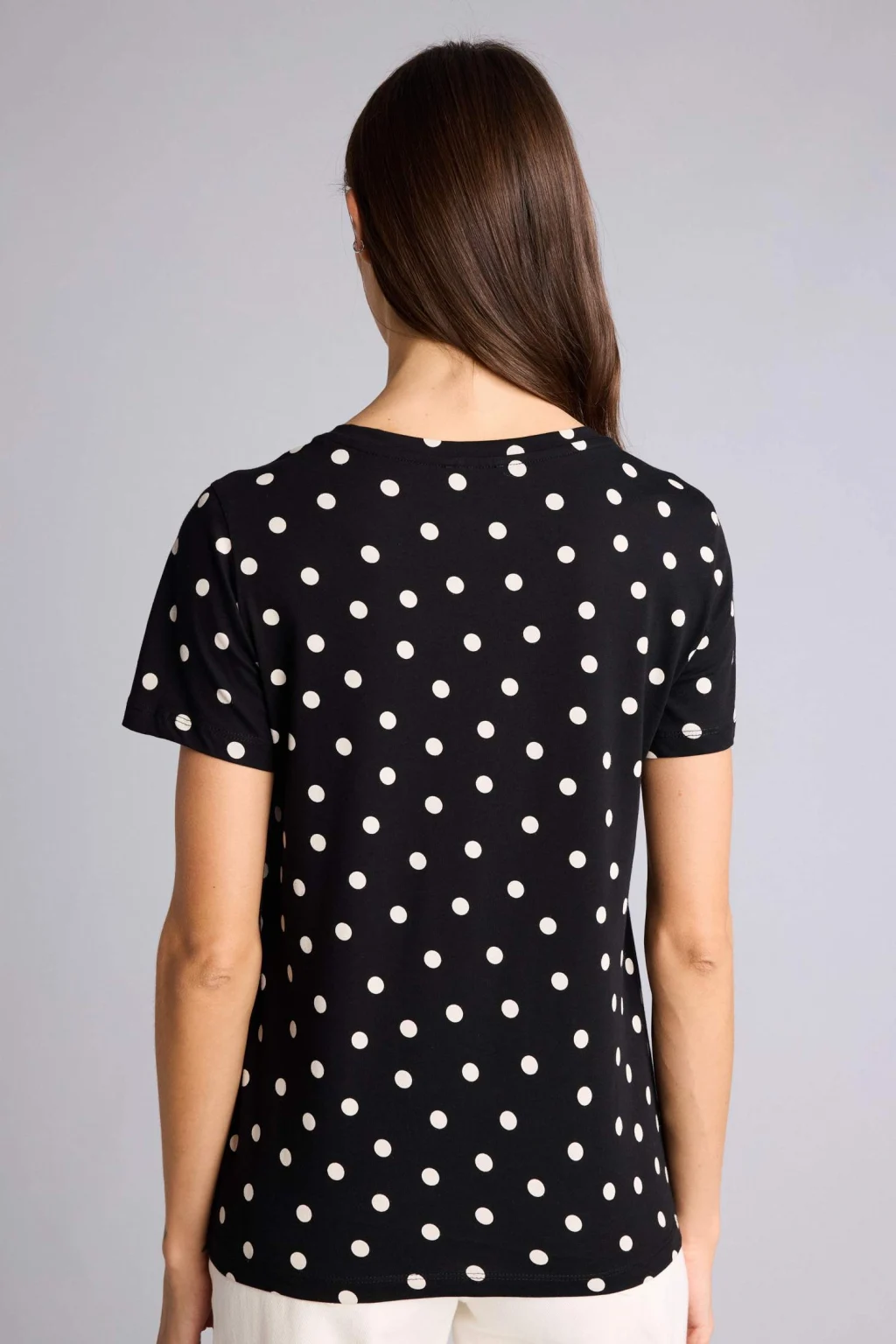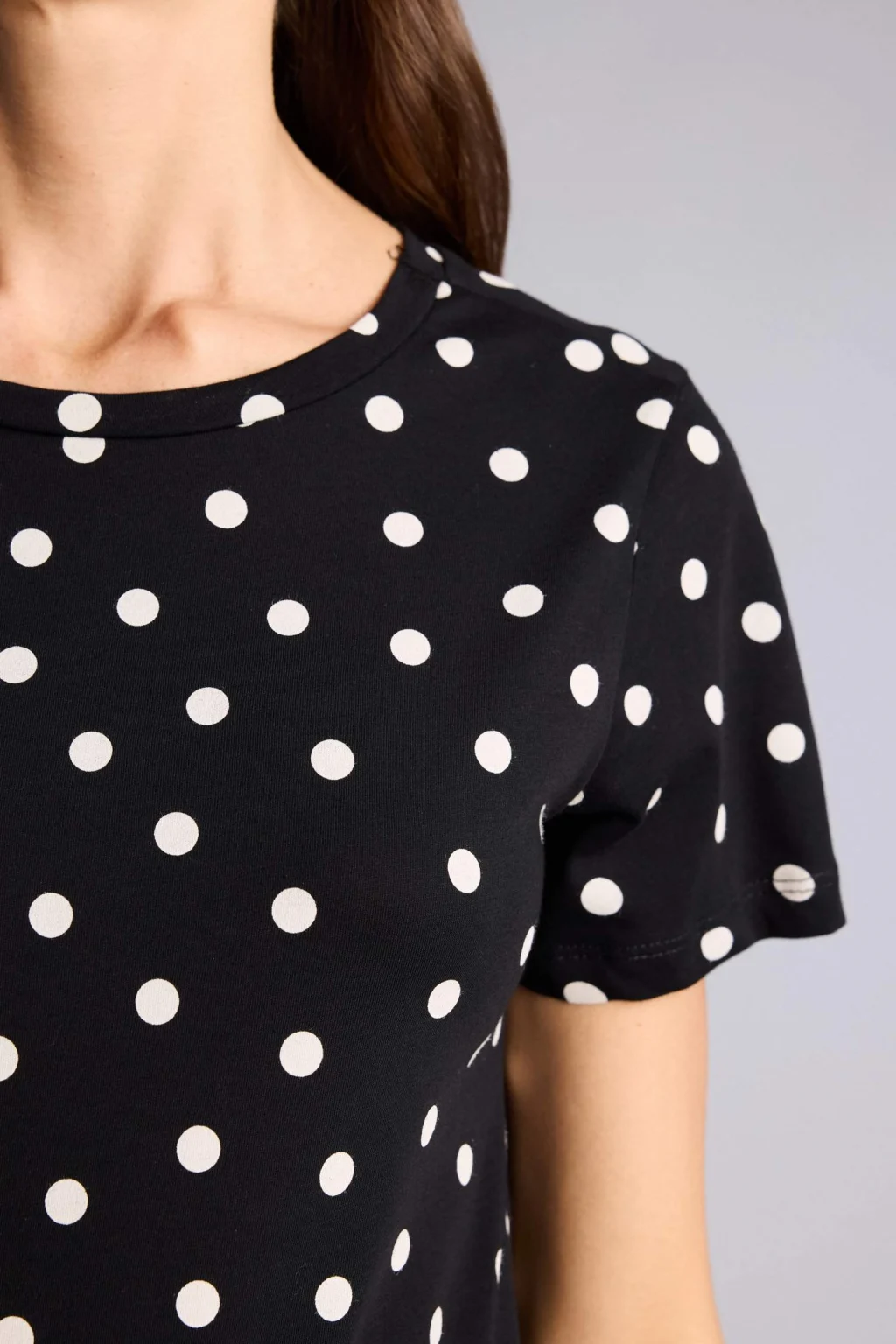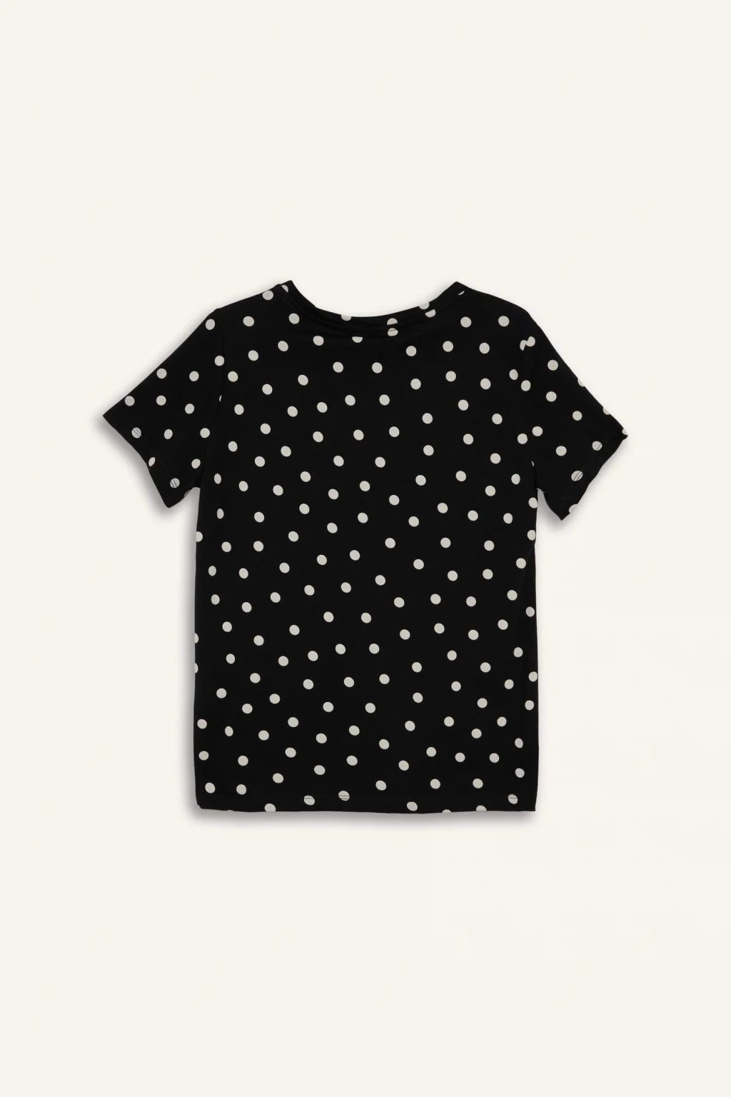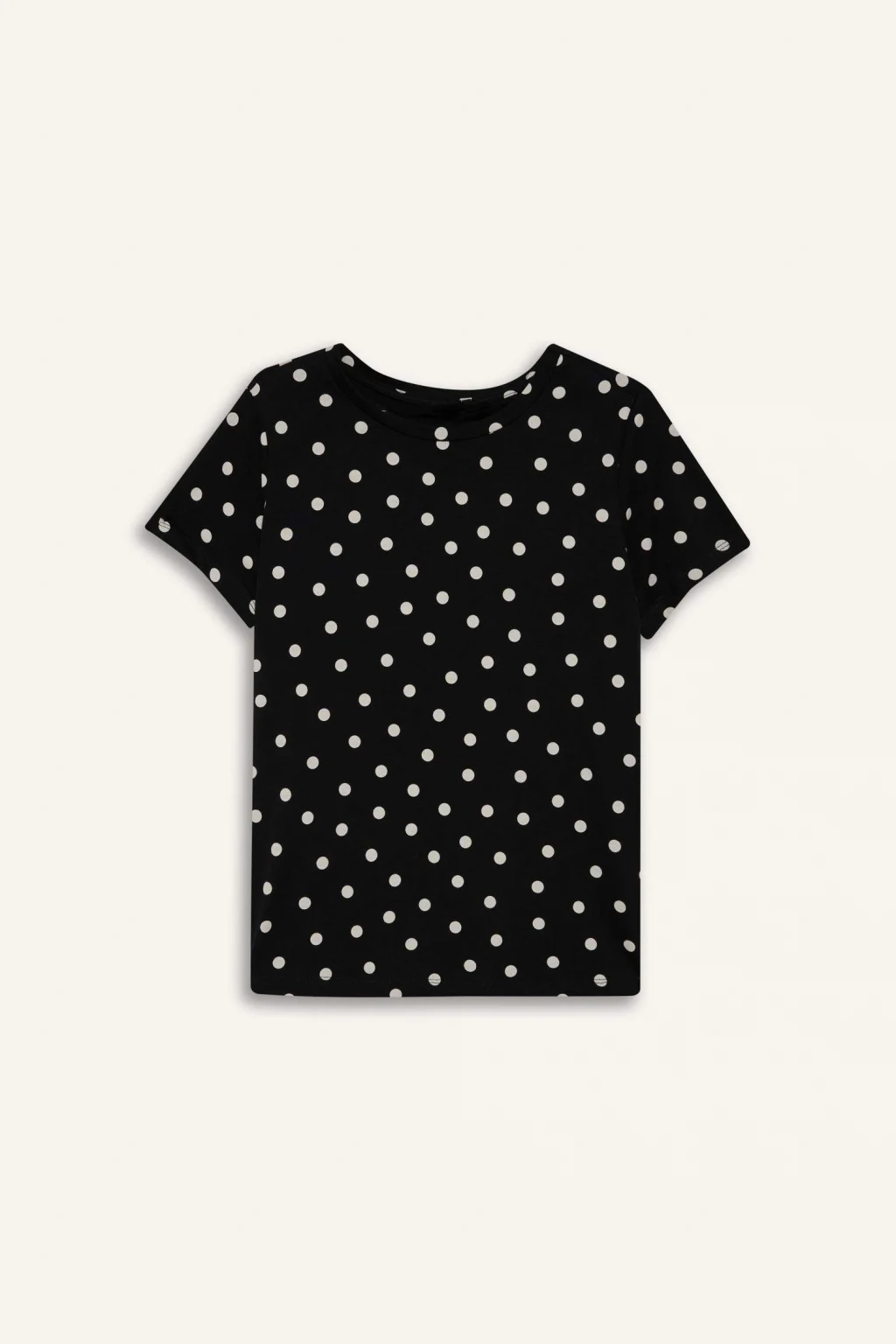 Defacto H2433AXBK81 Siyah Puantiyeli Penye Tişört