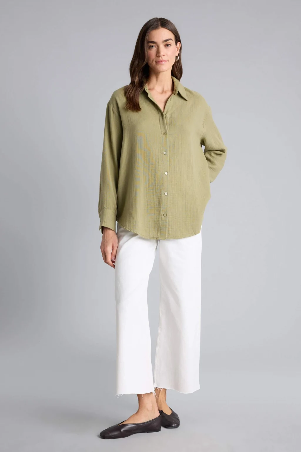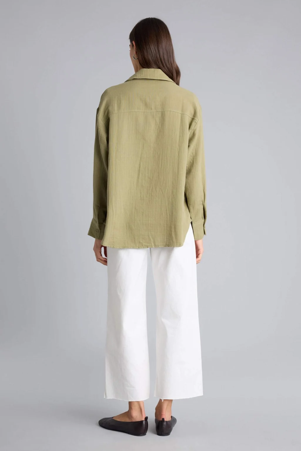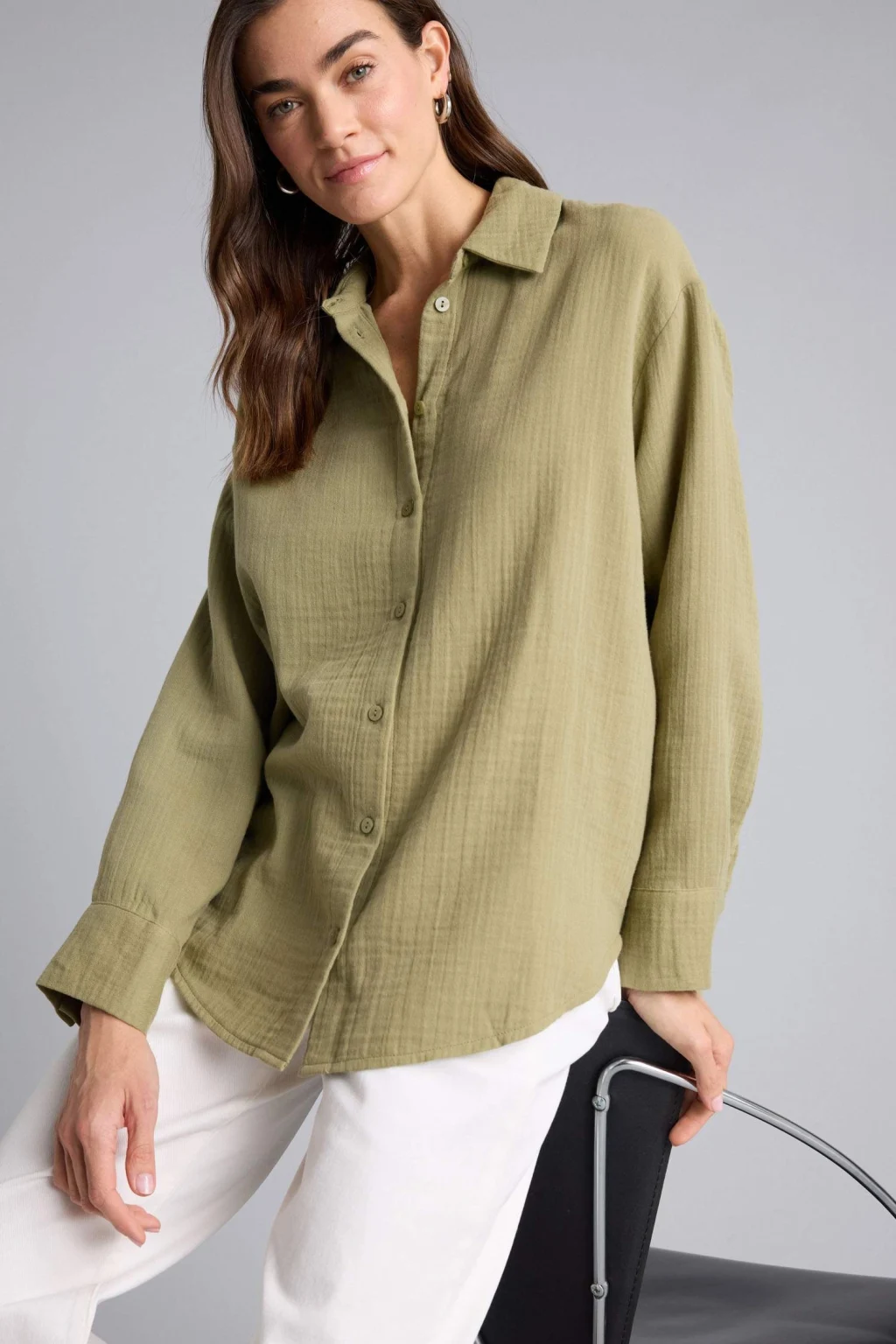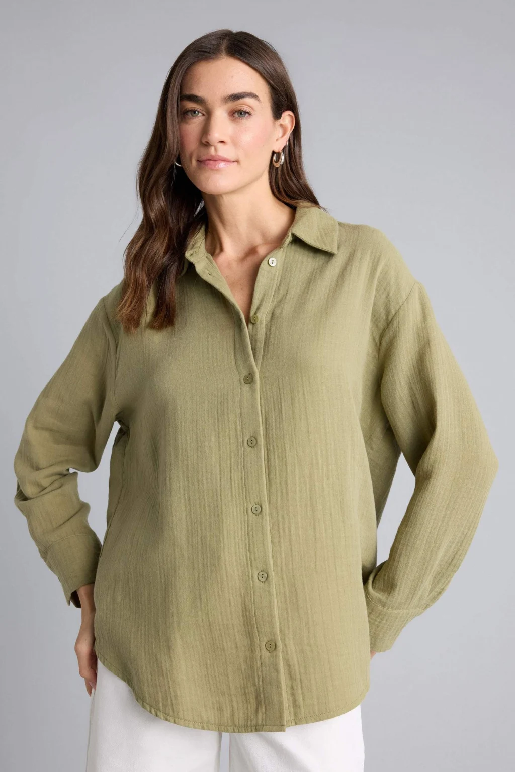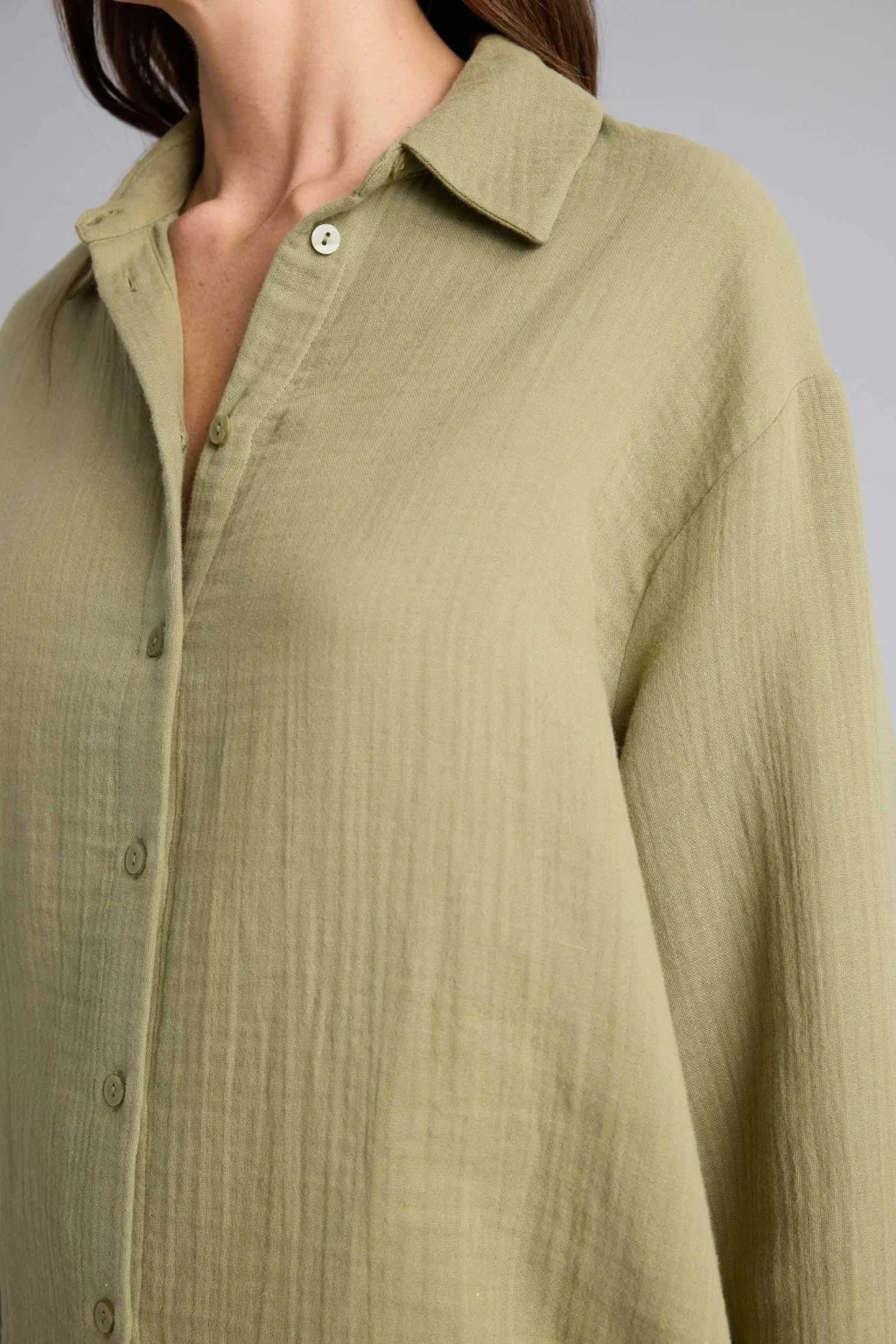 Defacto H1476AXKH461 Haki Oversıze Gömlek Yaka Çizgili Poplin Uzun Kollu Gömlek