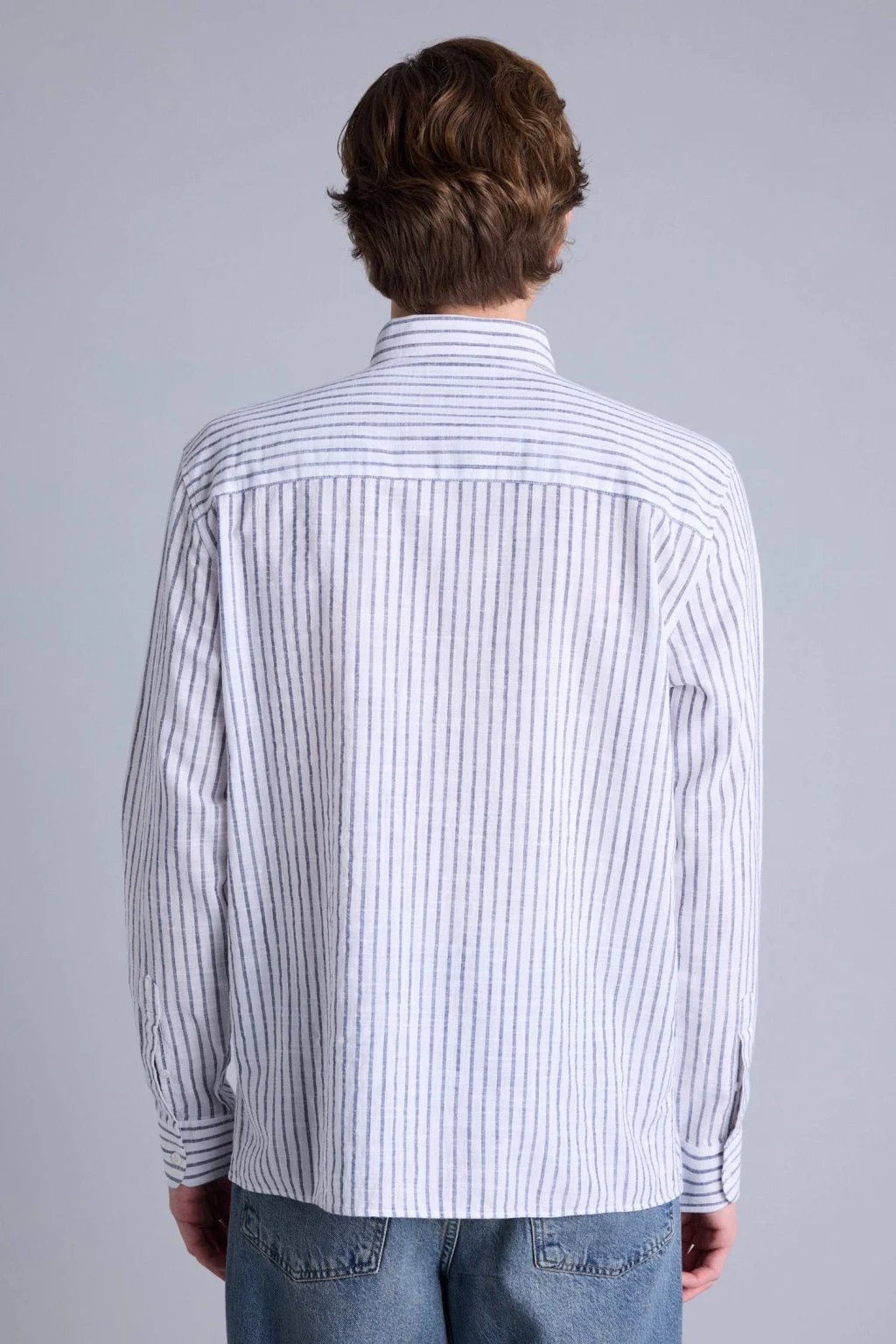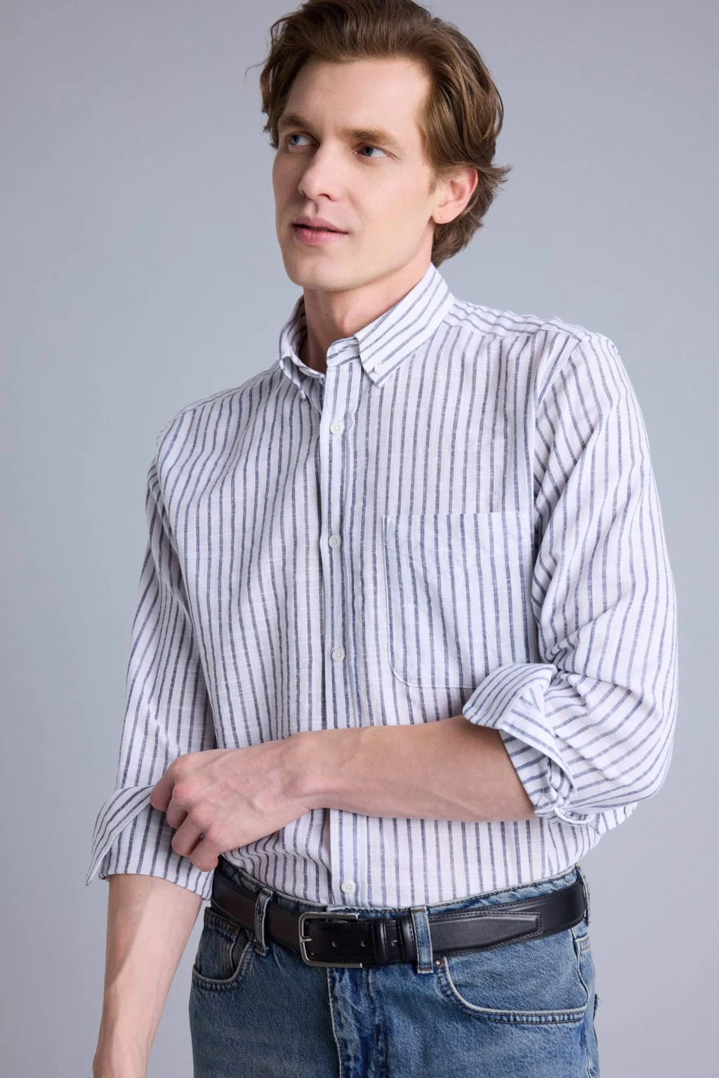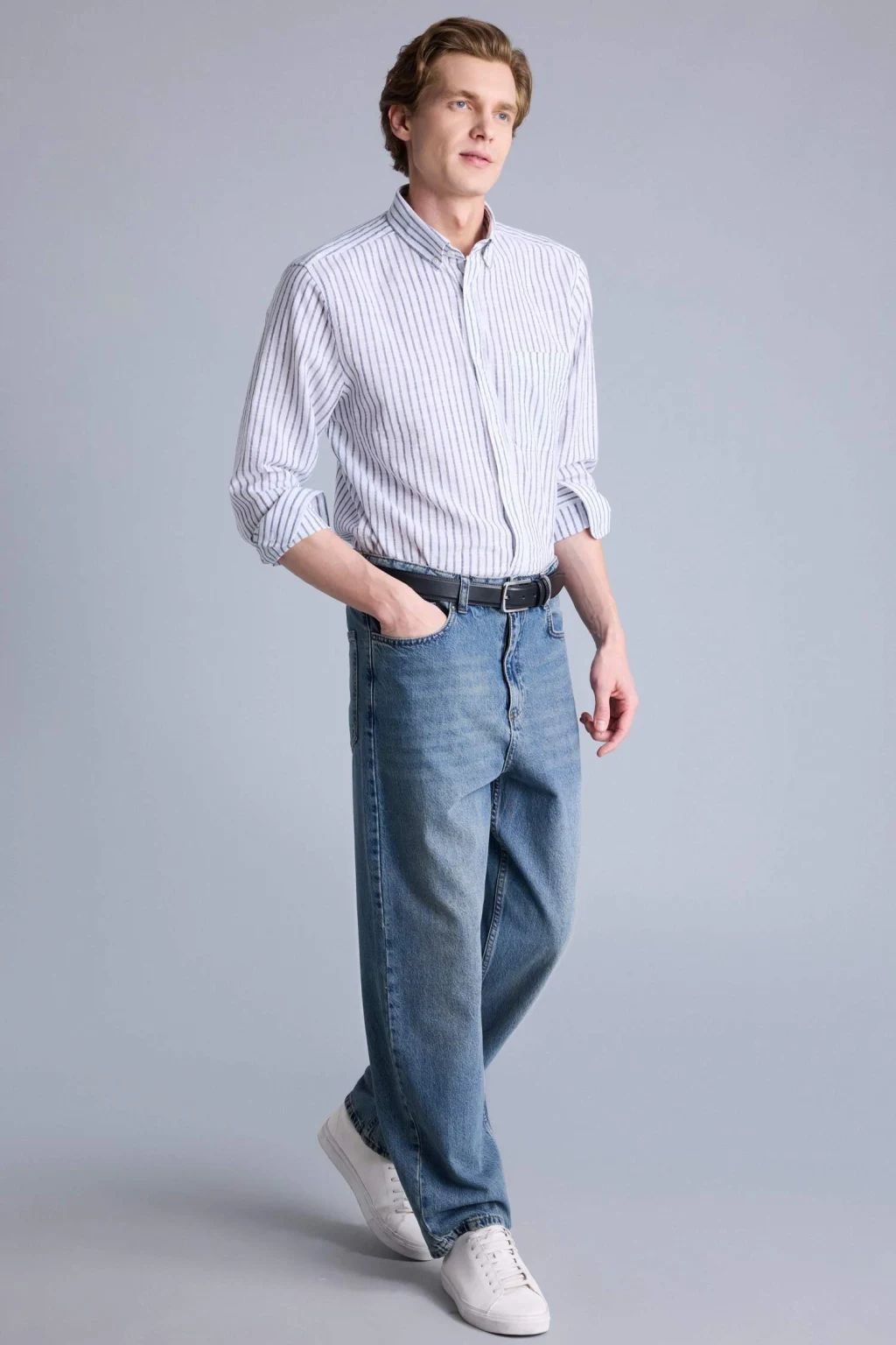 Defacto D6114AXIN131 İndigo %100 Pamuk Çizgili Gömlek