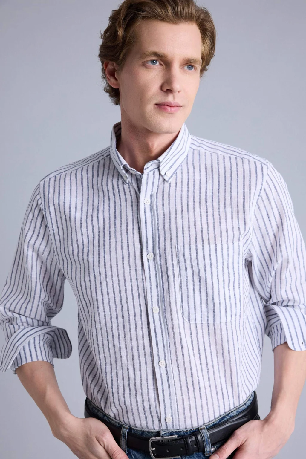 Mavi 0211851-91406 Çizgili Lacivert Gömlek