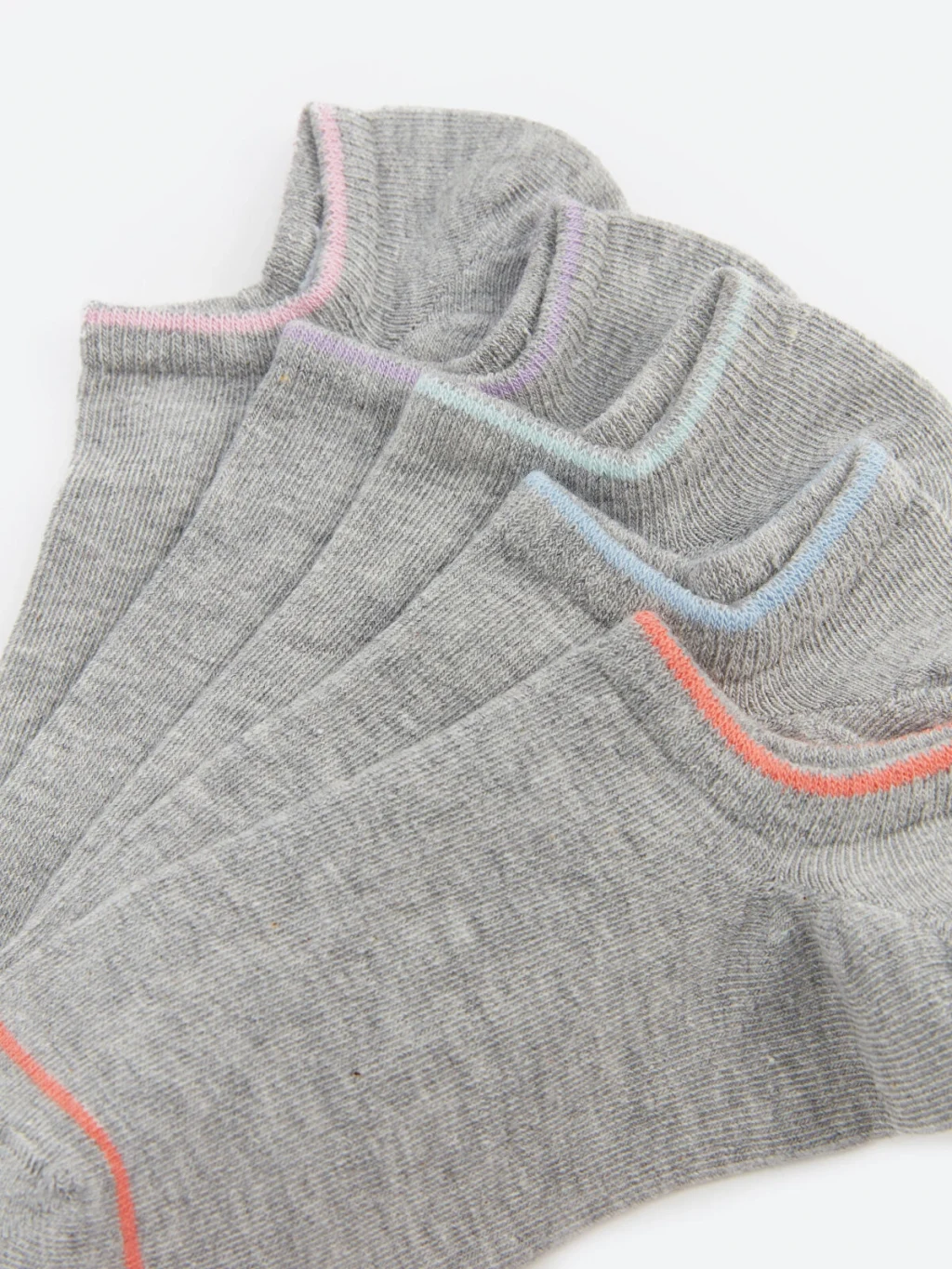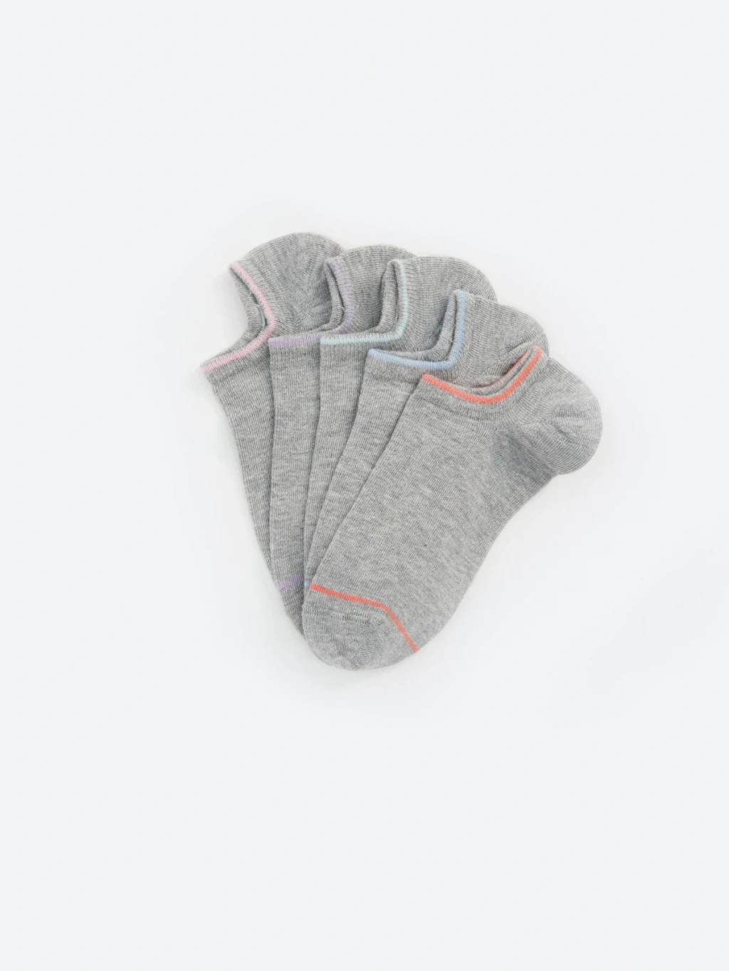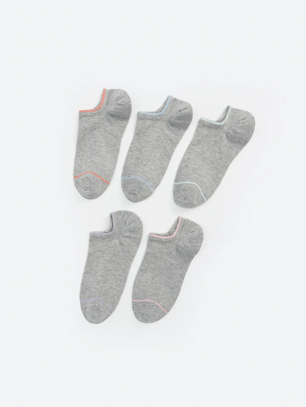 Pamuk karışımlı elyaftan üretilen patik çoraplar, yumuşak ve konforlu bir dokuya sahiptir. Düz, sade tasarımıyla doğal bir görünüm sunar ve 5 çift patik çoraptan oluşmaktadır.
