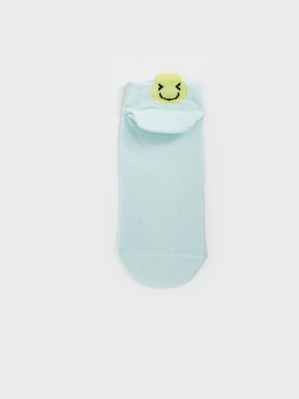 Kız çocuk için 5'li patik çorap seti, gülen yüz ve yazı baskılı, çizgili ve düz olmak üzere farklı desenlerden oluşur.
