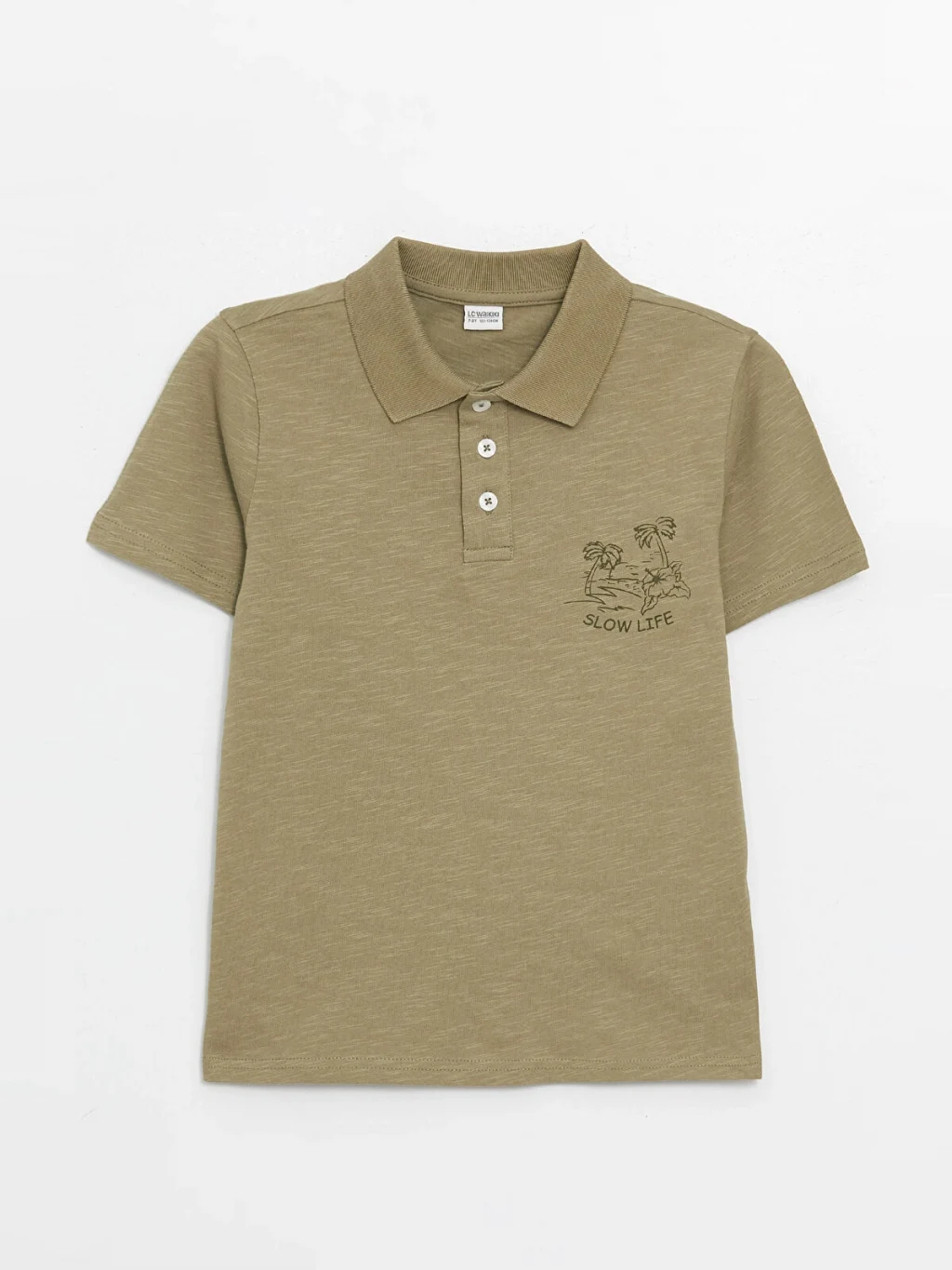 Polo yakalı ve kısa kollu erkek çocuk tişört, %100 pamuklu penye kumaştan üretilmiştir. Önden düğme kapamalıdır ve göğsünde baskı detayı bulunur.