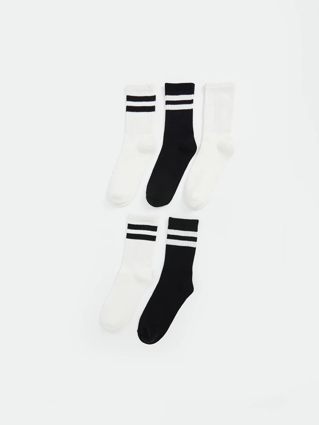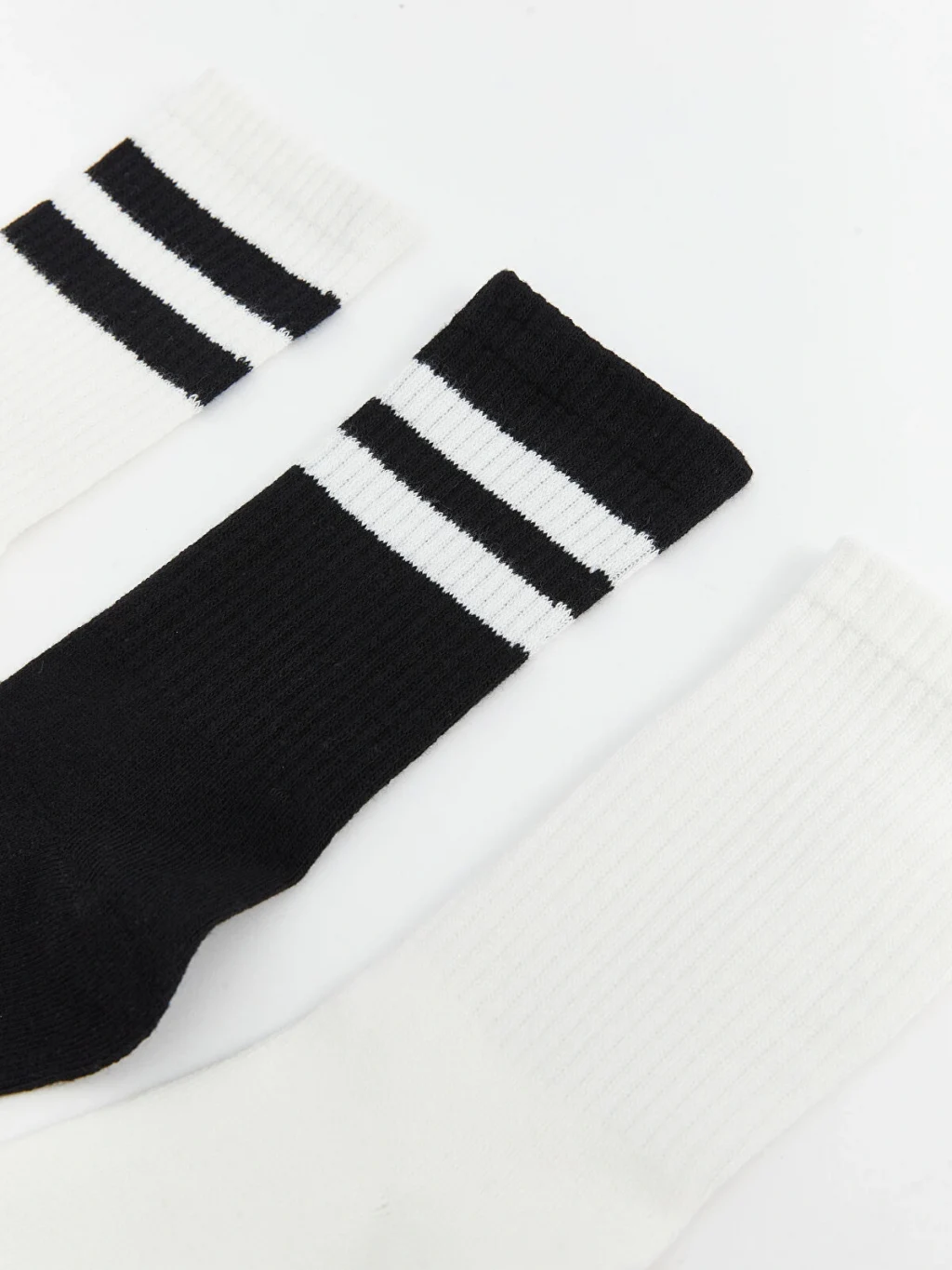 Pamuk karışımlı kumaştan üretilen soket çorap, yumuşak ve rahat bir dokuya sahiptir. Çizgili tasarımıyla klasik bir görünüm sunar ve 5 çift soket çoraptan oluşmaktadır.
