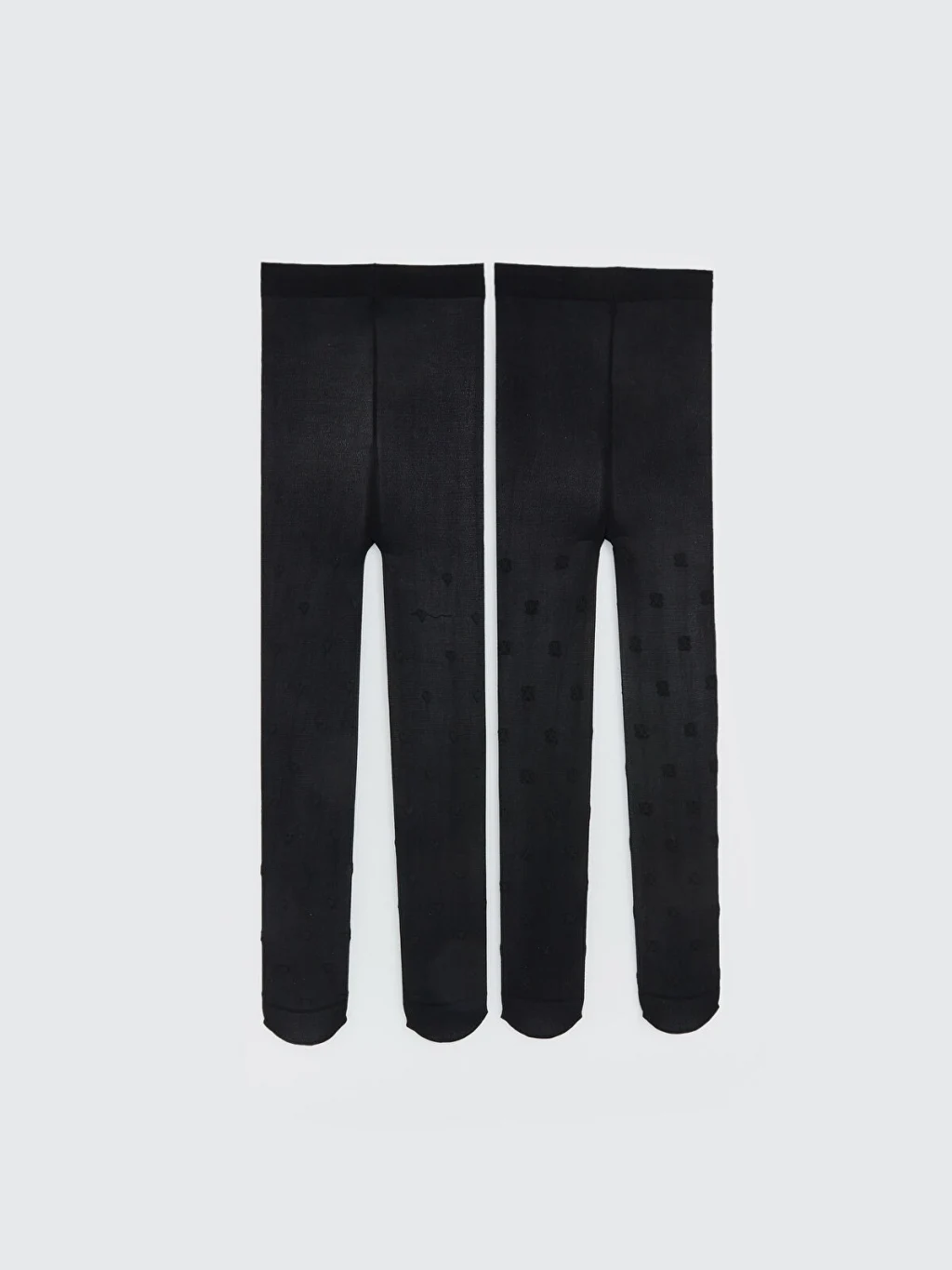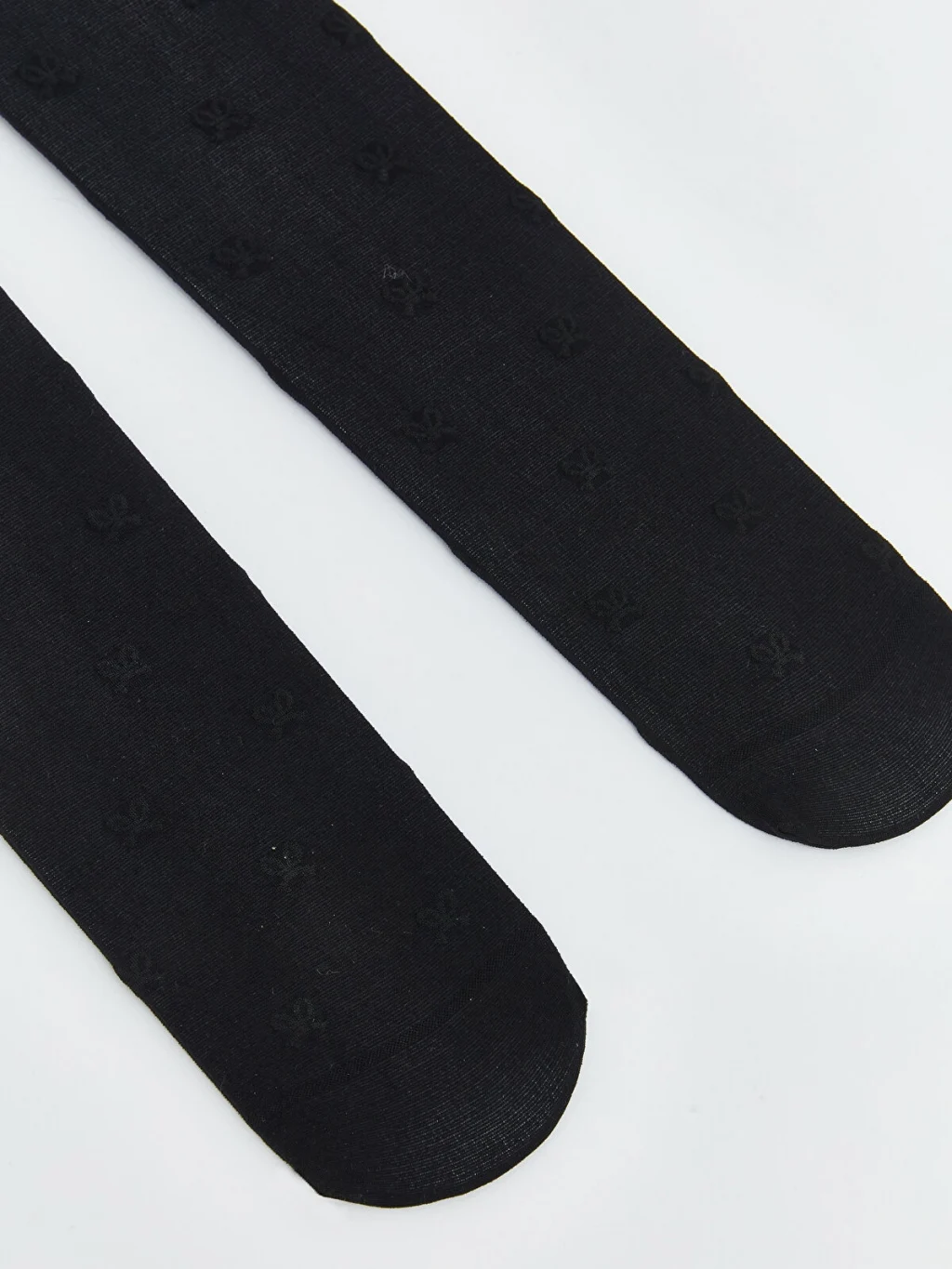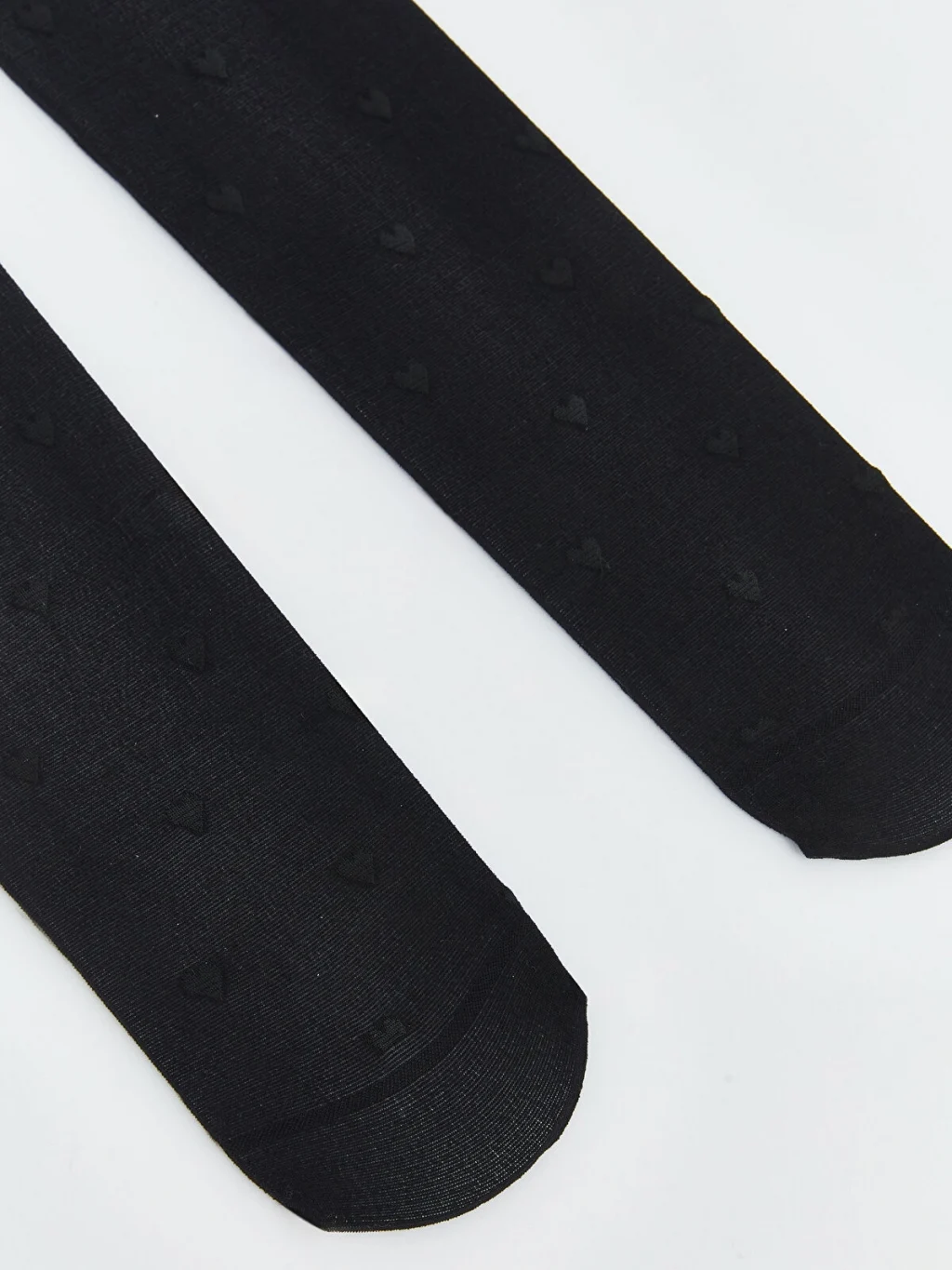 İkili paket kız çocuk külotlu çorap; biri kalp, diğeri fiyonk desenli olmak üzere iki farklı modelden oluşur.