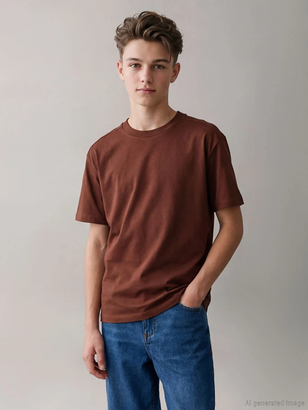 Bisiklet yaka ve kısa kollu erkek çocuk tişört, bol kalıplıdır. %100 pamuk içerikli penye kumaştan üretilmiştir.