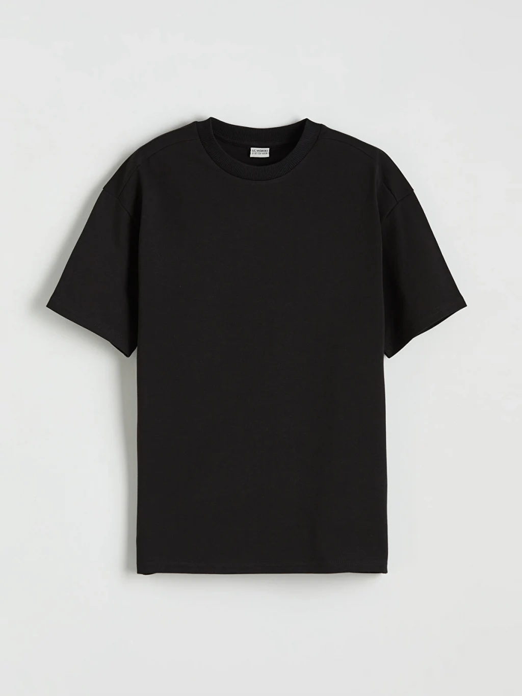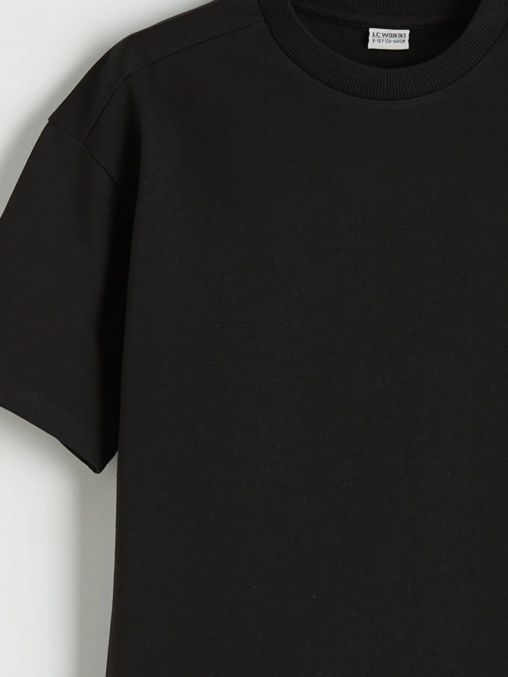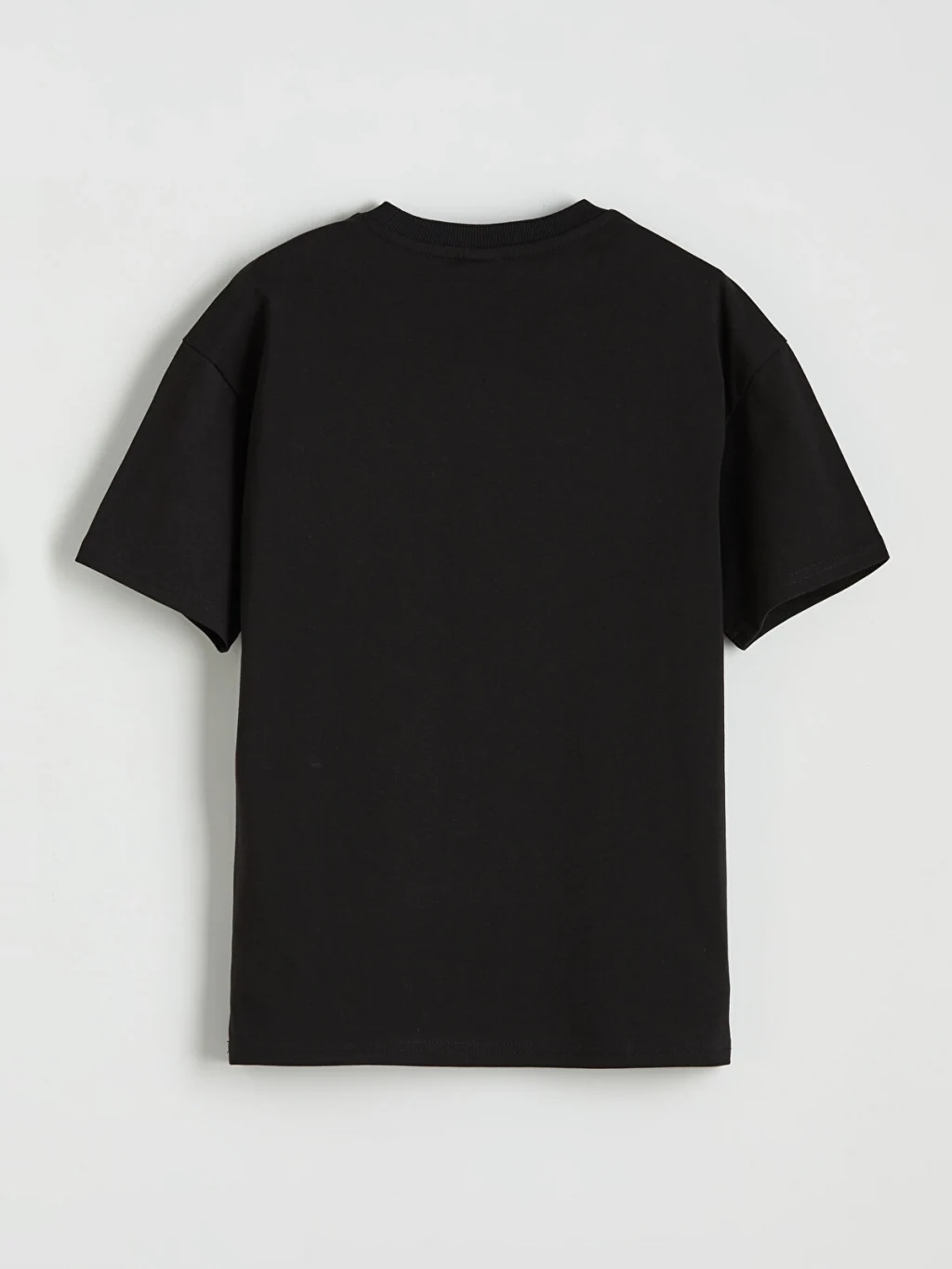 Bisiklet yakalı ve kısa kollu erkek çocuk tişört, pamuklu penye kumaştan üretilmiştir ve bol kalıba sahiptir.