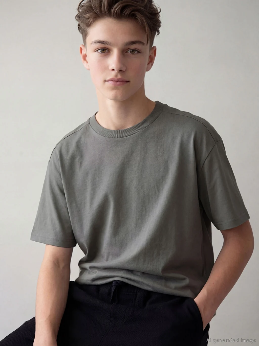 Bisiklet yaka ve kısa kollu erkek çocuk tişört, %100 pamuk penye kumaştan üretilmiştir ve bol kalıplıdır.