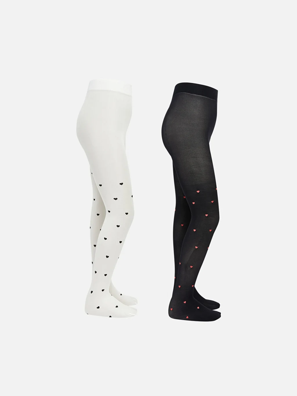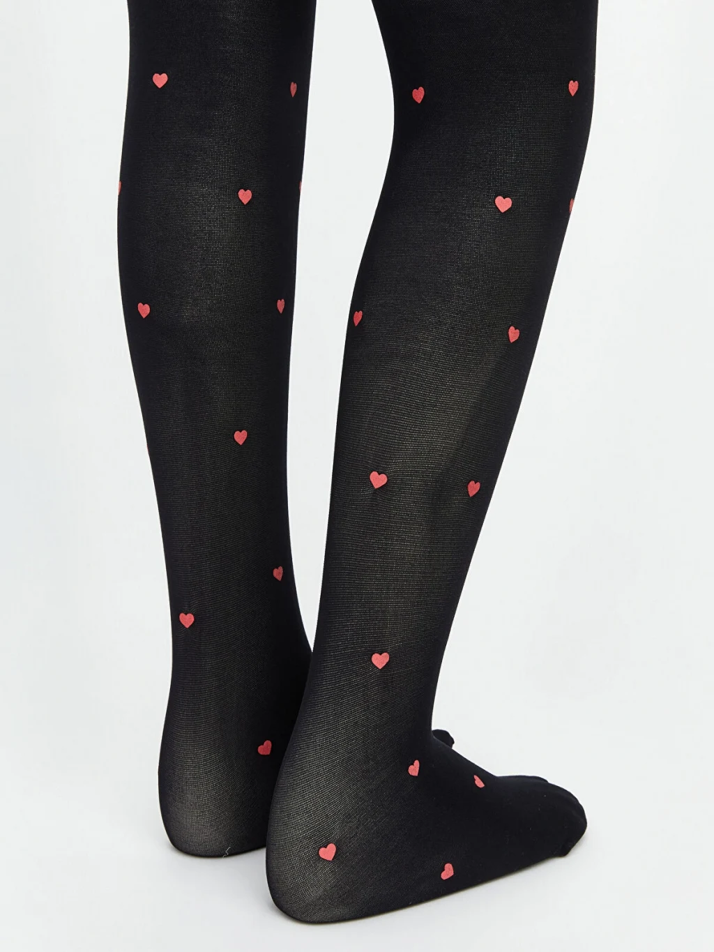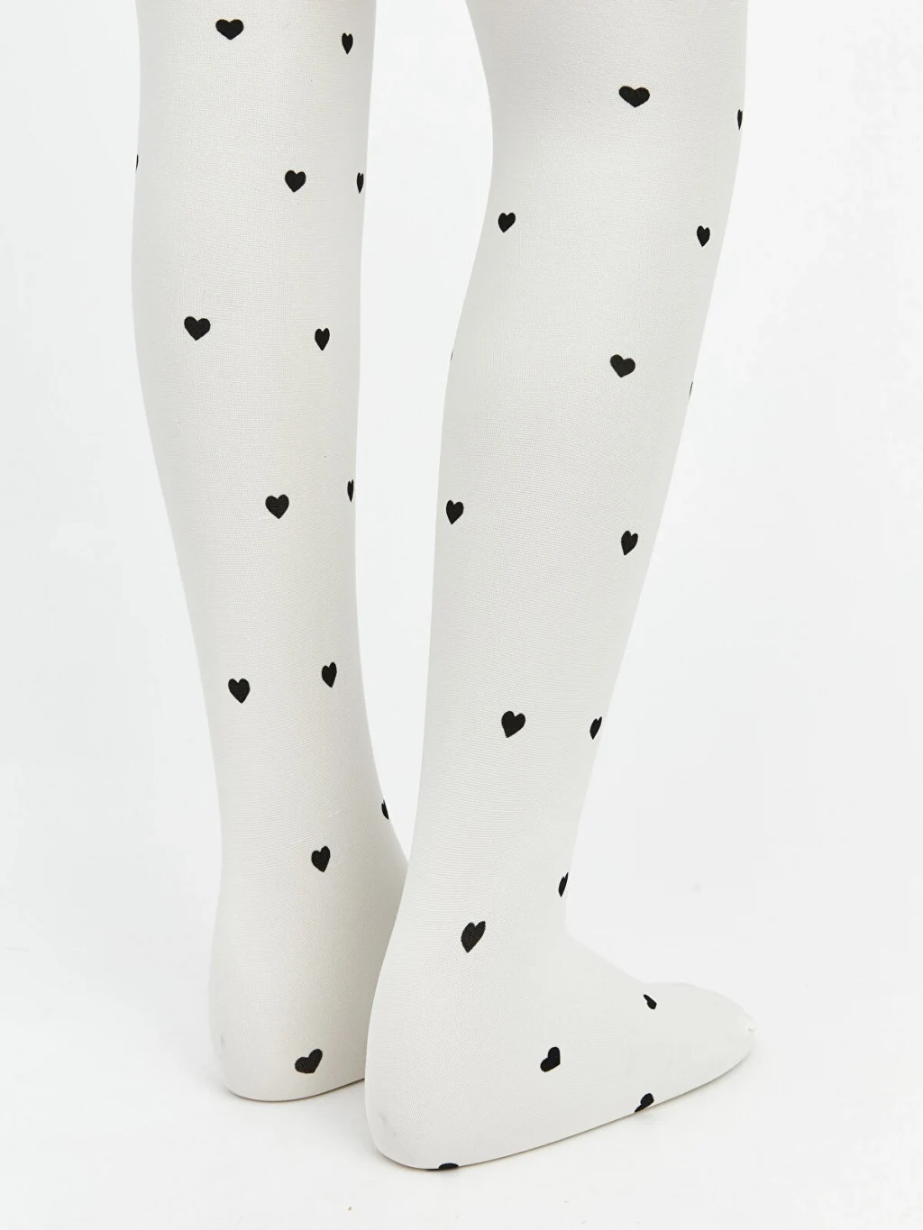 Paket içerisinde yer alan beli lastikli ve kapalı burunlu kız çocuk külotlu çorapları, farklı kalp desenli tasarımlara sahiptir.