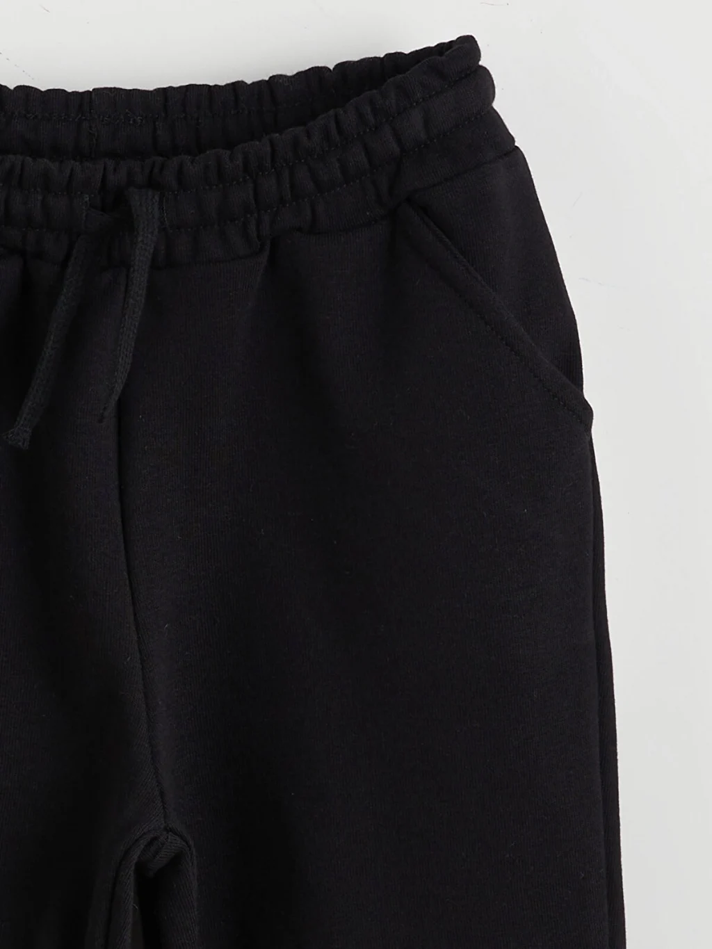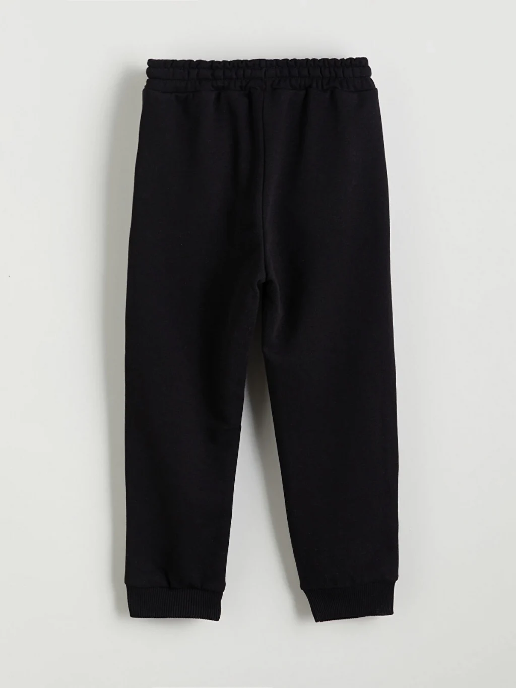 Beli lastikli ve bağcıklı, paçaları ribanalı erkek çocuk jogger eşofman altı, orta kalınlıkta 3 iplik kumaştan üretilmiştir ve yan cepleri bulunur.