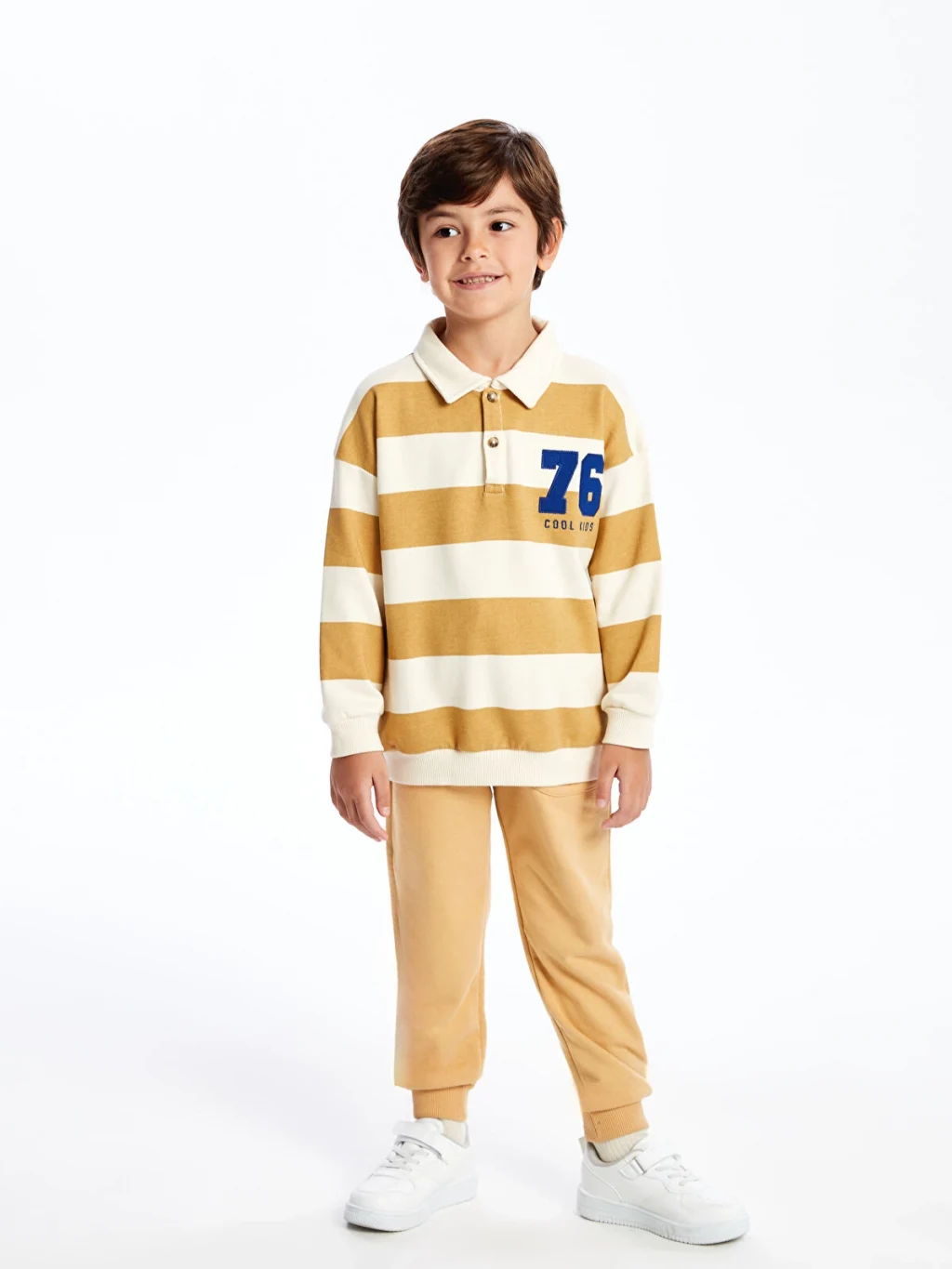 Polo yaka, uzun kollu erkek bebek sweatshirt. 3 iplik kumaşı ile yumuşak ve dayanıklıdır. Şık ve rahat tasarımıyla, bebeğinizin gün boyu konforlu hissetmesini sağlar. Soğuk havalar için ideal bir seçimdir. Bebeğinizi zararlı kimyasallardan korumak ve güvenliğini ön planda tutmak için ürünü örneklem yöntemiyle ekolojik testlerden geçiriyoruz. Üründe yutulabilir küçük parçalar, tehlikeli ipler ve keskin parçalar bulunmamaktadır.