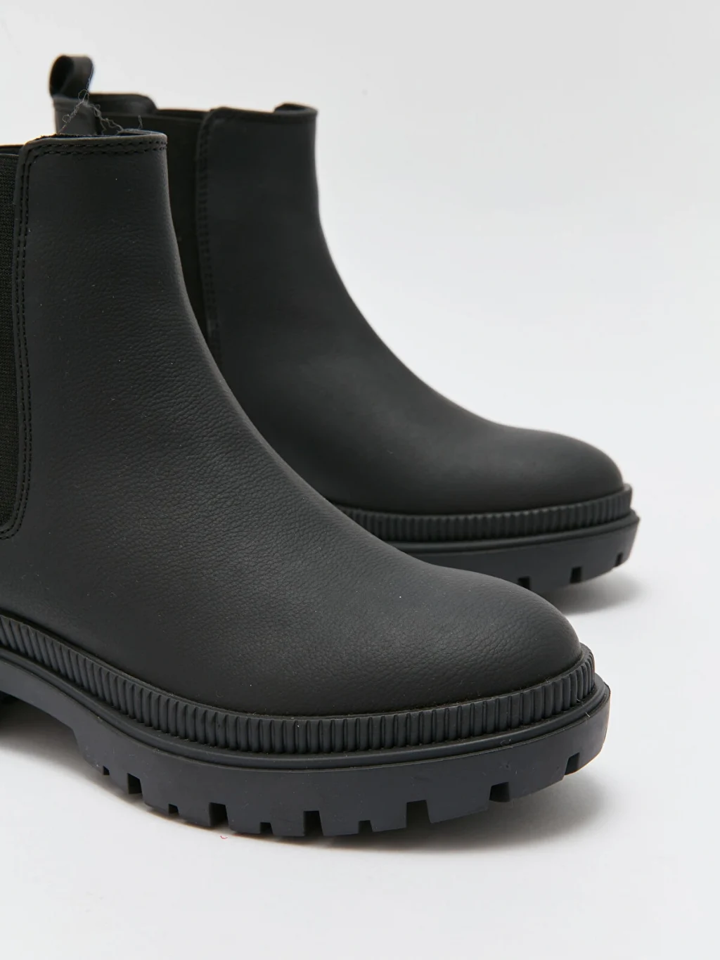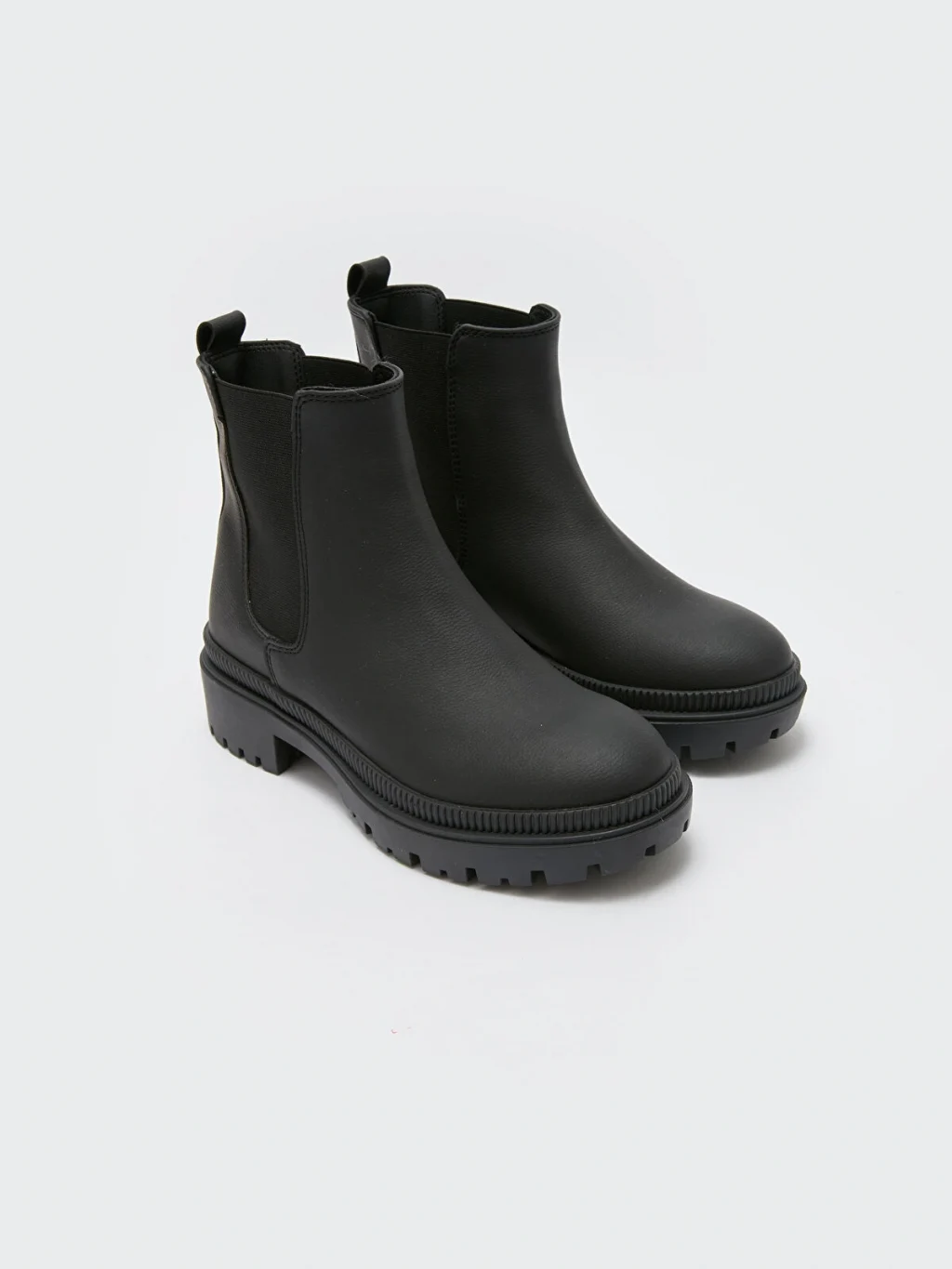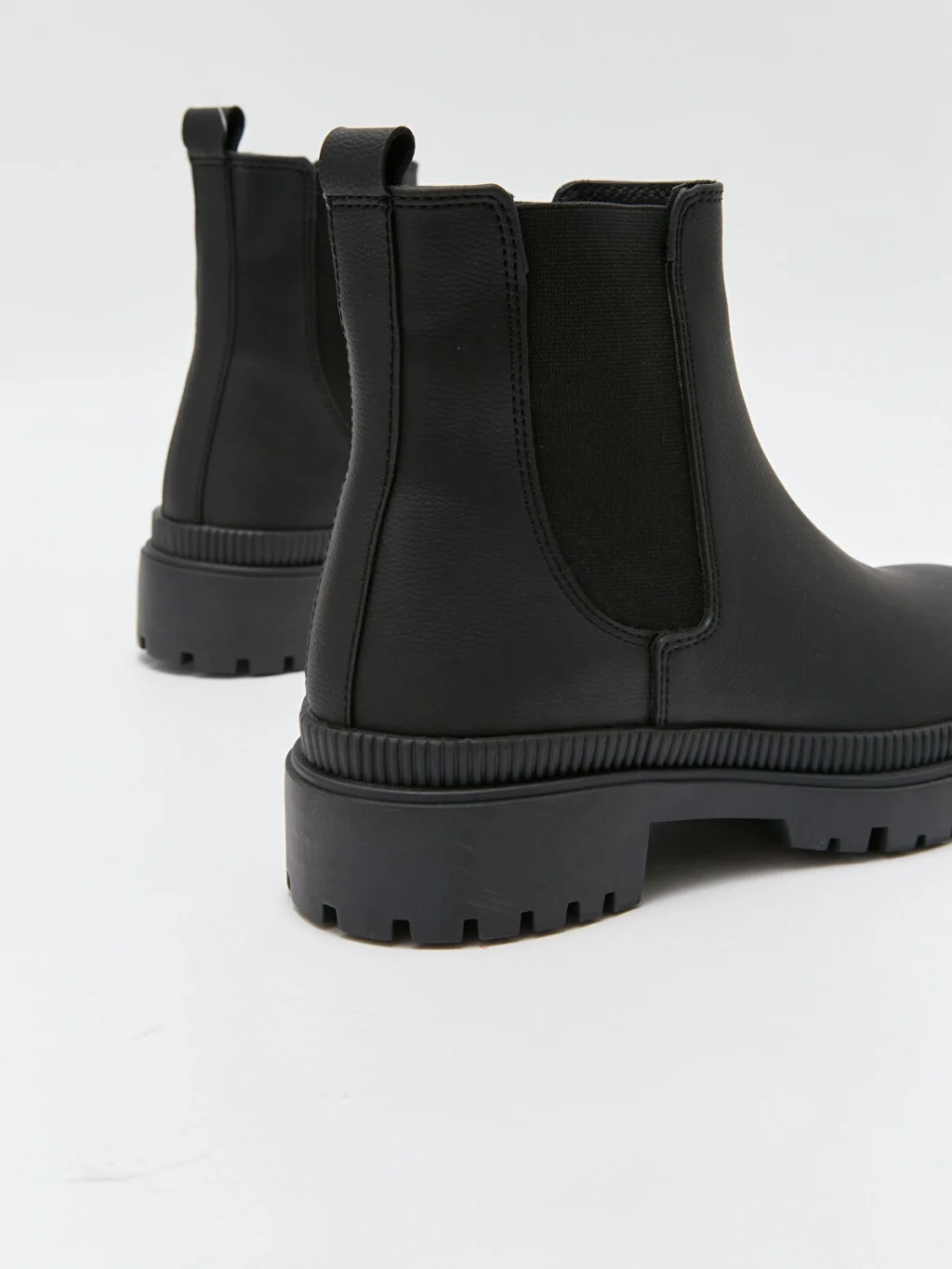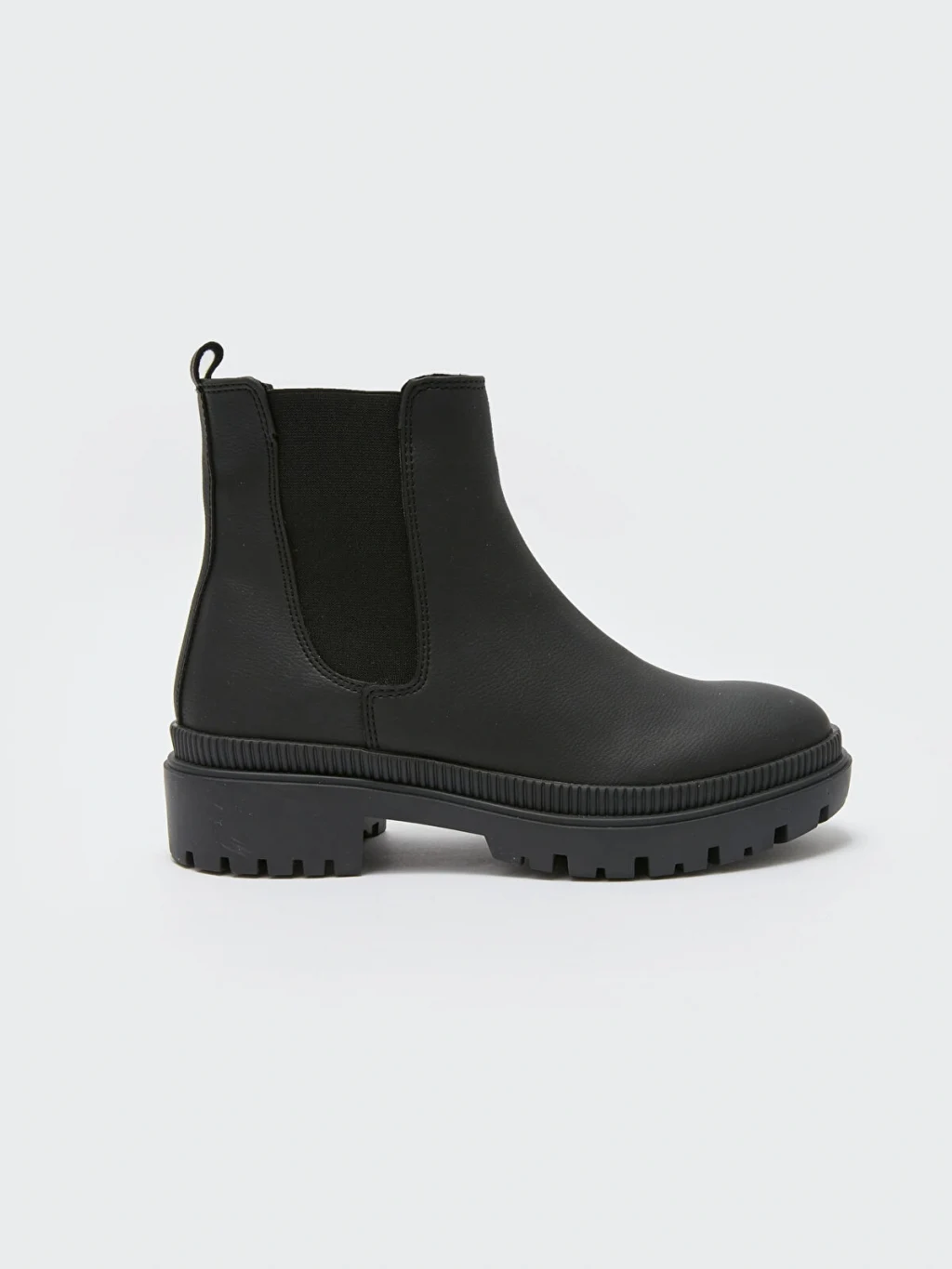 LCW STEPS Siyah Deri Görünümlü Bilek Boy Kadın Bot