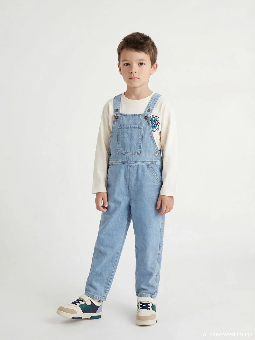 Erkek çocuk jean salopet, %100 pamuklu denim kumaştan üretilmiştir. Ayarlanabilir askılı, göğüs ve yan cepli olup, yanları düğme kapamalıdır.