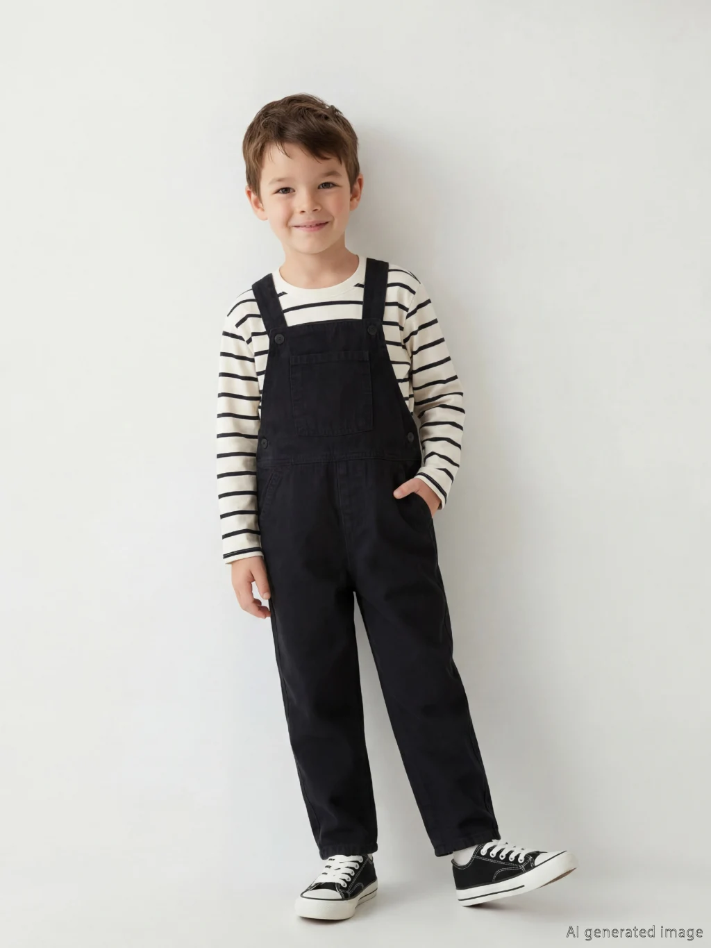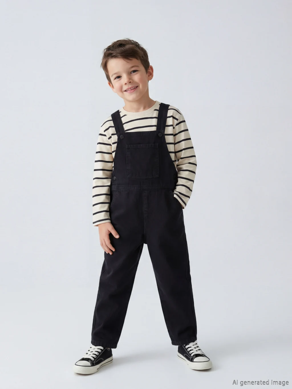 Erkek çocuk jean salopet, %100 pamuklu denim kumaştan üretilmiştir. Ayarlanabilir askılı, göğüs ve yan cepli olup, yanları düğme kapamalıdır.
