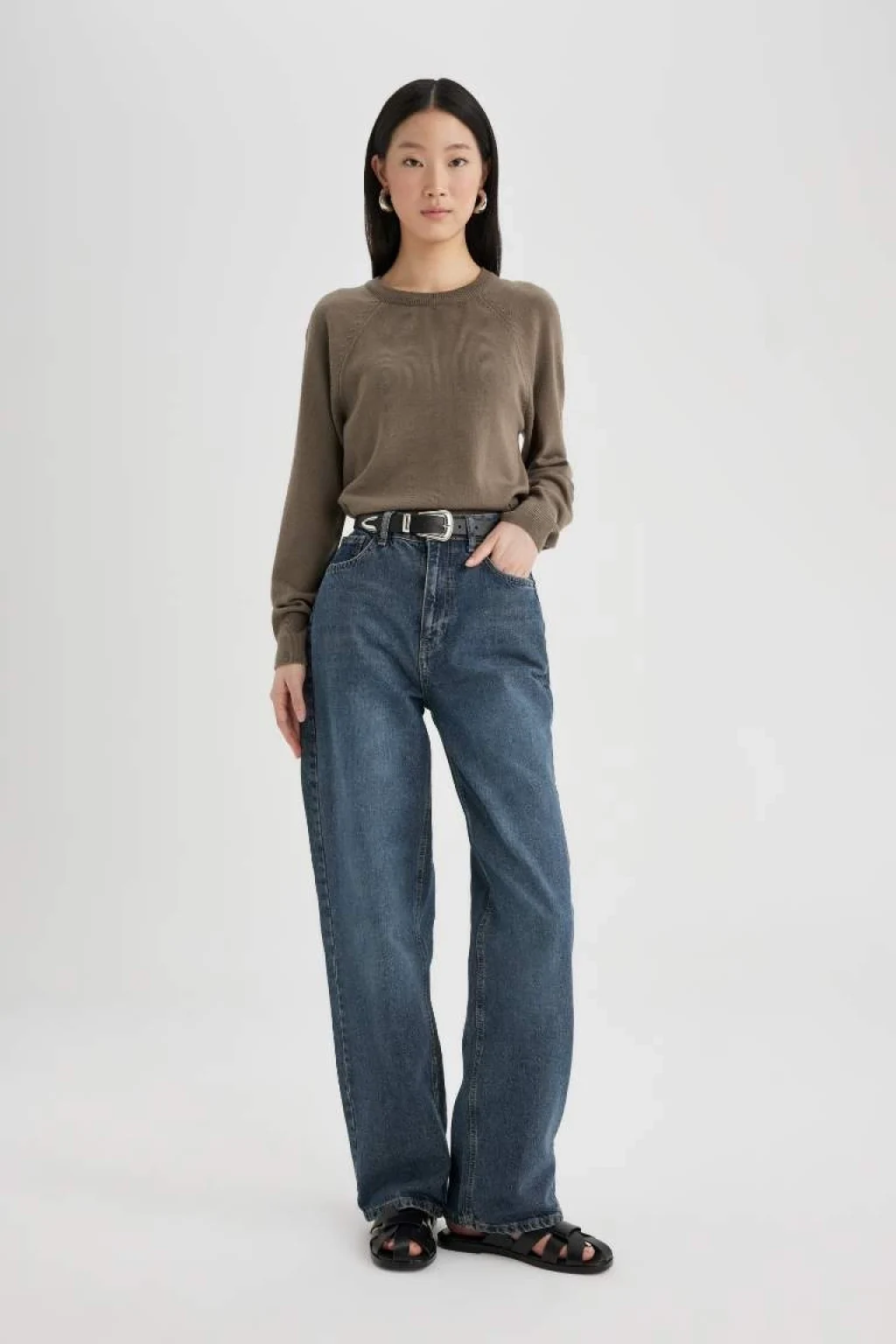 I6913 Regular Fit Yumuşak Dokulu Bisiklet Yaka Basic Düz Triko Kazak