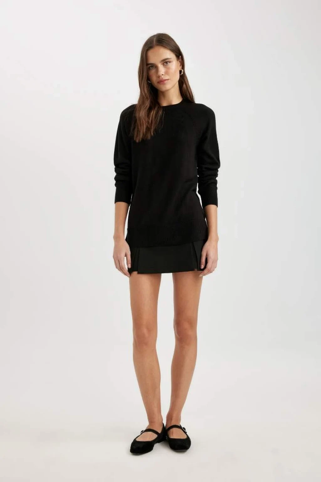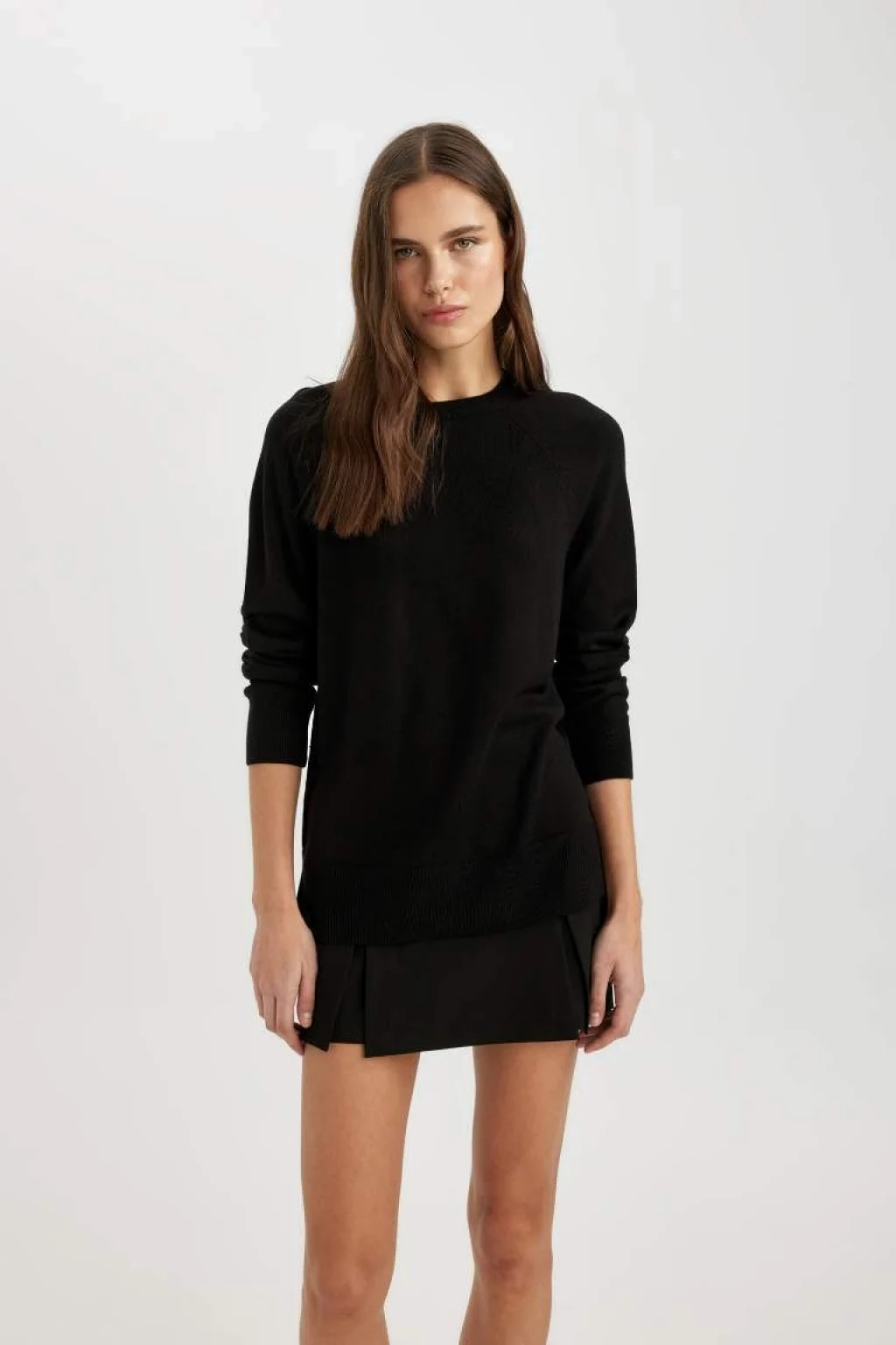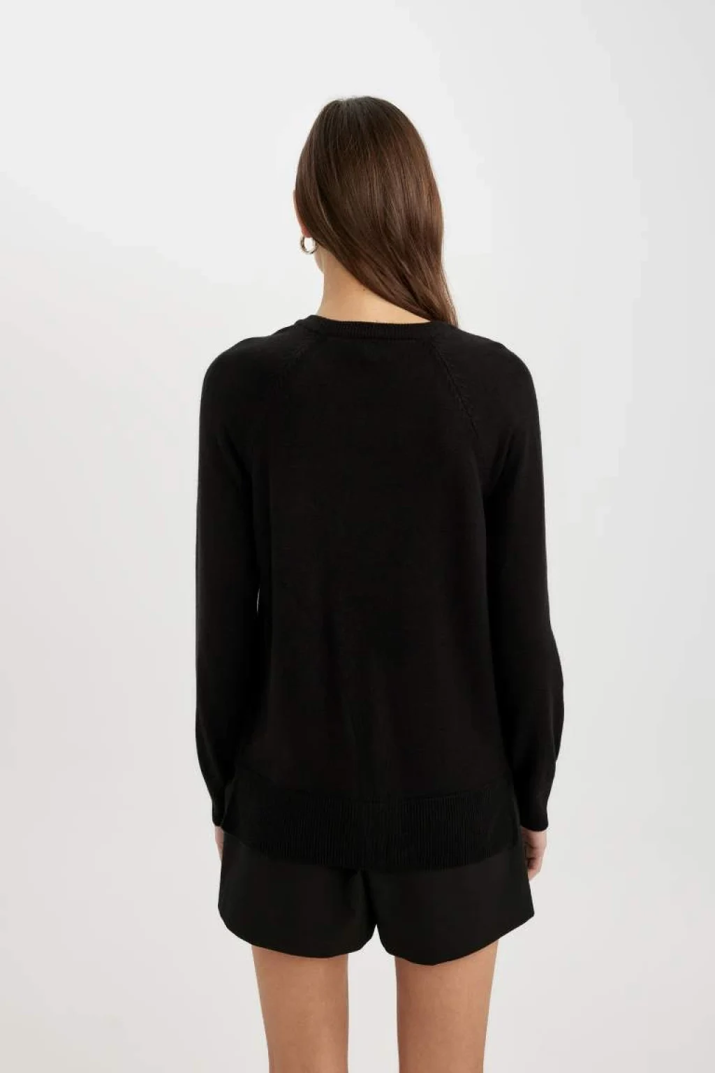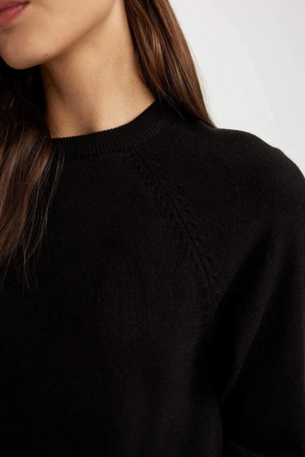 I6913 Yumuşak Dokulu Bisiklet Yaka Reglan Kol Basic Düz Triko Kazak