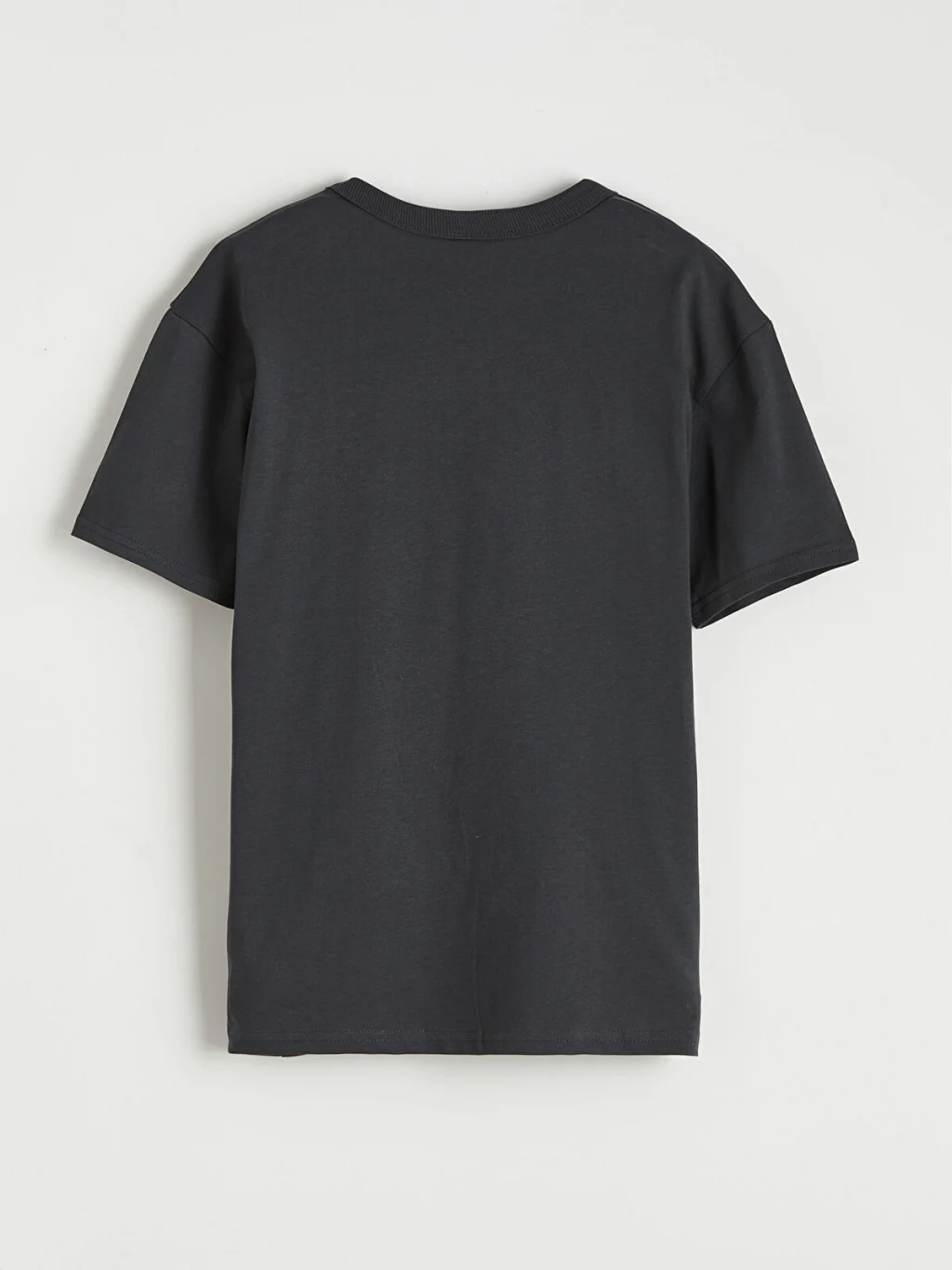 LCW Kids Antrasit Bisiklet Yaka Baskılı Erkek Çocuk Tişört