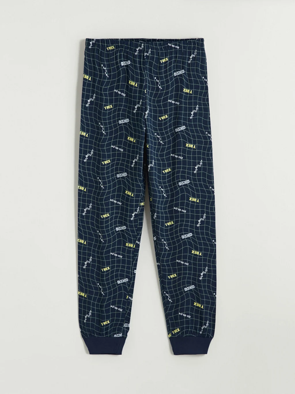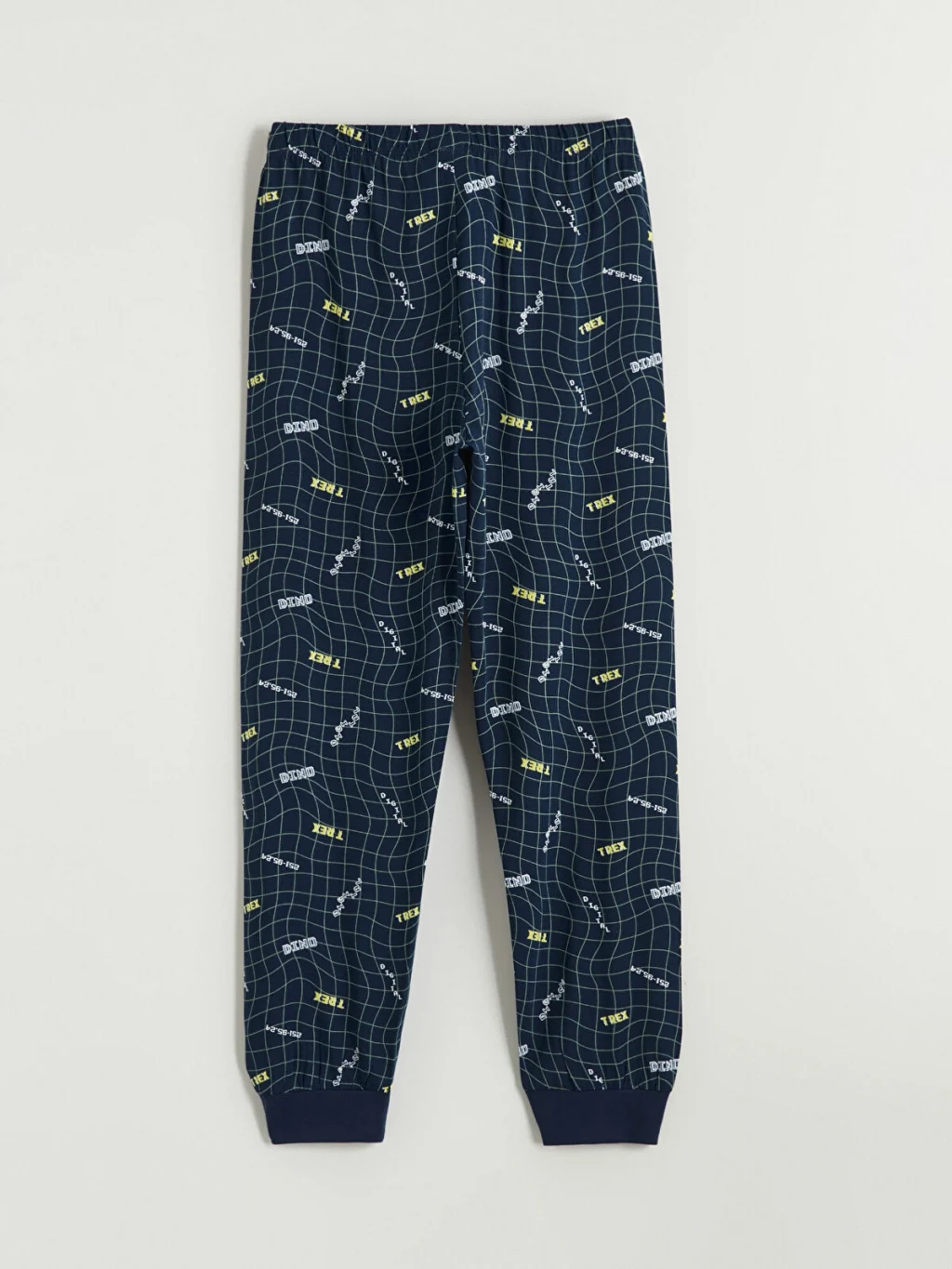 Bisiklet yaka ve uzun kollu üst ile paçaları ribanalı, desenli uzun alttan oluşan erkek çocuk pijama takımı, %100 pamuklu penye kumaşa sahiptir.
