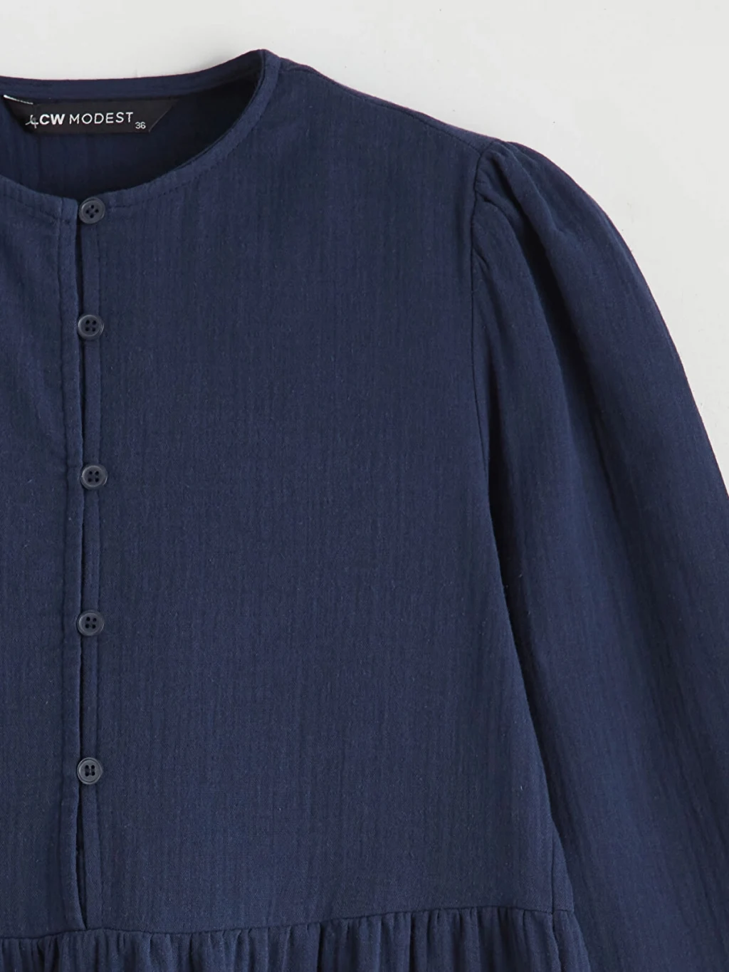 LCW Modest İndigo Bisiklet Yaka Balon Kollu Müslin Elbise