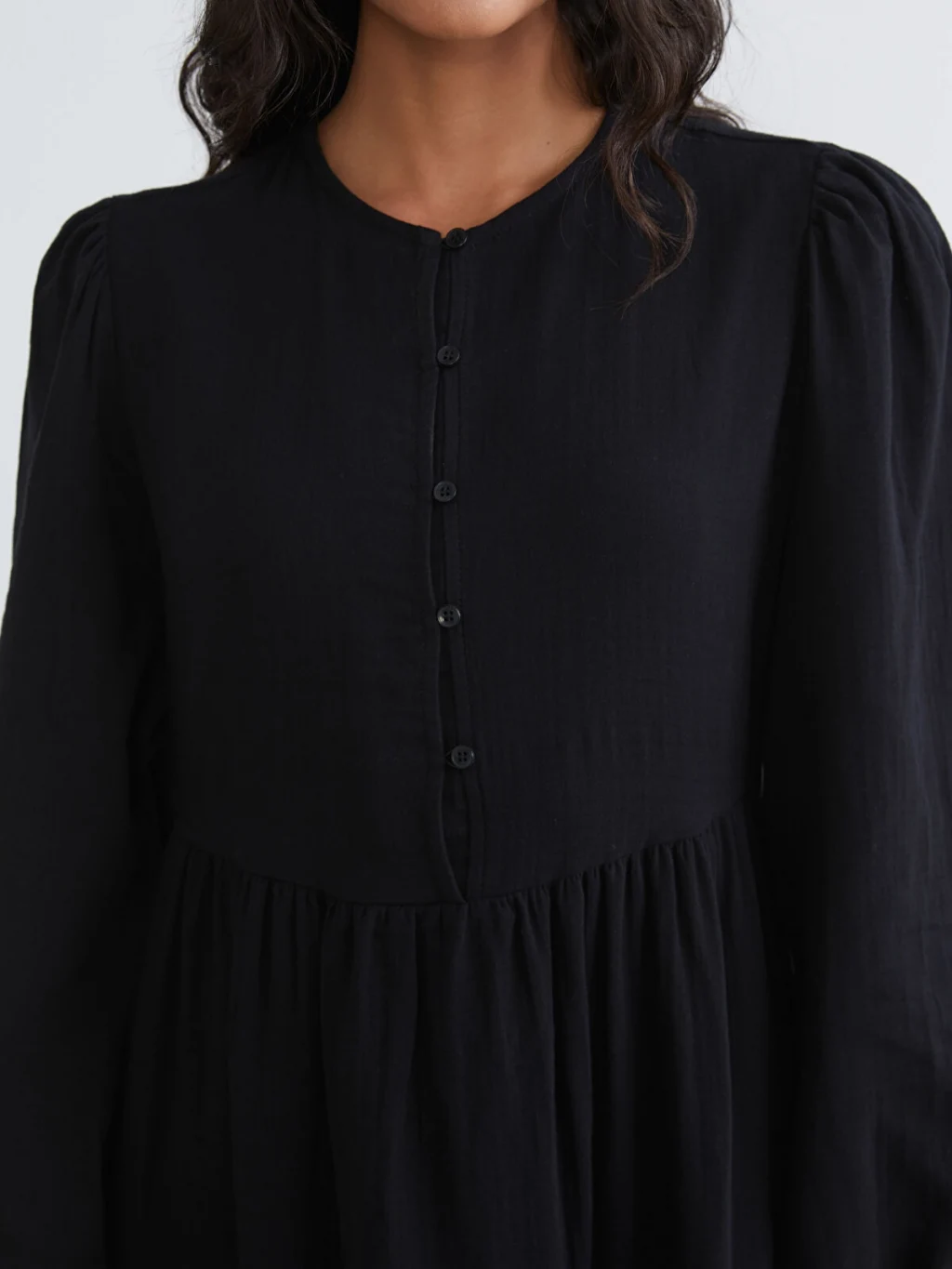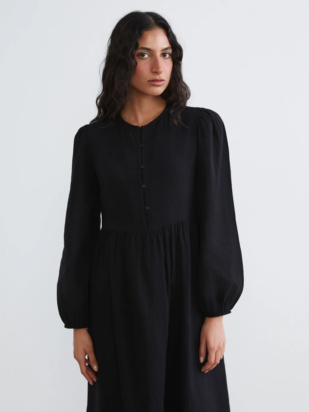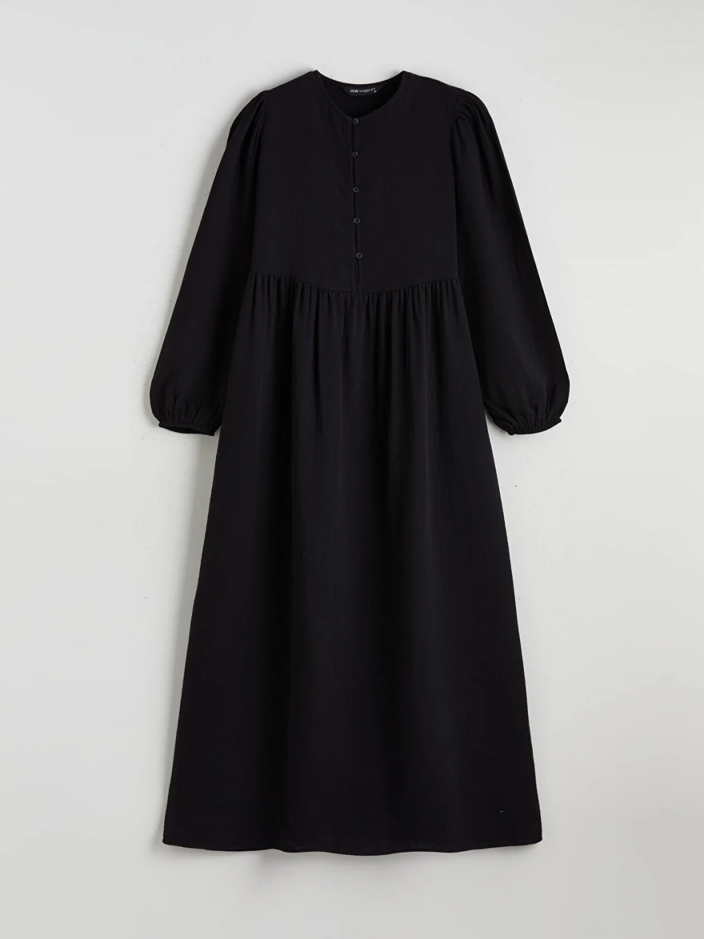 LCW Modest Siyah Bisiklet Yaka Balon Kollu Müslin Elbise