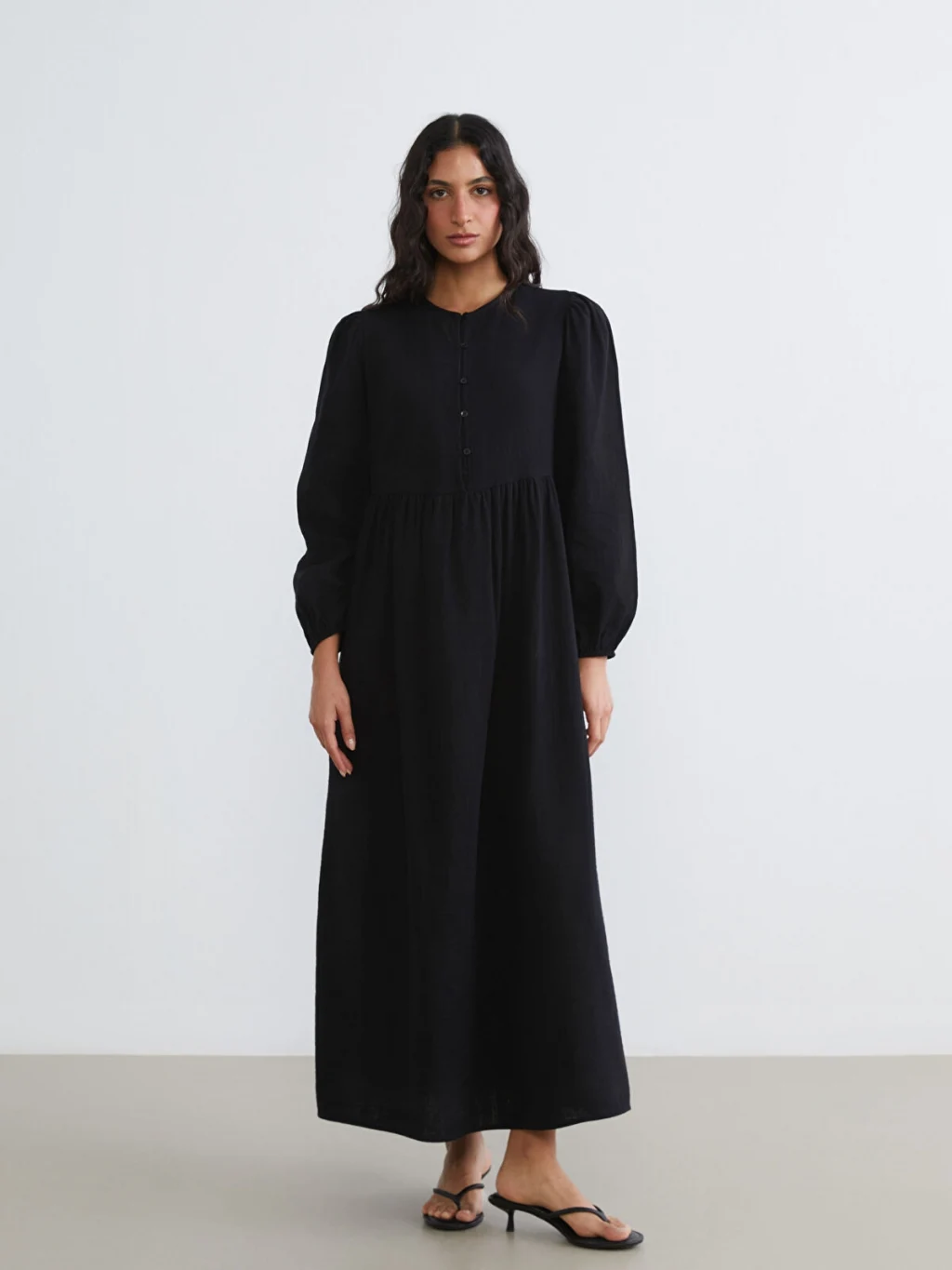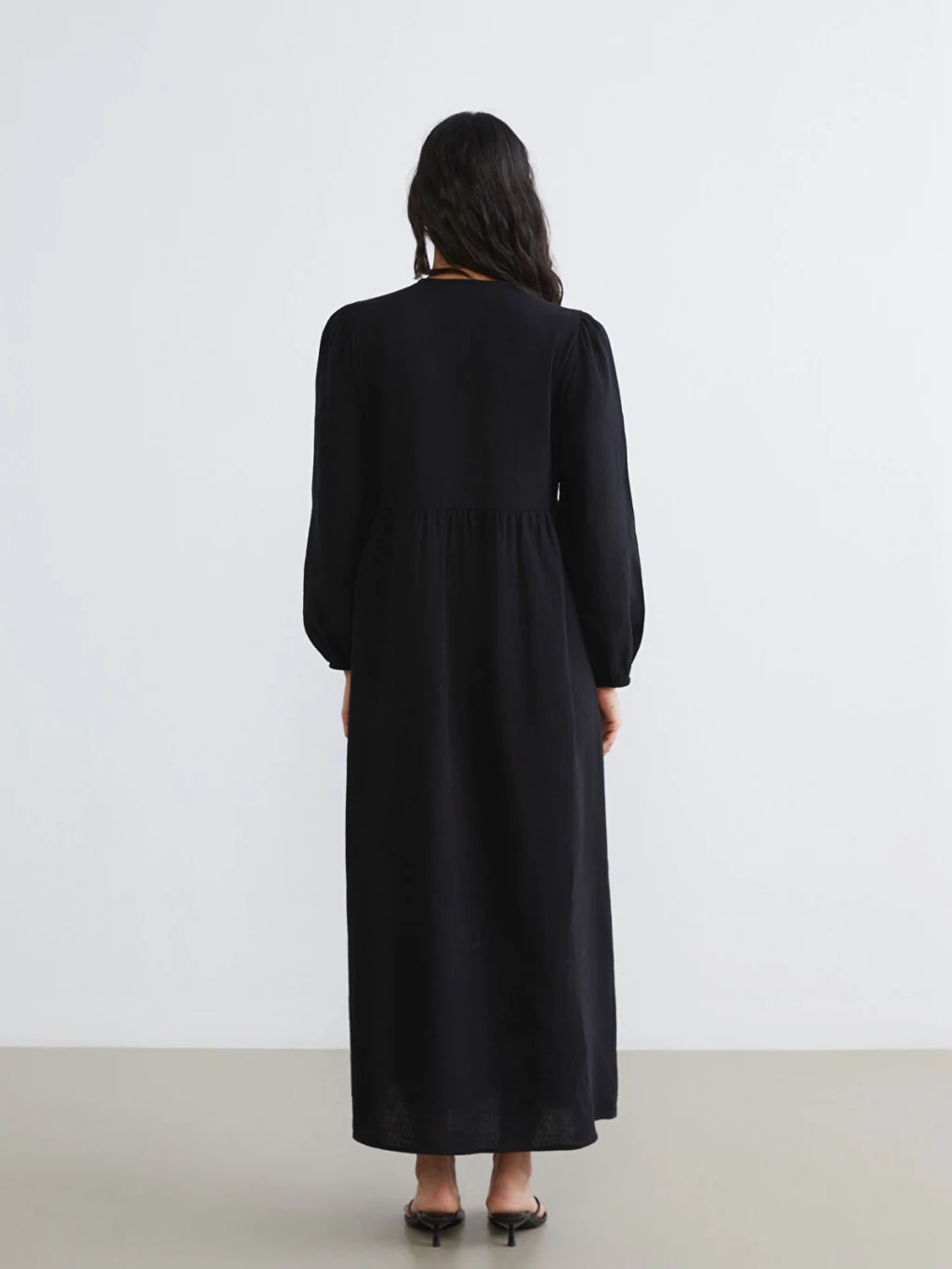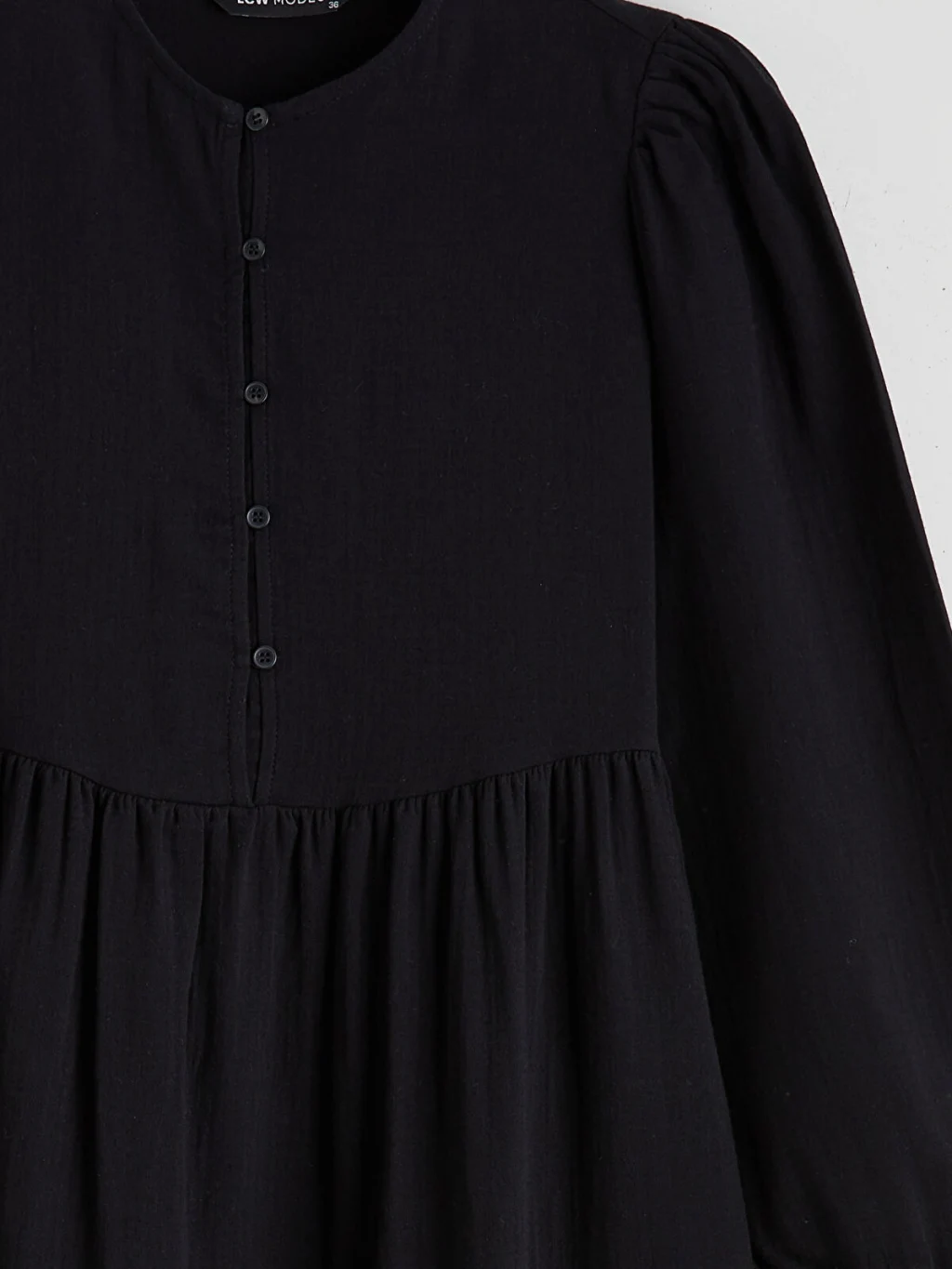 LCW Modest Siyah Bisiklet Yaka Balon Kollu Müslin Elbise