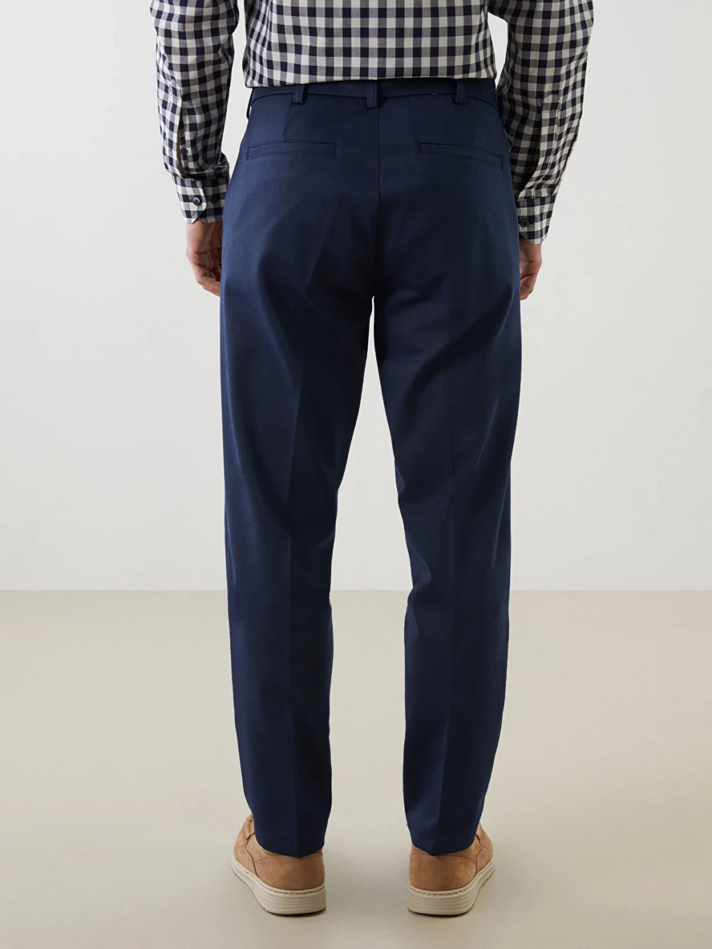 Dar kalıp chino pantolon; esnek kumaş yapısı, normal bel yüksekliği ve paçaya doğru daralan kesimiyle vücudu hafif sararken gün boyu rahatlık sağlar.