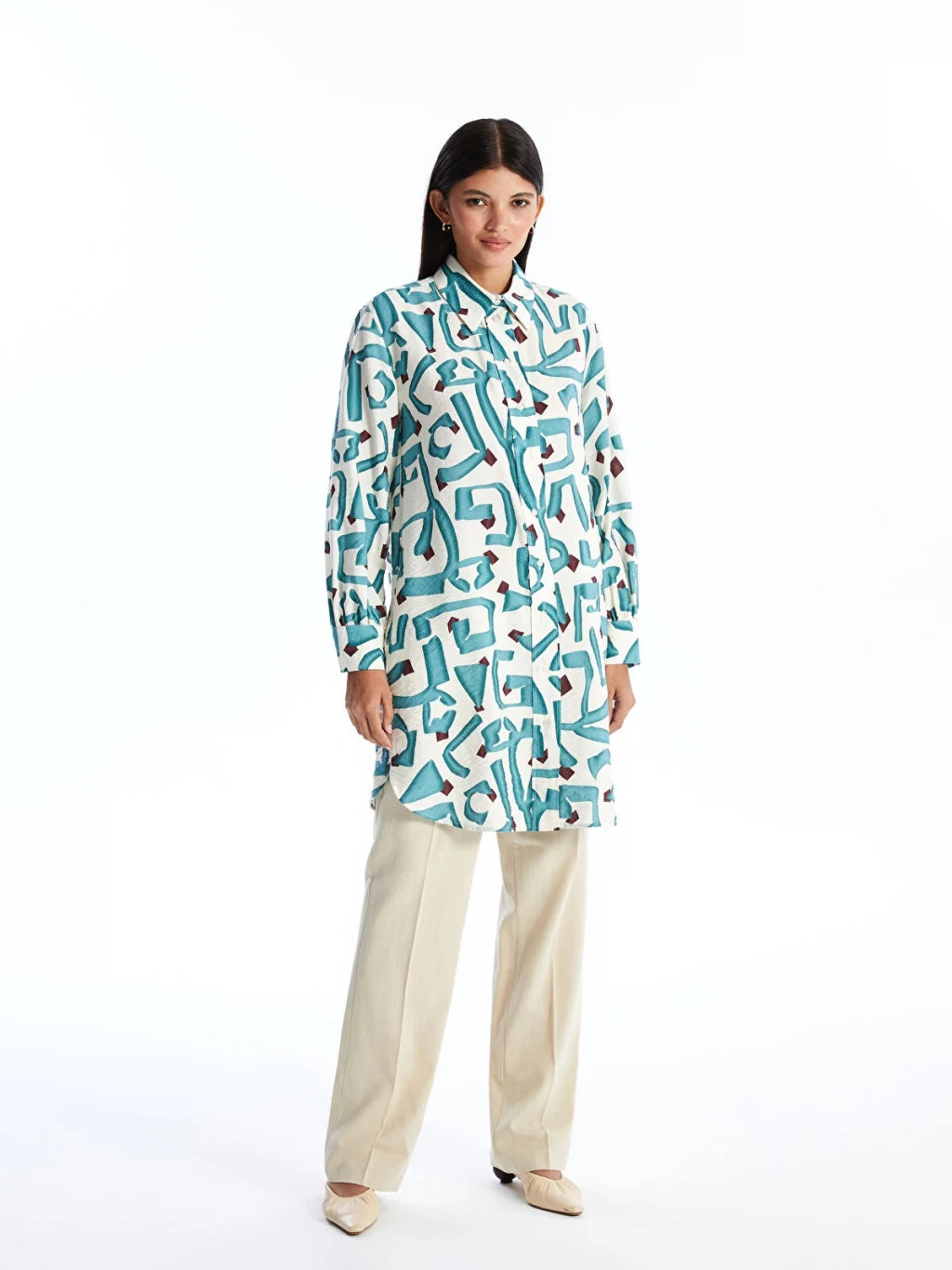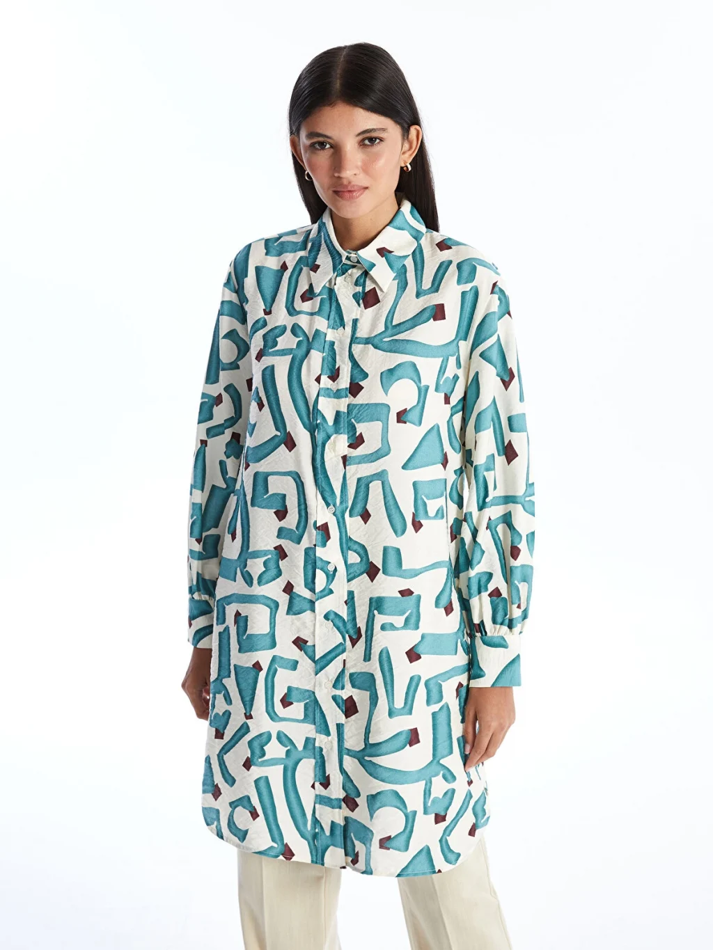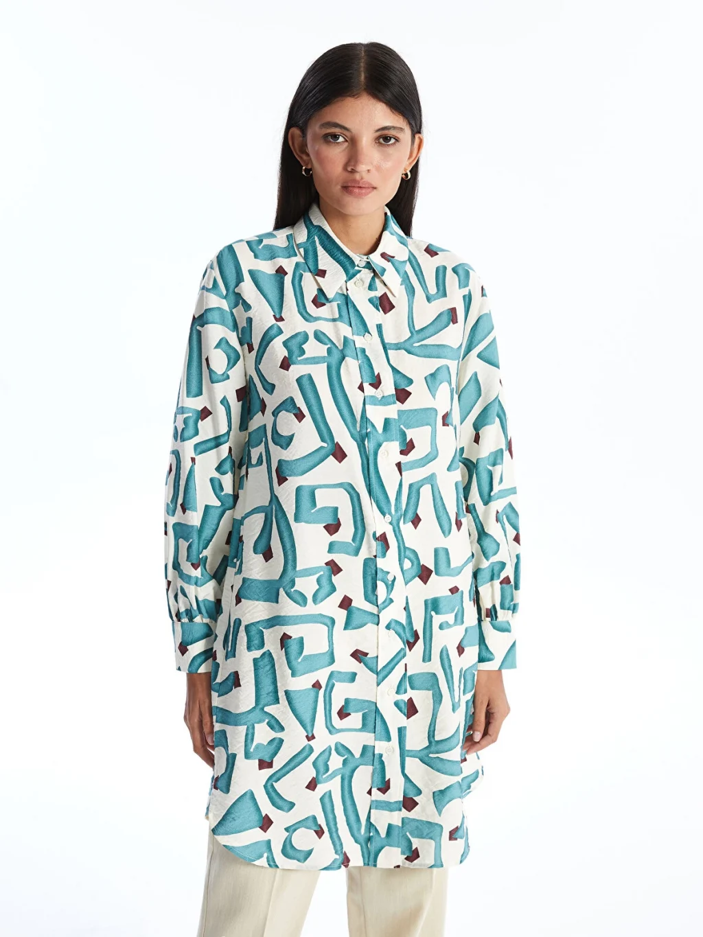 Yanları yırtmaç detaylı, desenli tunik önden düğme kapamalı özelliği sayesinde kolay giyilebilir. Rahat hareket edebilmeniz için basen boy olarak tasarlanan gömlek yaka tunik, konforlu bir deneyim sunar.