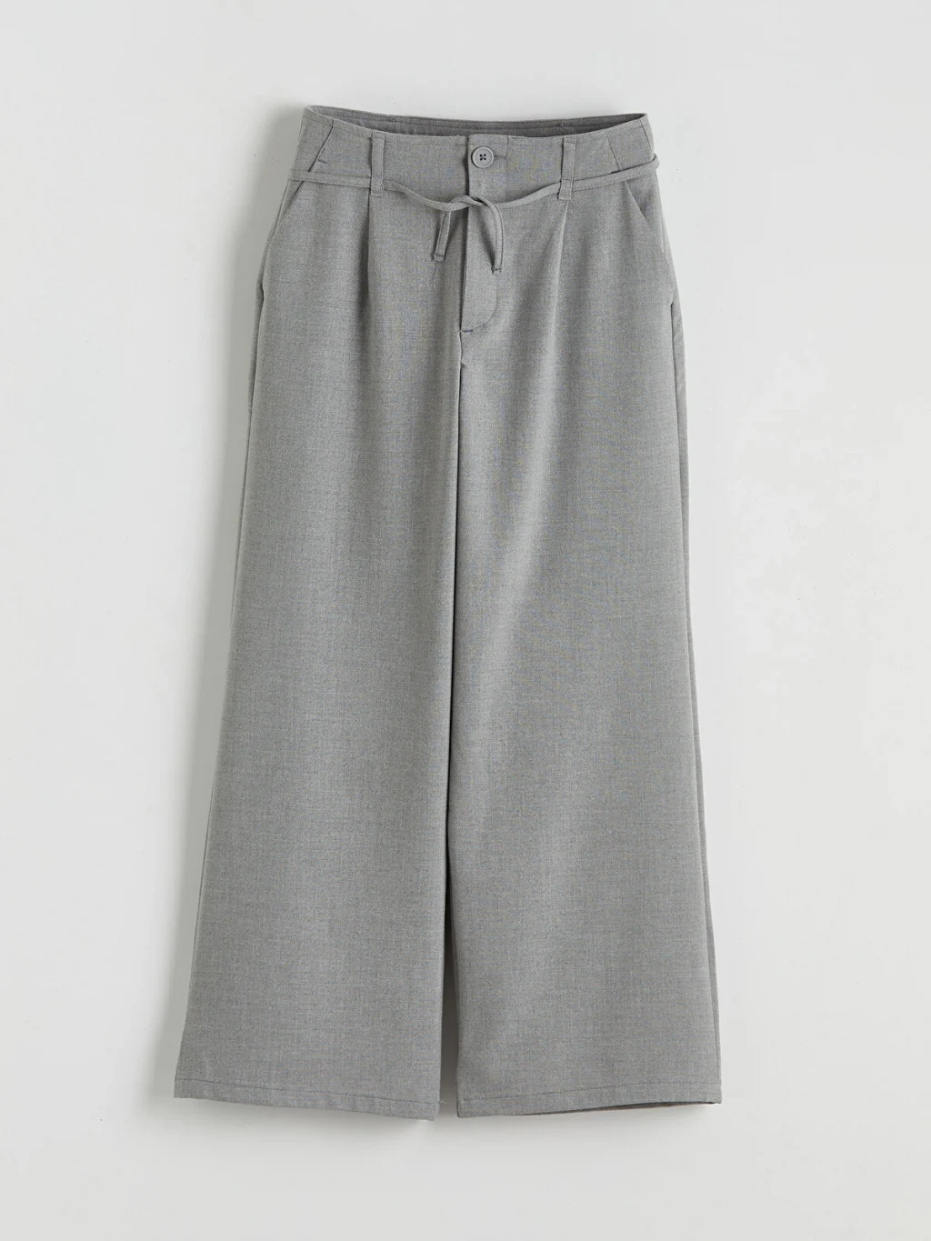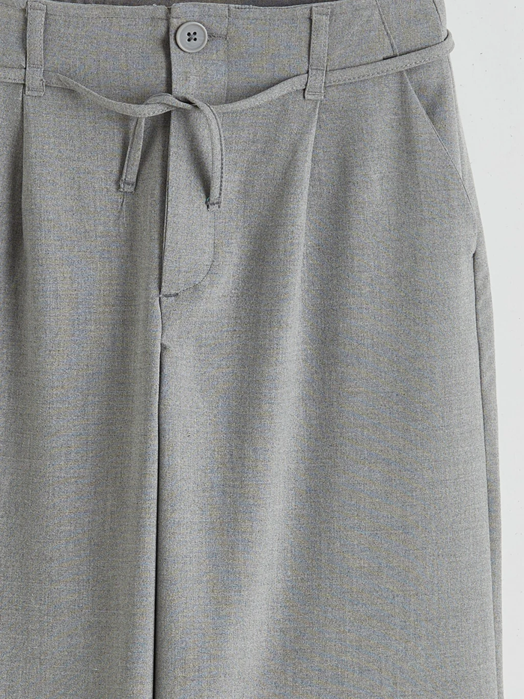 Poliviskon kumaştan üretilmiş, bol paçalı kız çocuk pantolon, beli bağlama detaylı ve düğme kapamalıdır. Ön kısmında pili detayı bulunur.