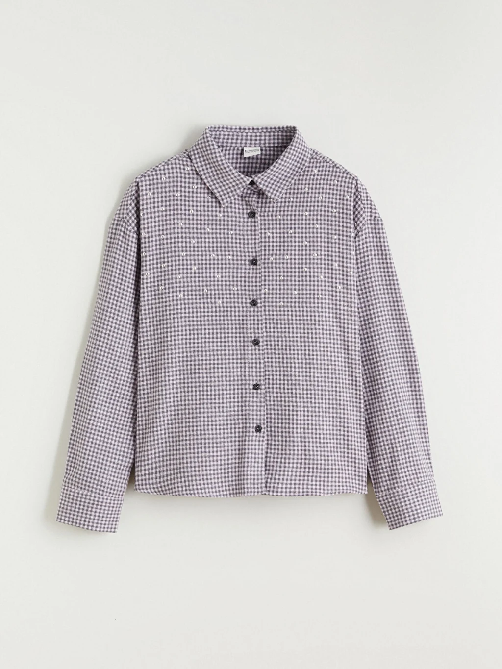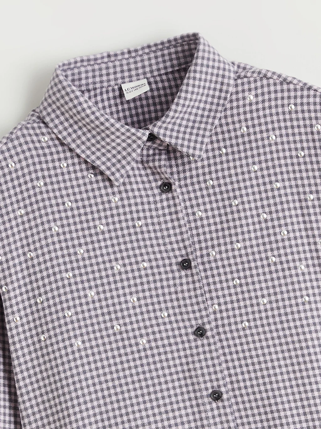 Pötikare desenli kız çocuk gömlek, %100 pamuklu flanel kumaştan üretilmiştir. Uzun kollu, önden düğme kapamalı ve taş işlemelidir.