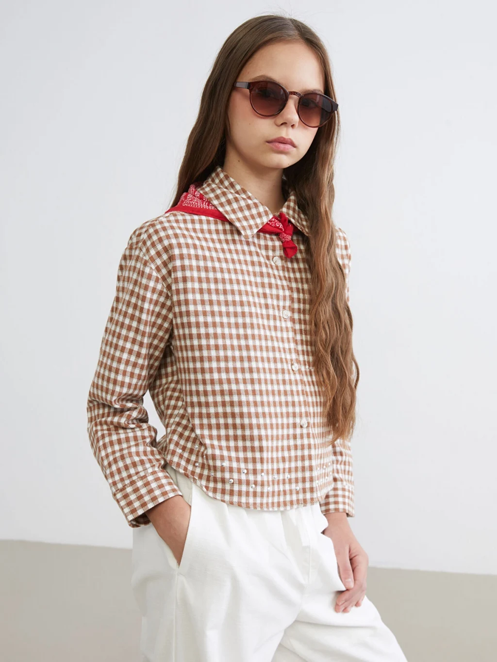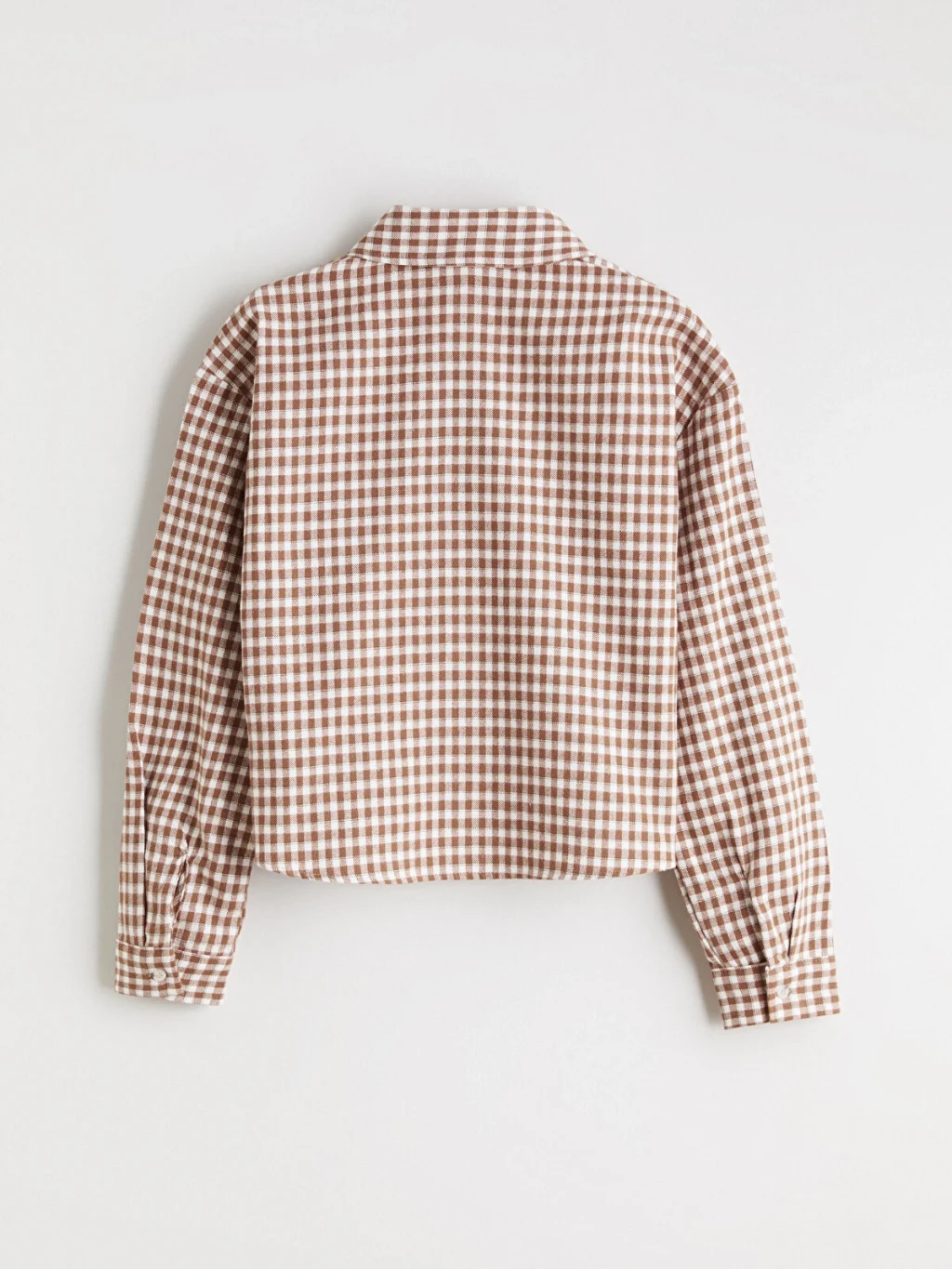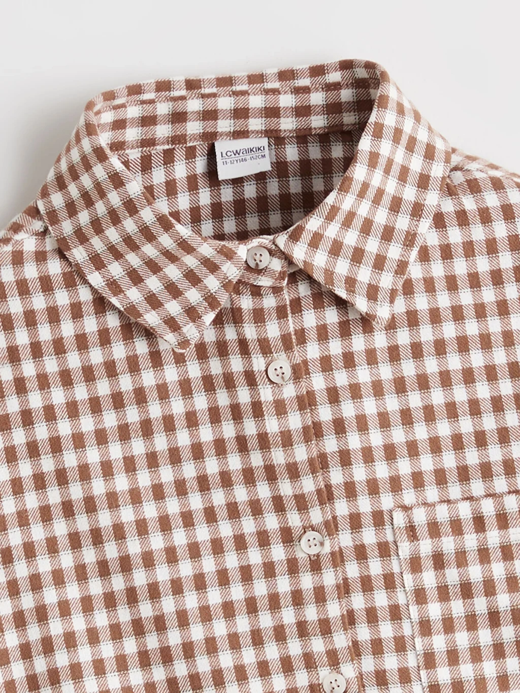 Uzun kollu gömlek, pamuklu kumaştan üretilmiştir. Ekose desenli tasarıma sahiptir.