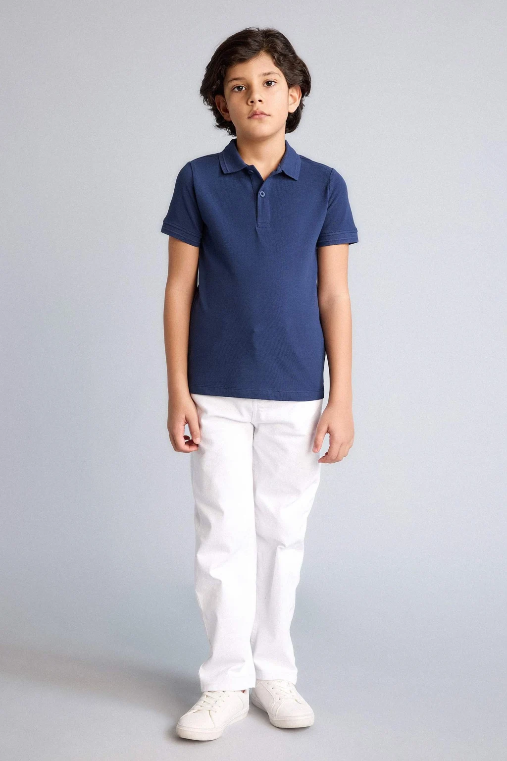 Basic pike kumaşıyla tasarlanan erkek çocuk polo tişört, sade ve şık bir görünüm sunar. Nefes alabilen yapısı ve rahat kesimiyle günlük kullanım için uygundur.