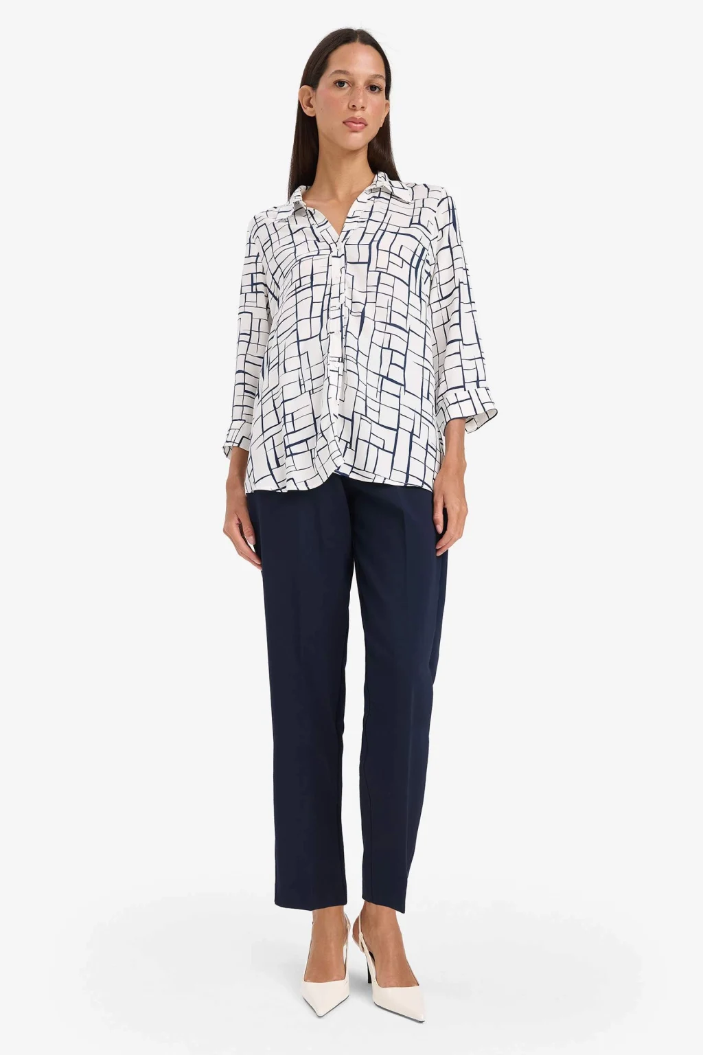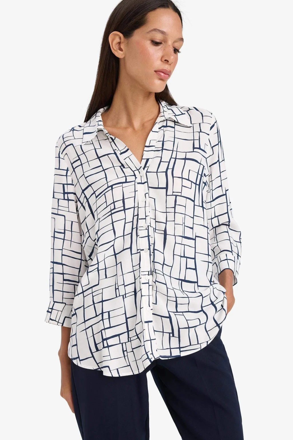 Yetişkin kadınlar için ilkbahar / yaz sezonu için ideal olan bu baskılı uzun kollu gömlek, her zamanki şıklığınızı tamamlamak için mükemmel bir seçenektir. Beyaz rengi ve düz paça detayıyla, bu gömlek, dokuma üst kategorisindeki favori parçanız olmaya aday!
