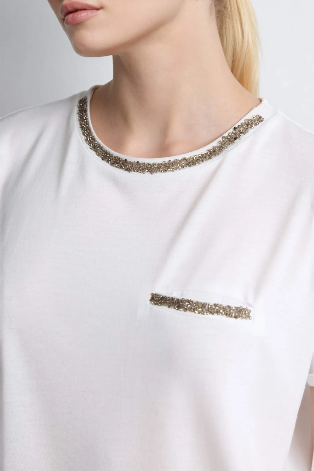 XSIDE Beyaz Bisiklet Yaka Düz Kısa Kollu Kadın Crop Tişört