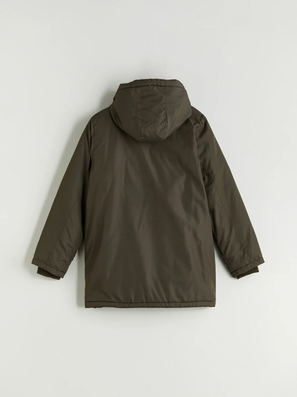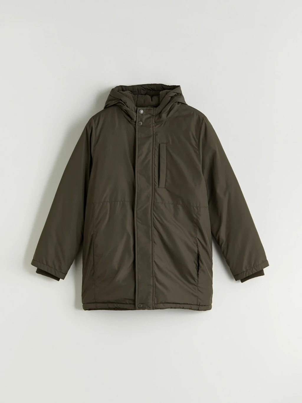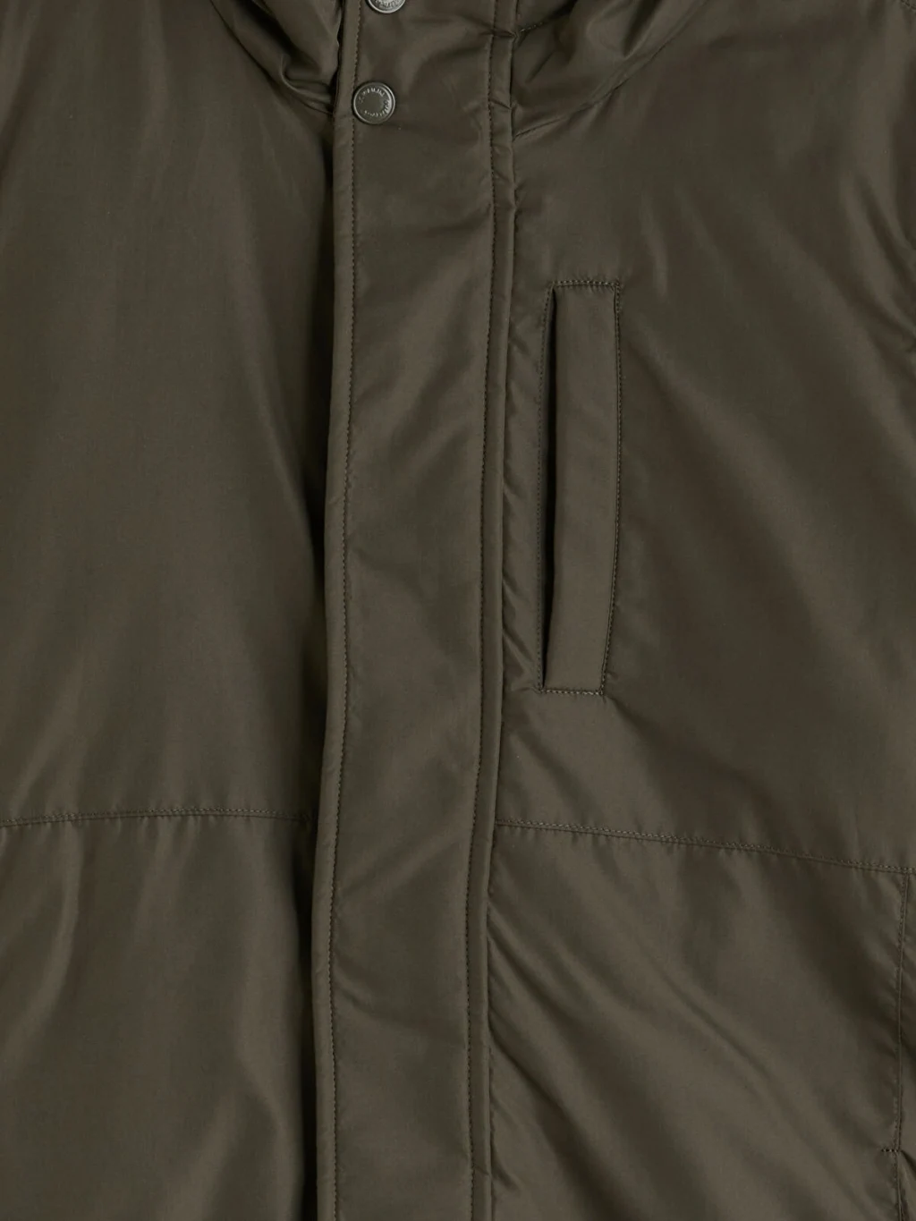 Sabit kapüşonlu erkek çocuk şişme mont, uzun kolludur. Önden fermuar ve çıtçıt kapamalıdır, cepleri bulunur ve kol uçları ribanalıdır.