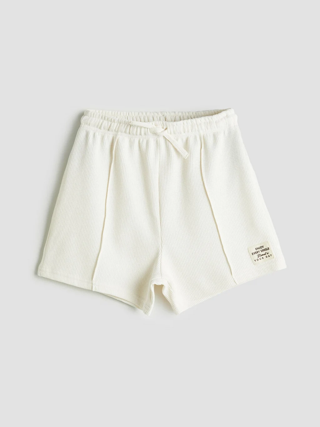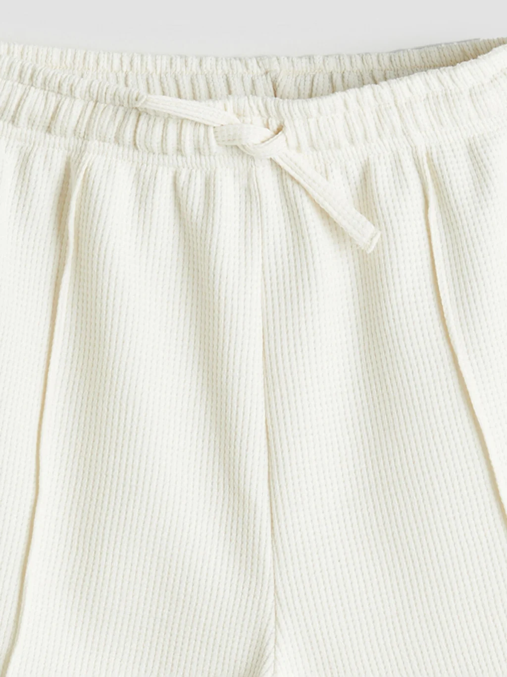 Waffle kumaştan üretilmiş kız çocuk şort, beli lastikli ve ayarlanabilir bağcıklıdır. Ön kısmında dikiş detayı bulunur.