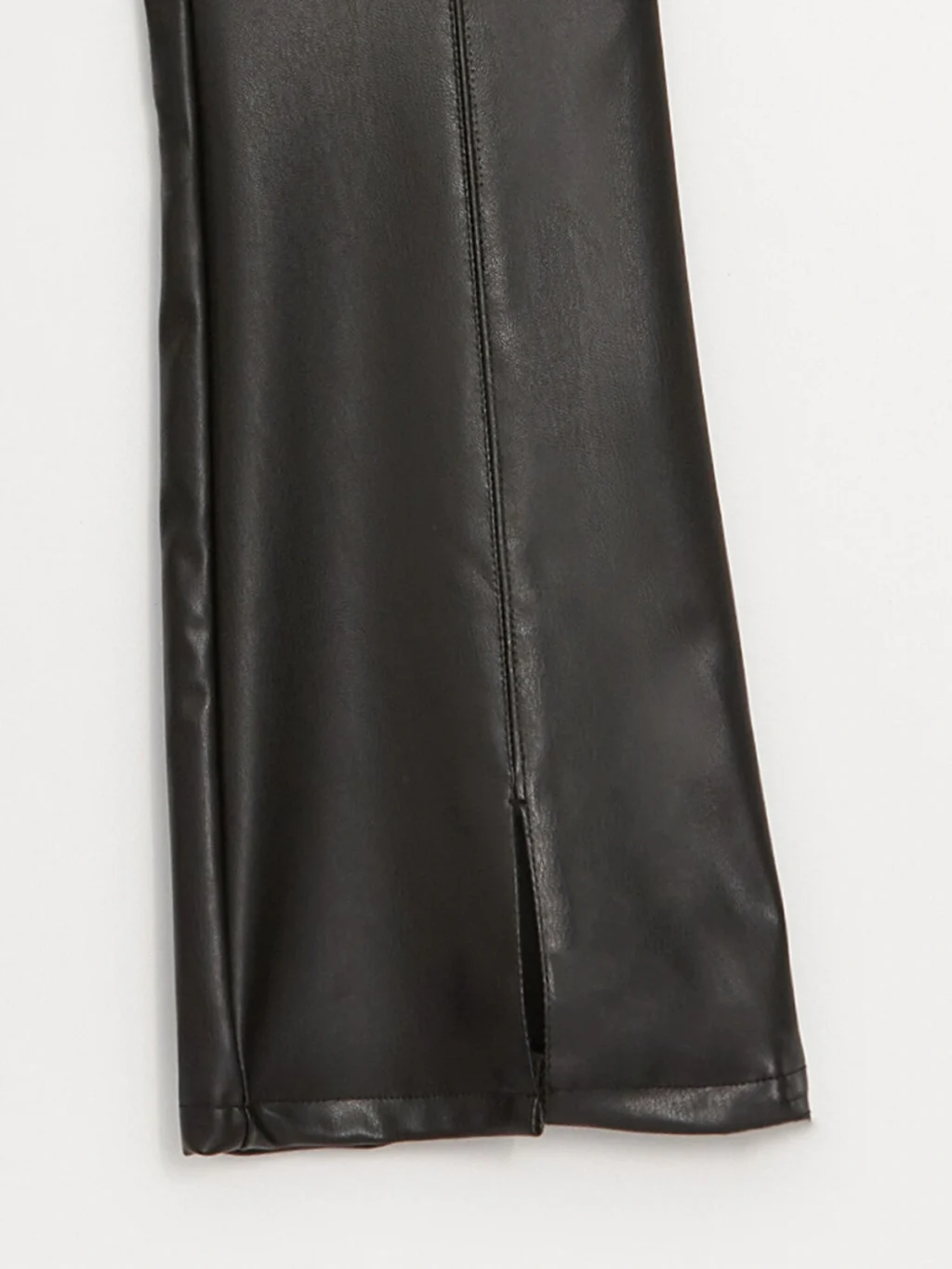 İspanyol paça kesimi ve deri görünümü ile şık bir tasarıma sahip pantolon, çocuğunuza modern ve stil sahibi bir görünüm sunar.